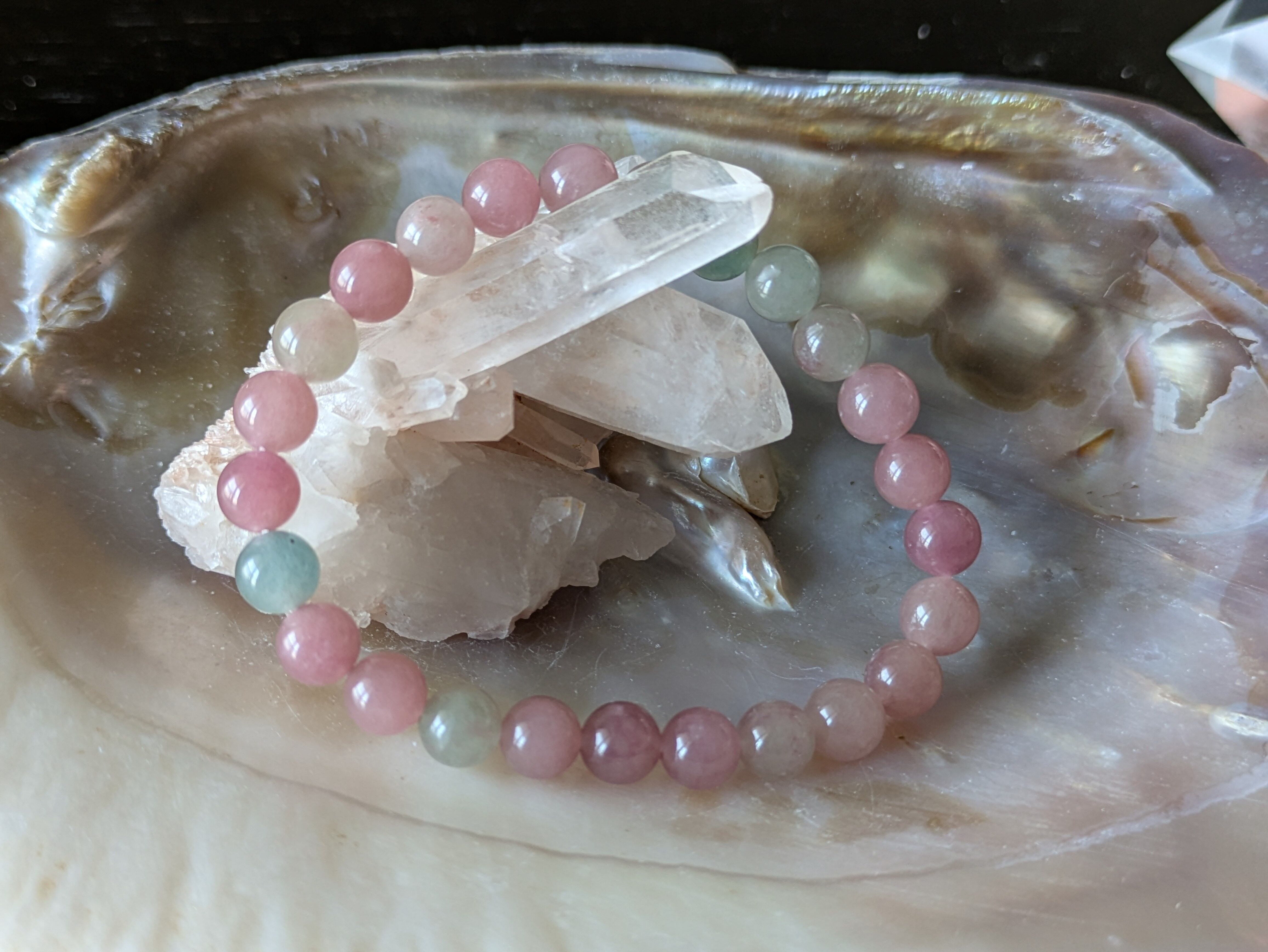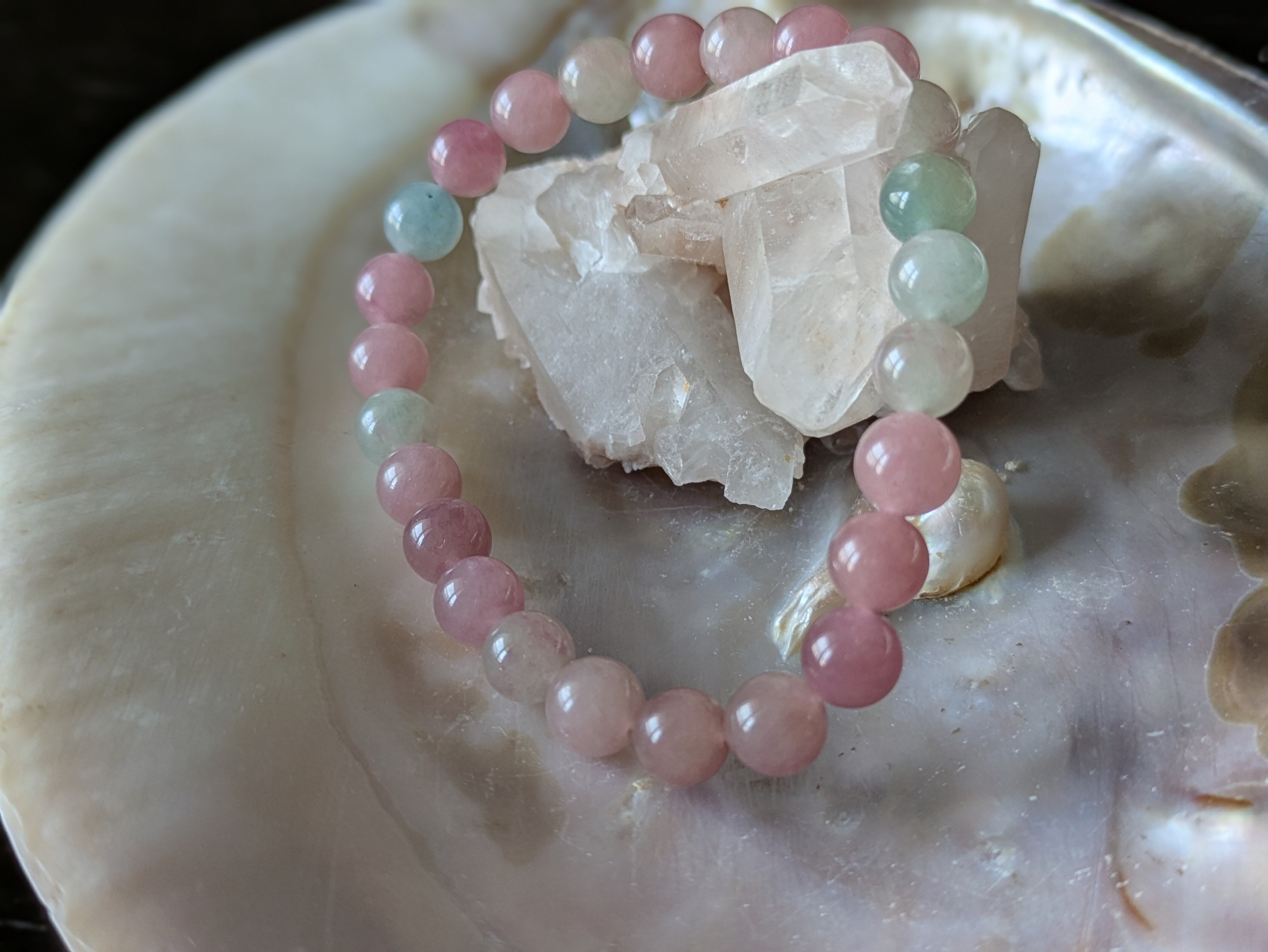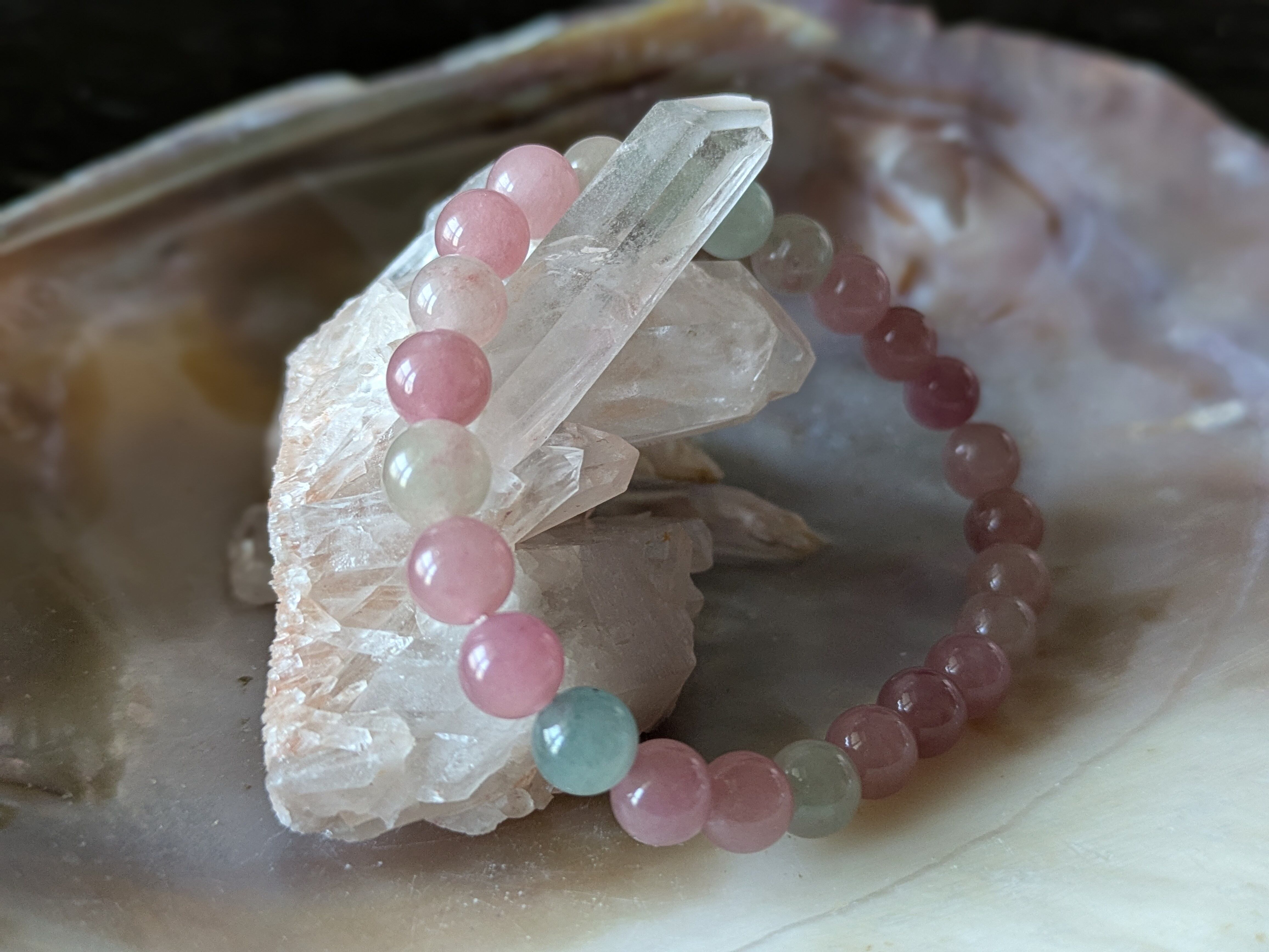 マカロンカラートルマリンは、マルチカラーのトルマリンを使用した天然石ブレスレットで、見る人を魅了する独自のカラーバリエーションが魅力です。