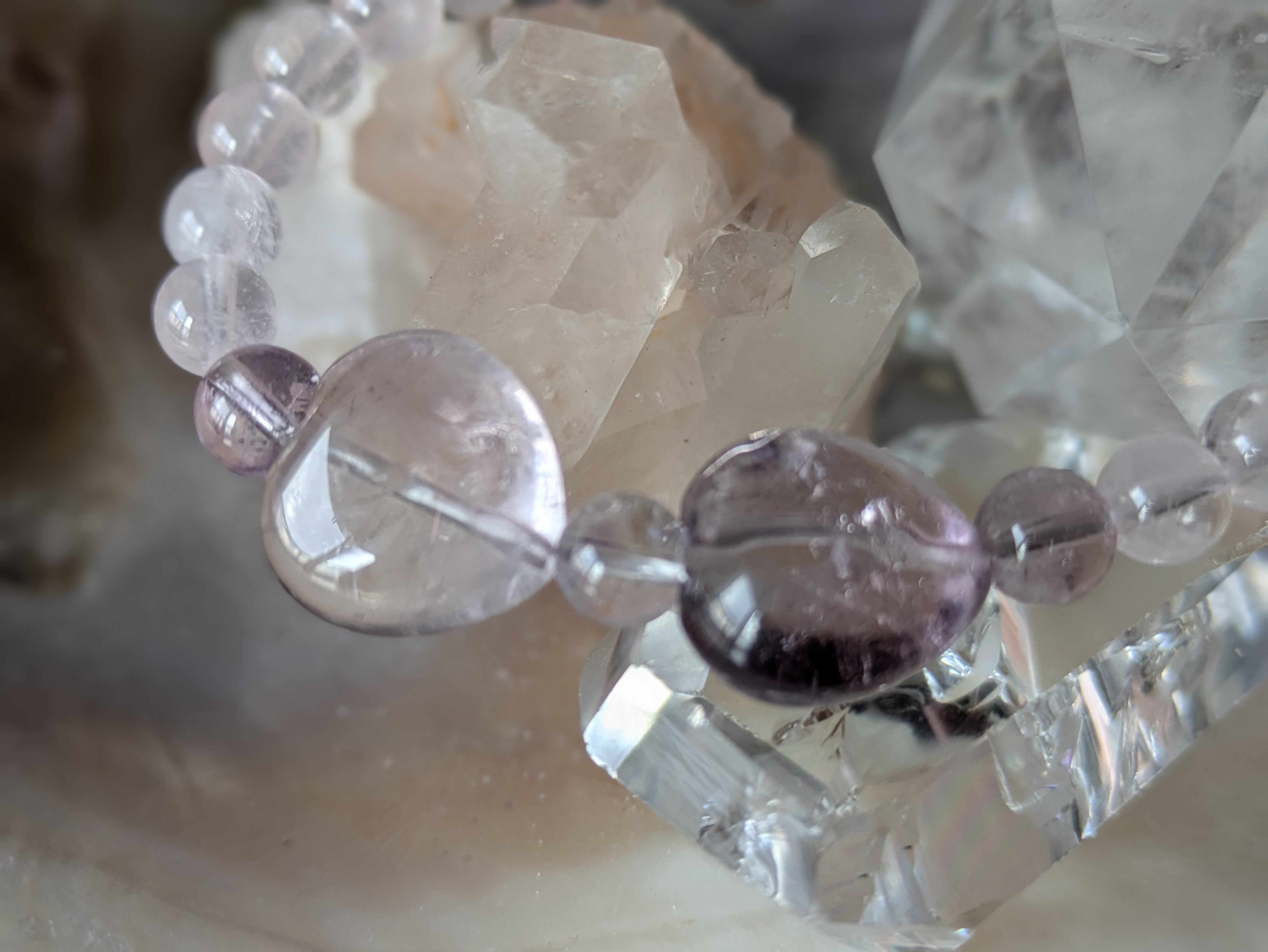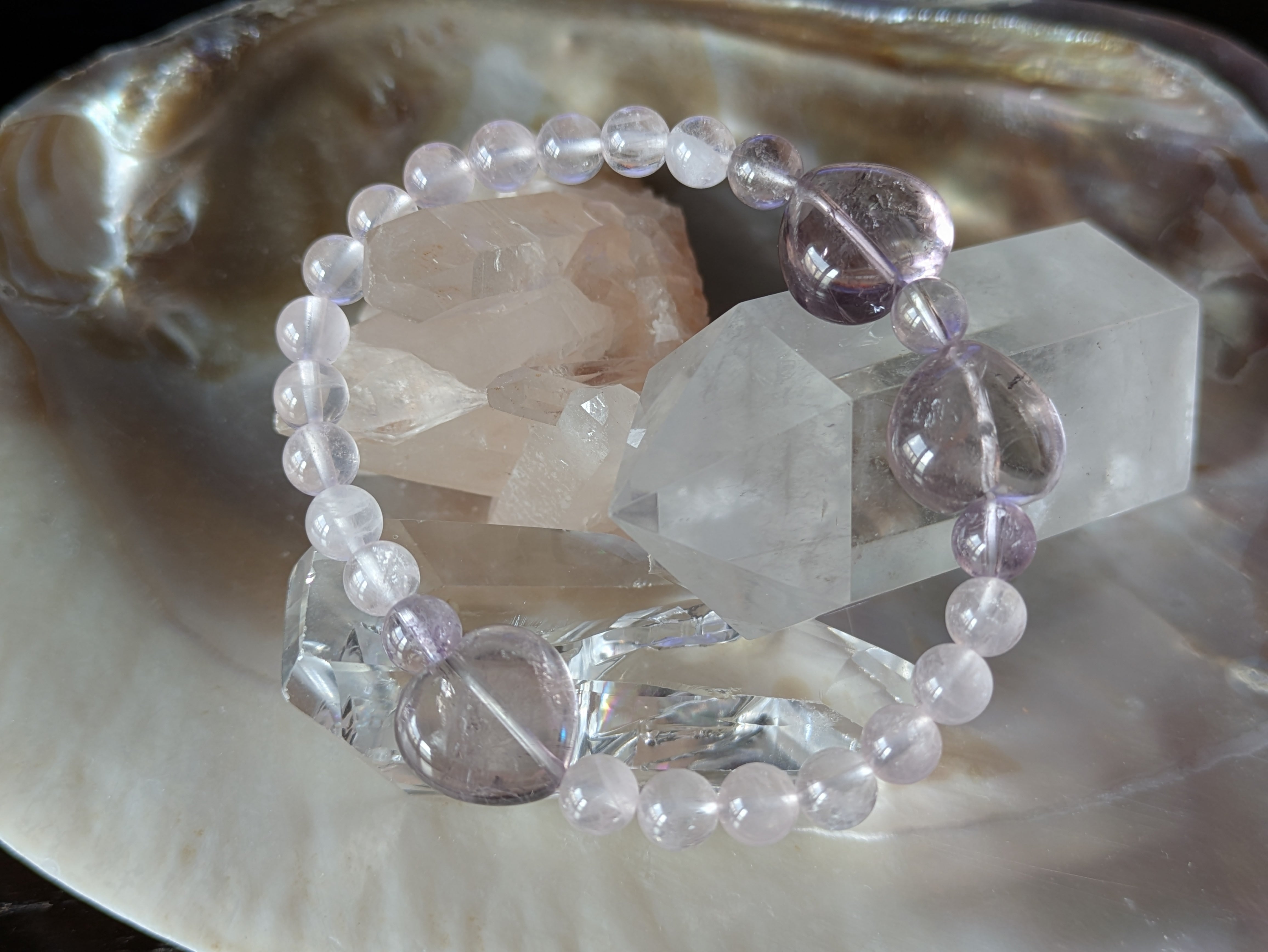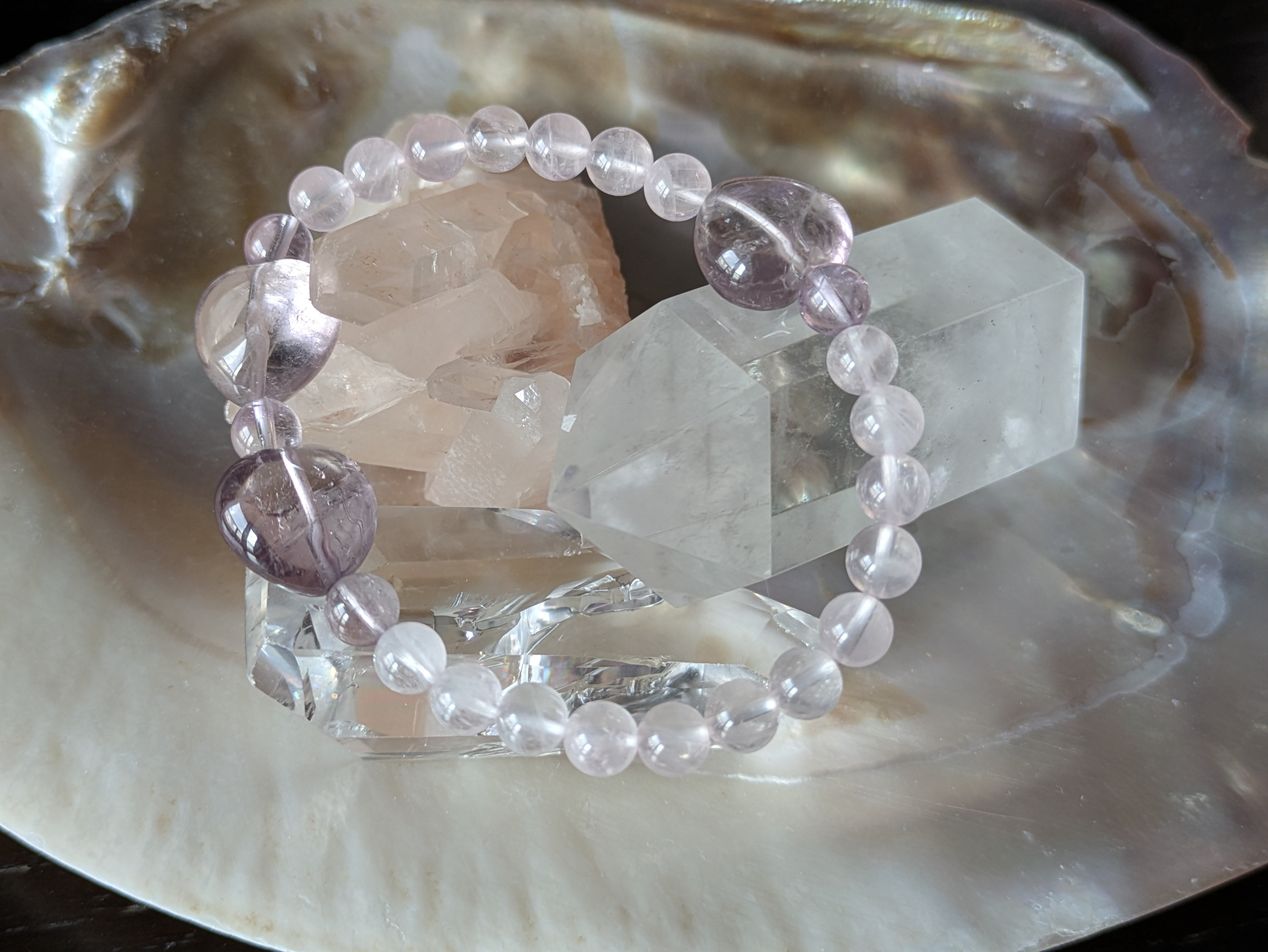 愛を手に入れるブレスレットは、アメジストとローズクォーツを使用した天然石ブレスレットです。