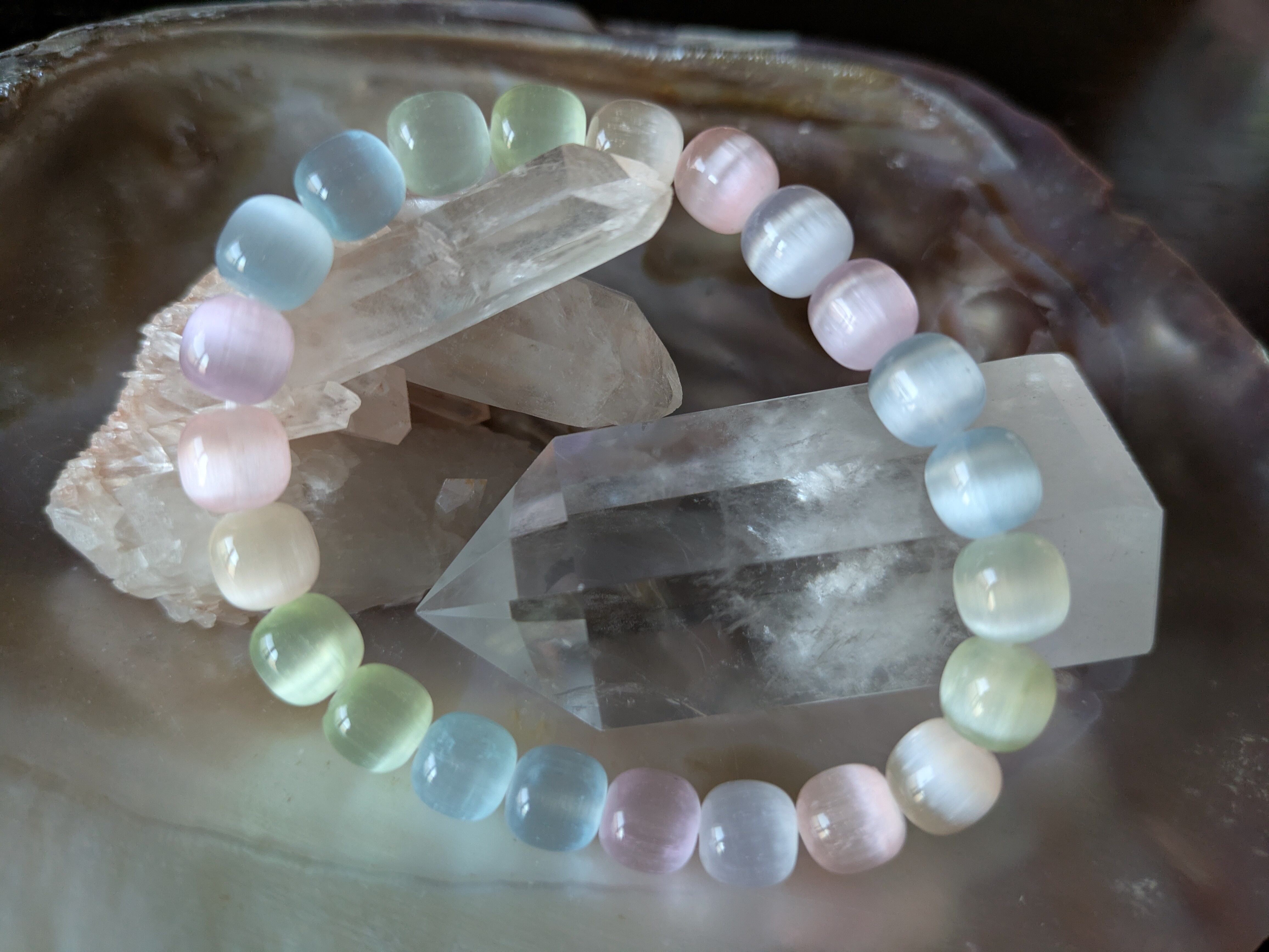 セレナイトはその名の通り、精神的な落ち着きを提供し、心身ともにリラックスさせる効果があります。