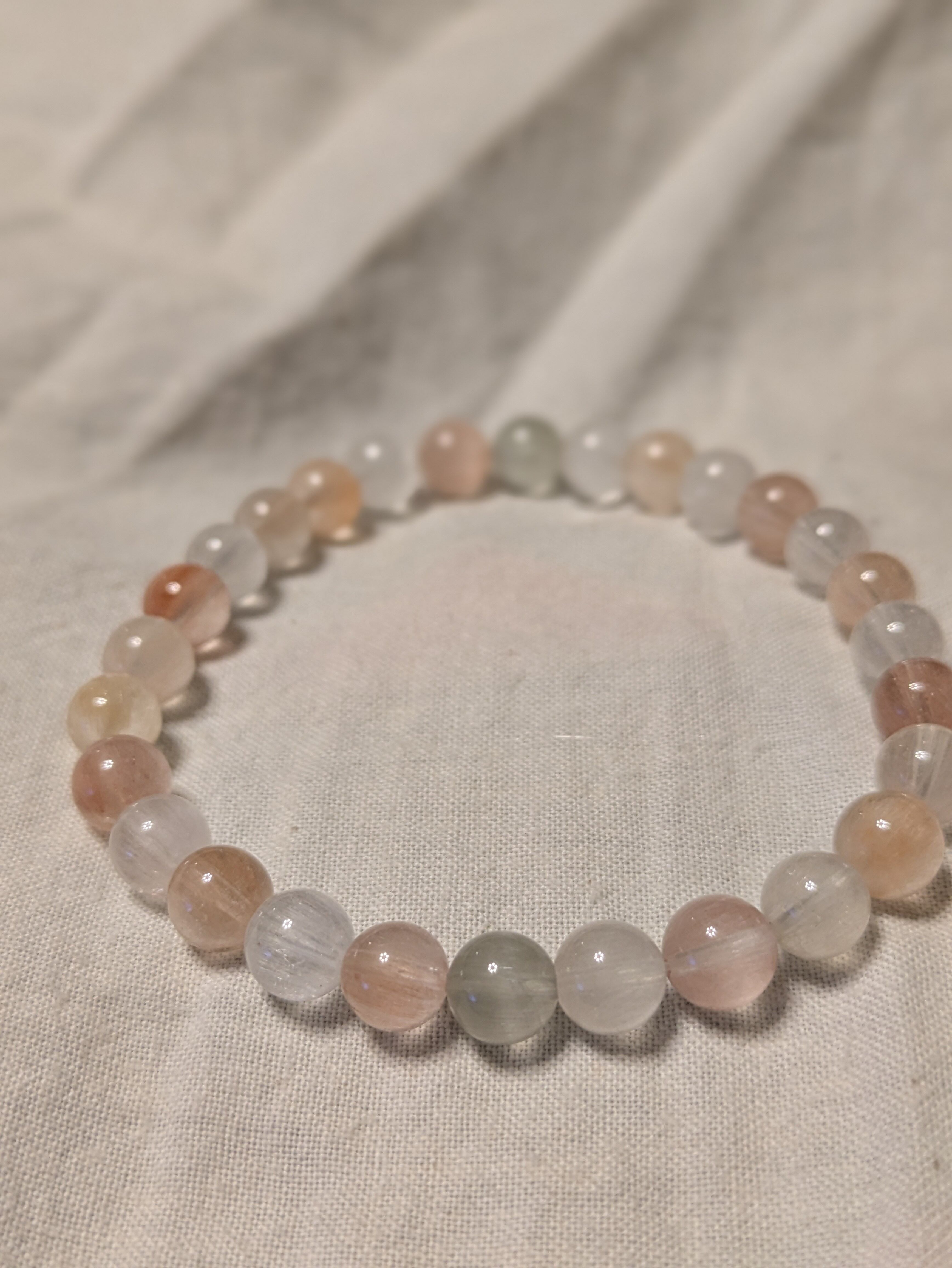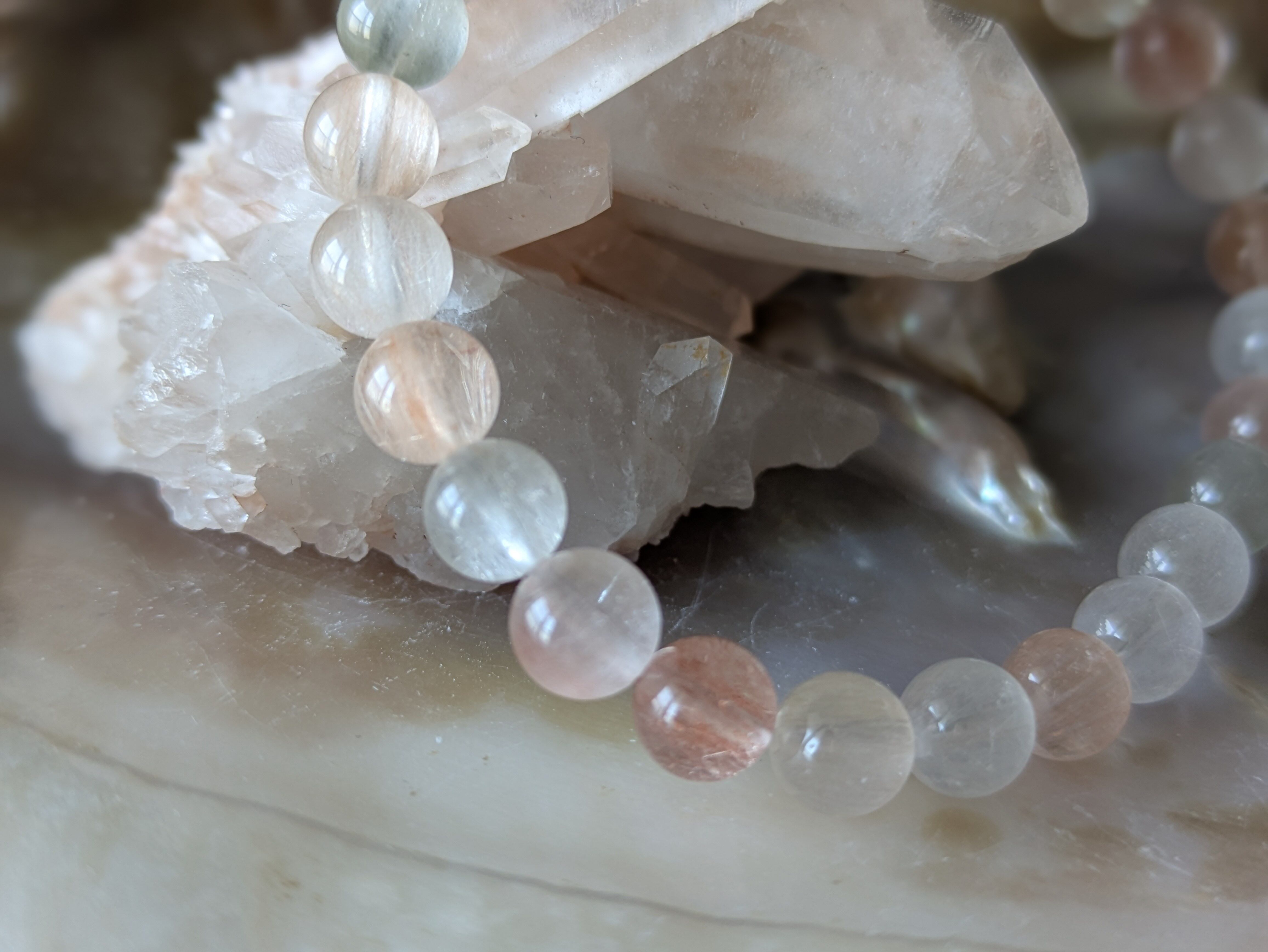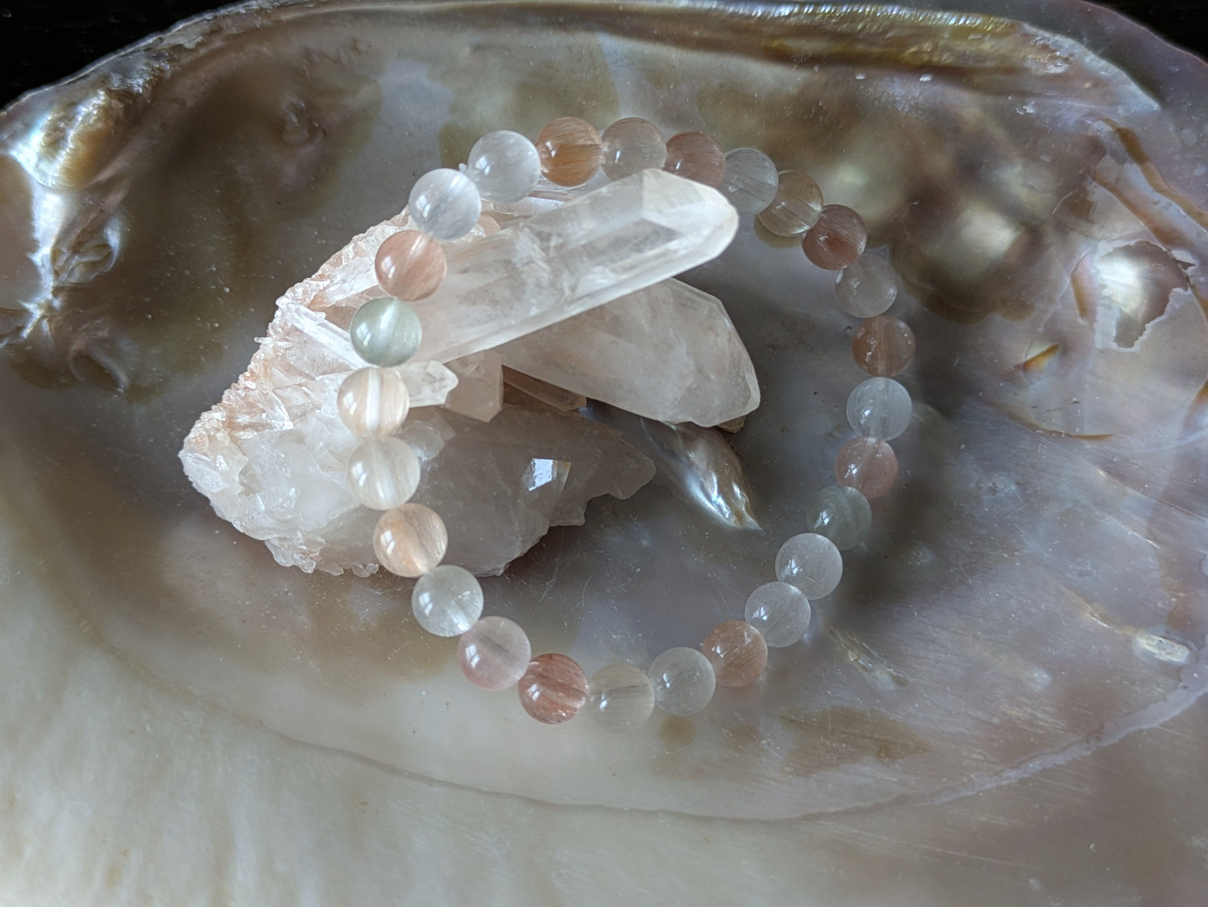 サゲニティッククォーツ(ラビットヘアー)は、個性的なラビットヘアーという美しいルチルを持つ天然石です。このブレスレットは、持つ人に特別なエネルギーをもたらし、心と体の調和を図る助けをしてくれます。