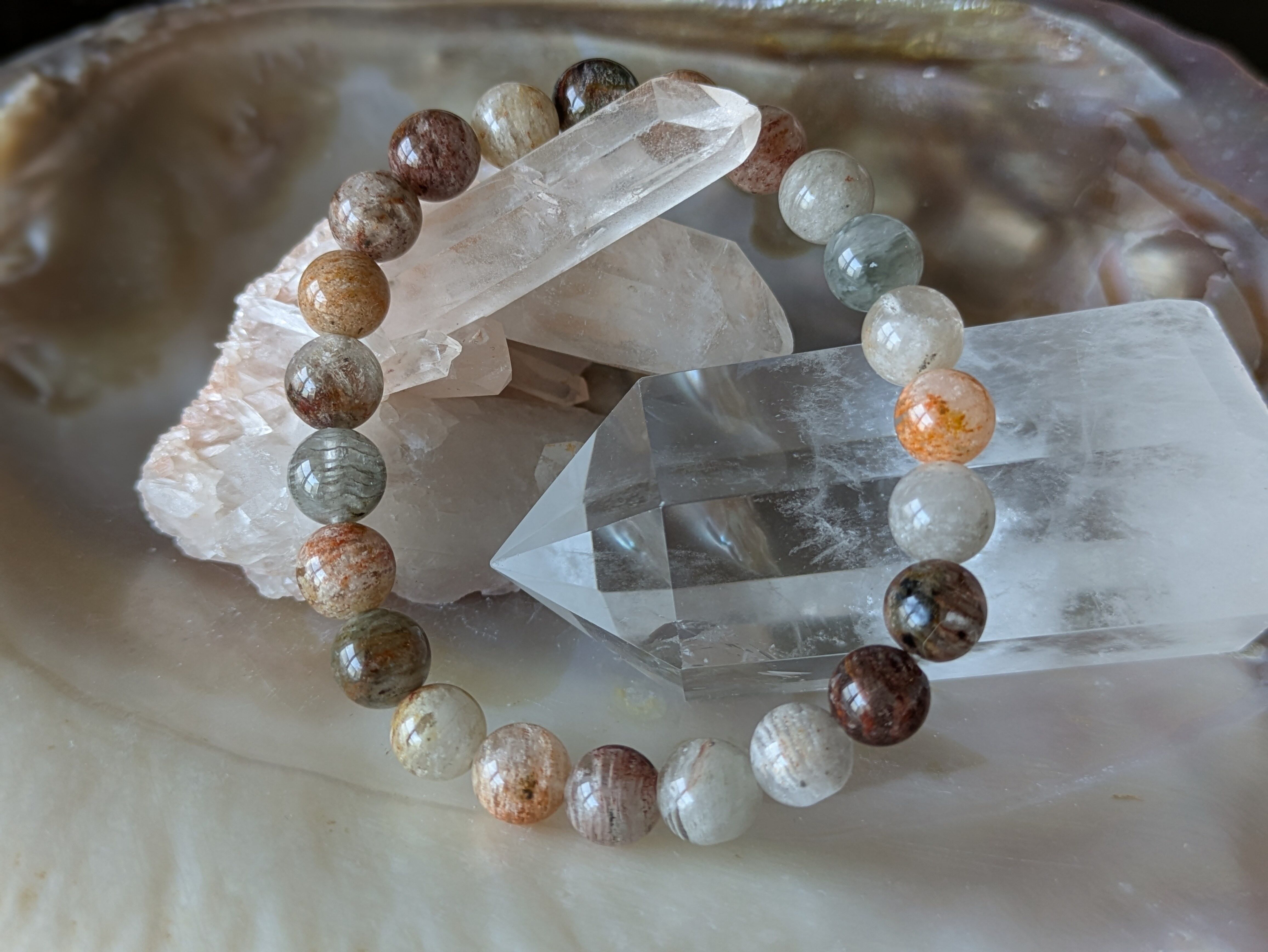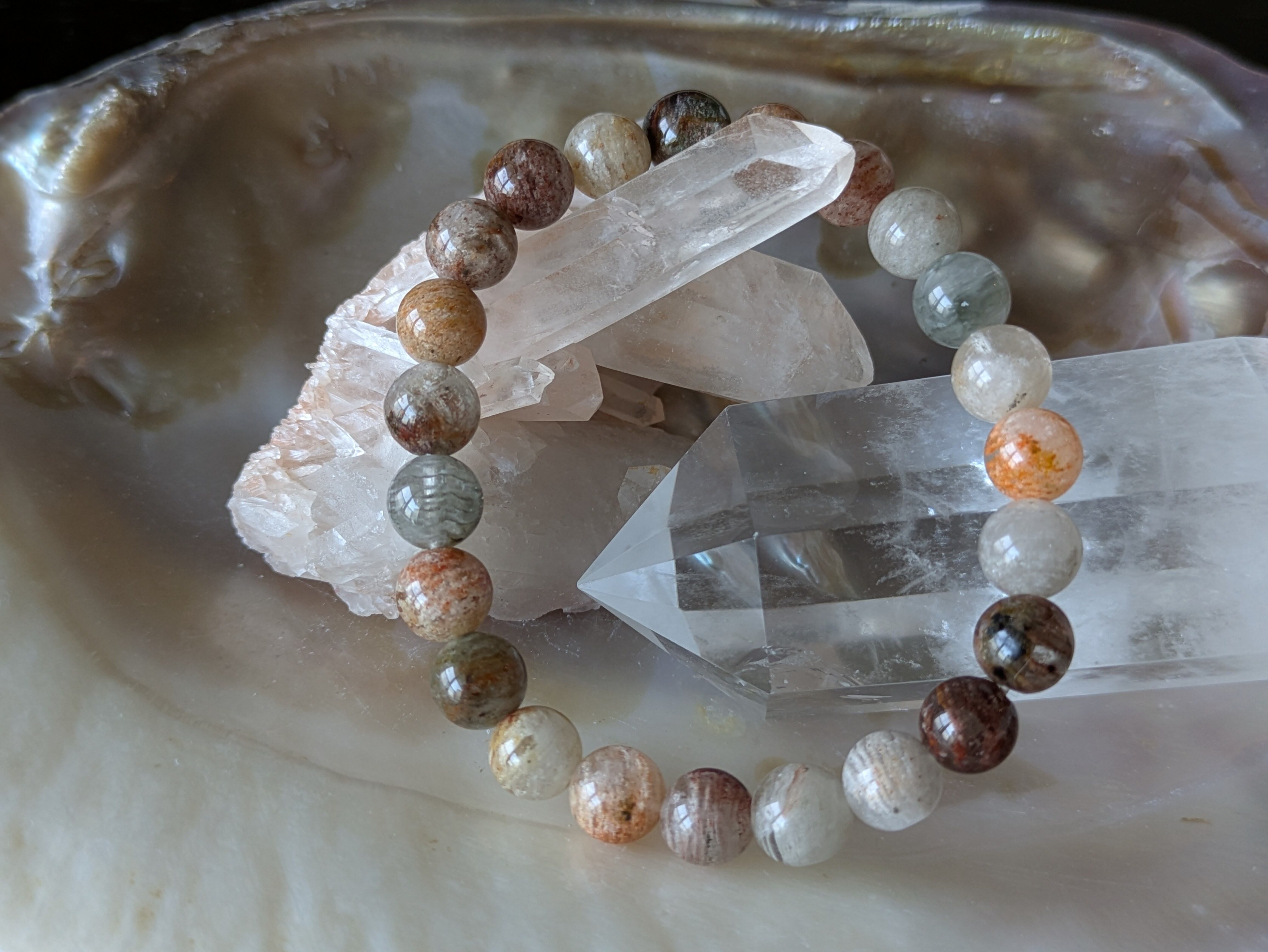 マルチ千層ガーデンクォーツは、多彩な色合いが魅力の天然石で、どんなシーンでも華やかさを引き立てます。このブレスレットは、持つ人に心の安心感をもたらし、内面的なバランスを整える効果が期待できます。