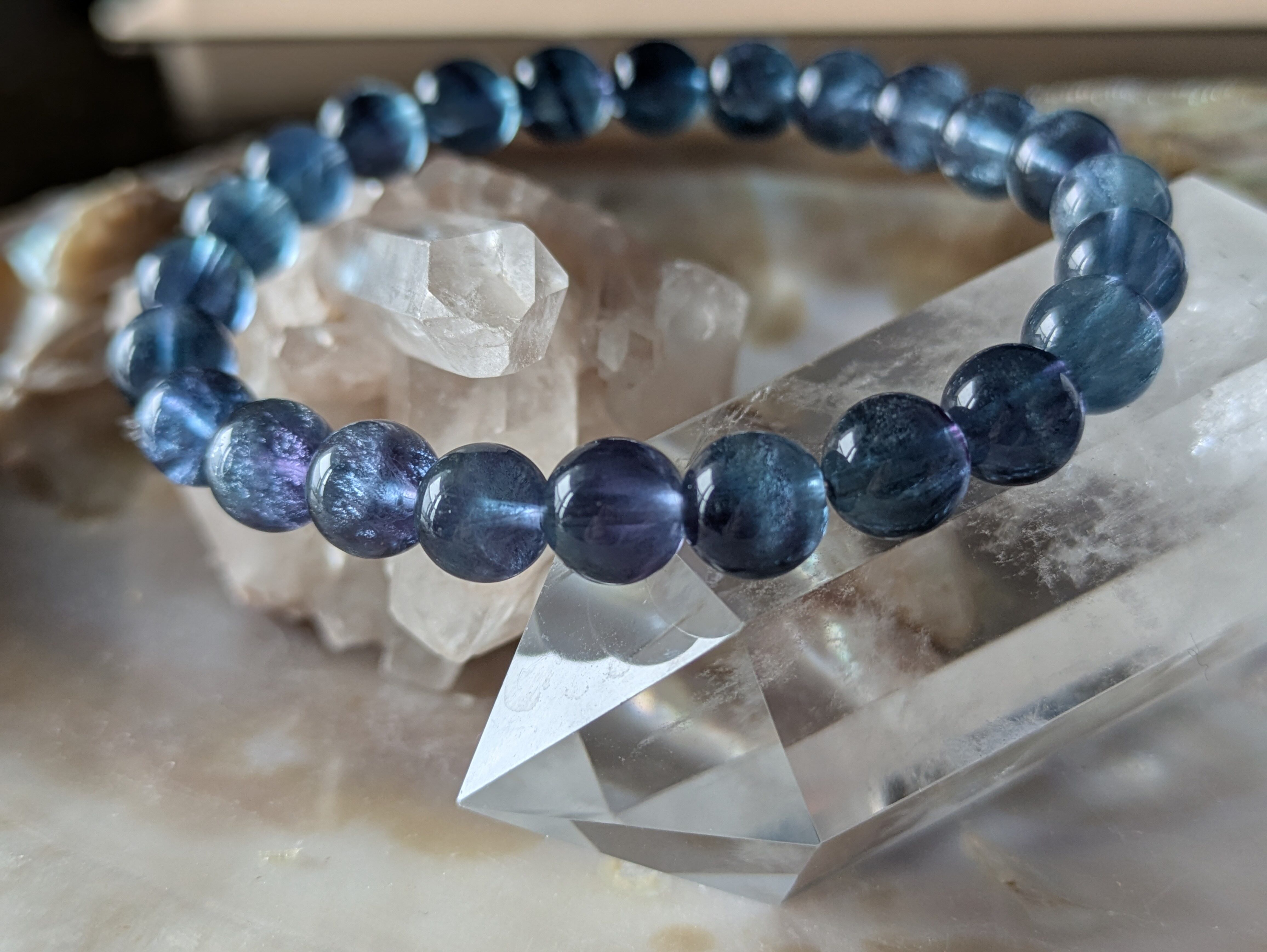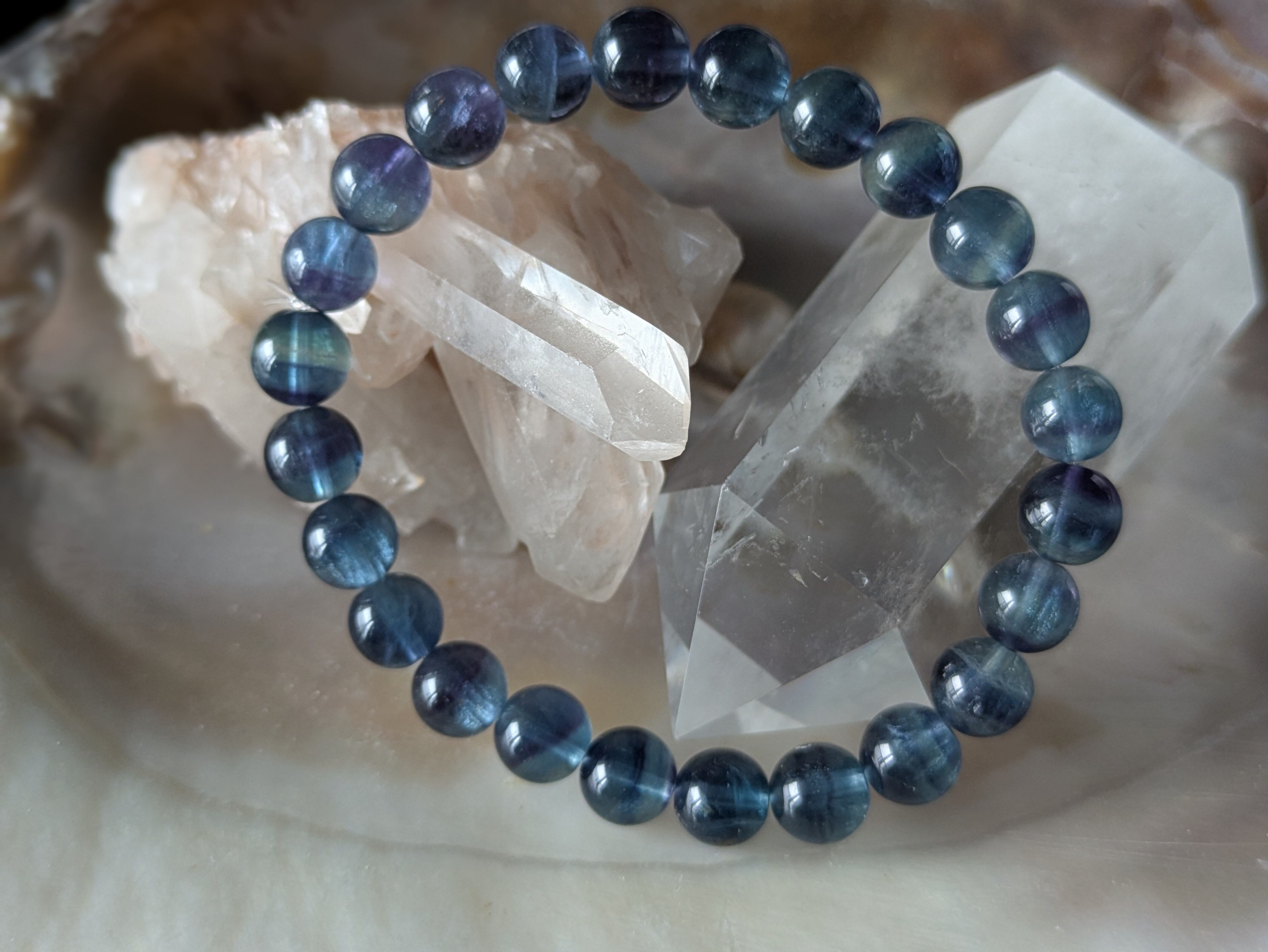■フローライト…この石は「天才の石」とも呼ばれ、持つ人の知恵を引き出し、学びやクリエイティブな活動を後押しします。心を整え、直感を高める効果が期待できます。