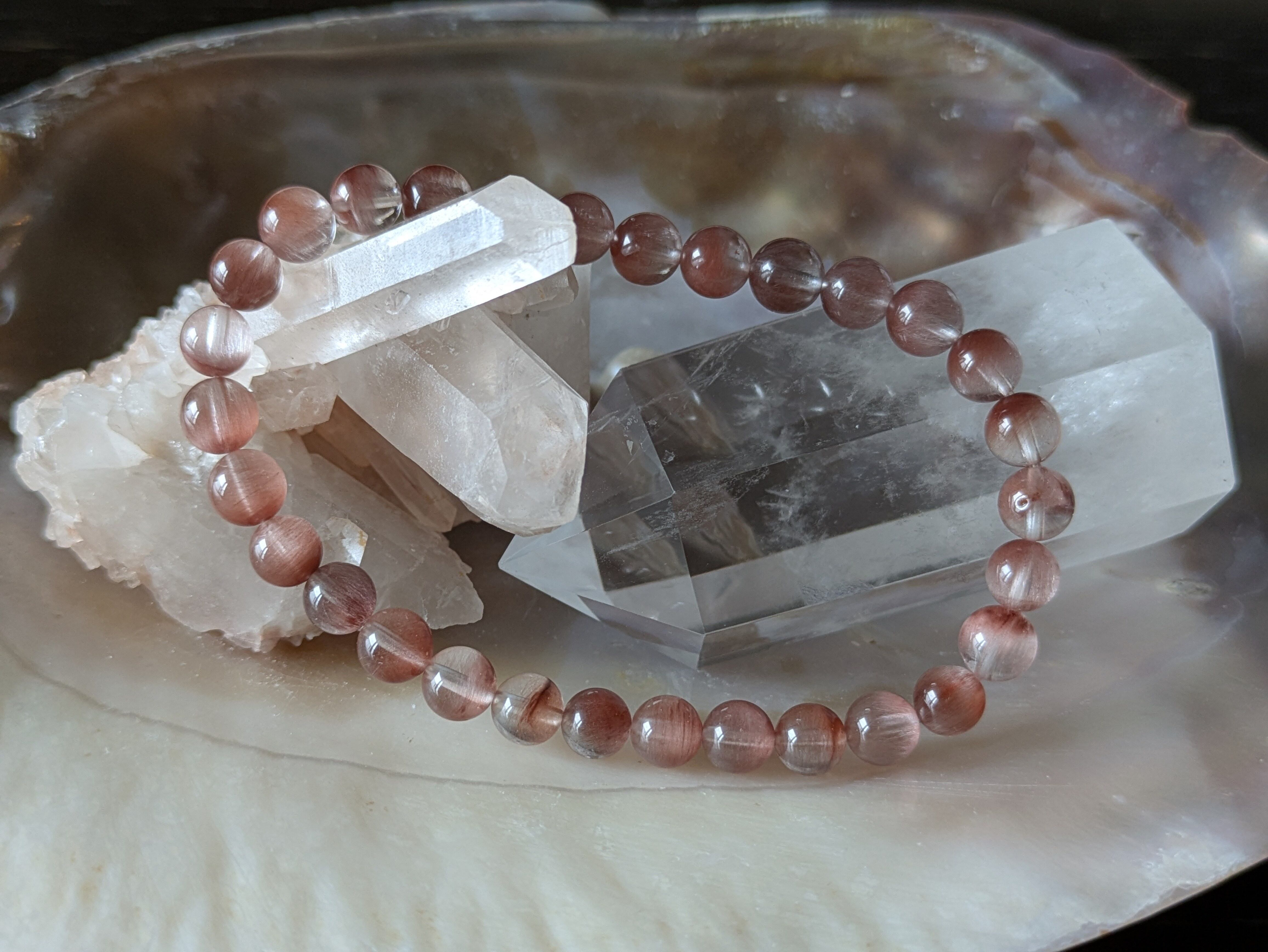57.ピンクパープルサゲニティッククォーツ(ラビットヘアー)7mm前後