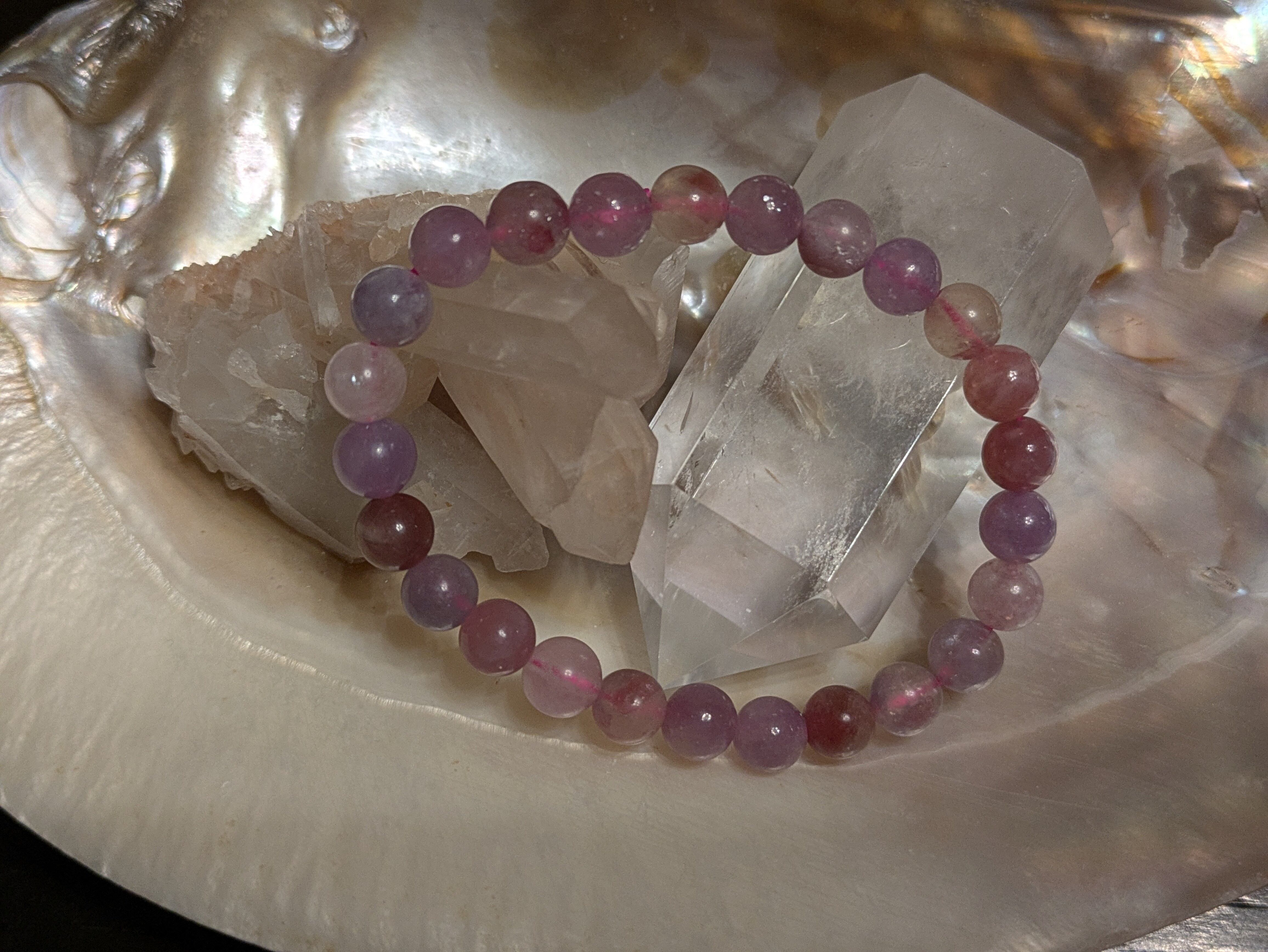 ■マダガスカルで発見されたペグマタイトの一種で、レピドライトやピンクトルマリン、スモーキークォーツ、クリーブランド石などが含まれている天然石です。