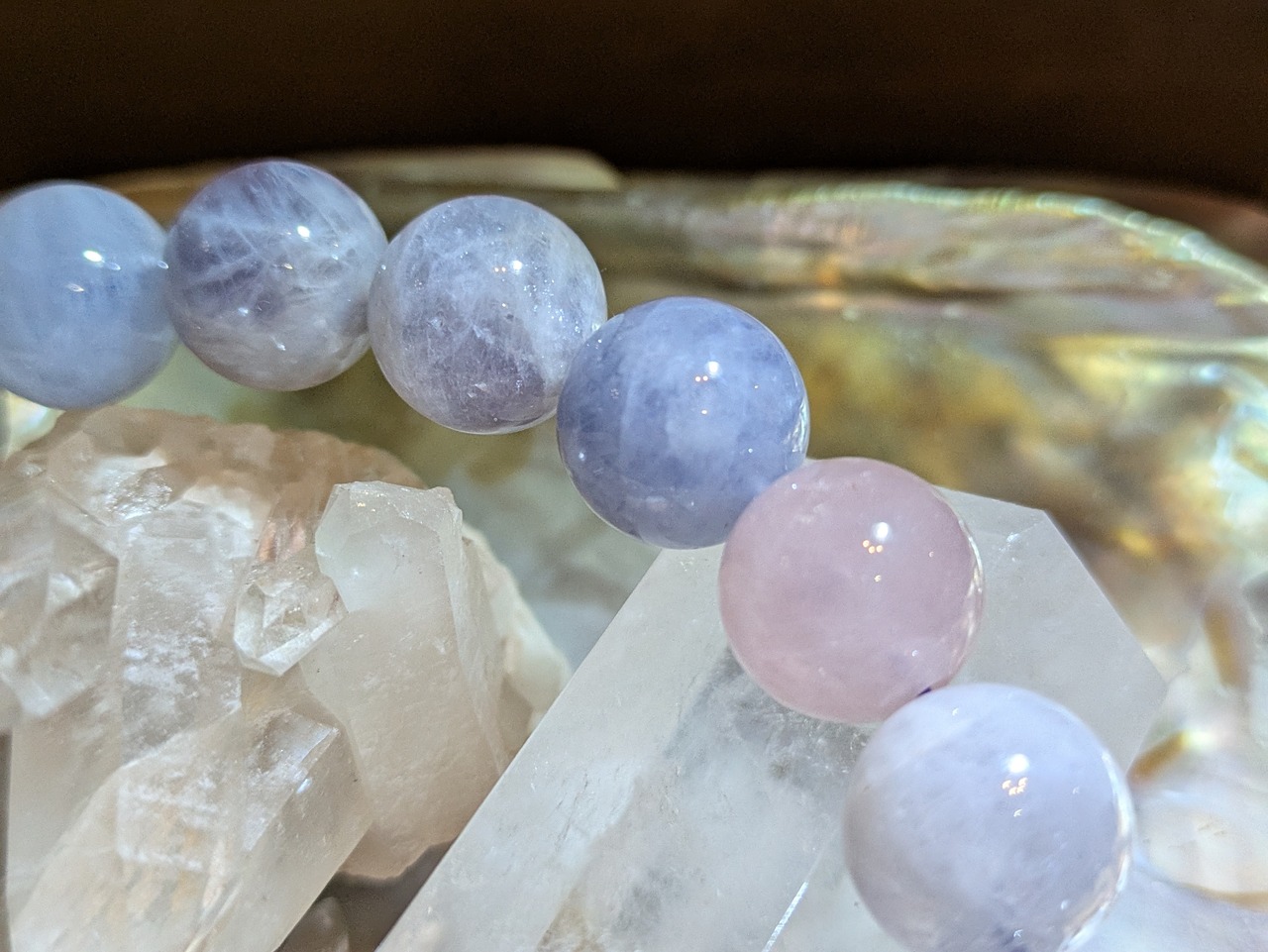 ■ブルーローズクォーツは、感情のバランスを整え、高い安心感を与えることで知られています。日常生活のストレスに負けず、心を落ち着ける手助けをします。
