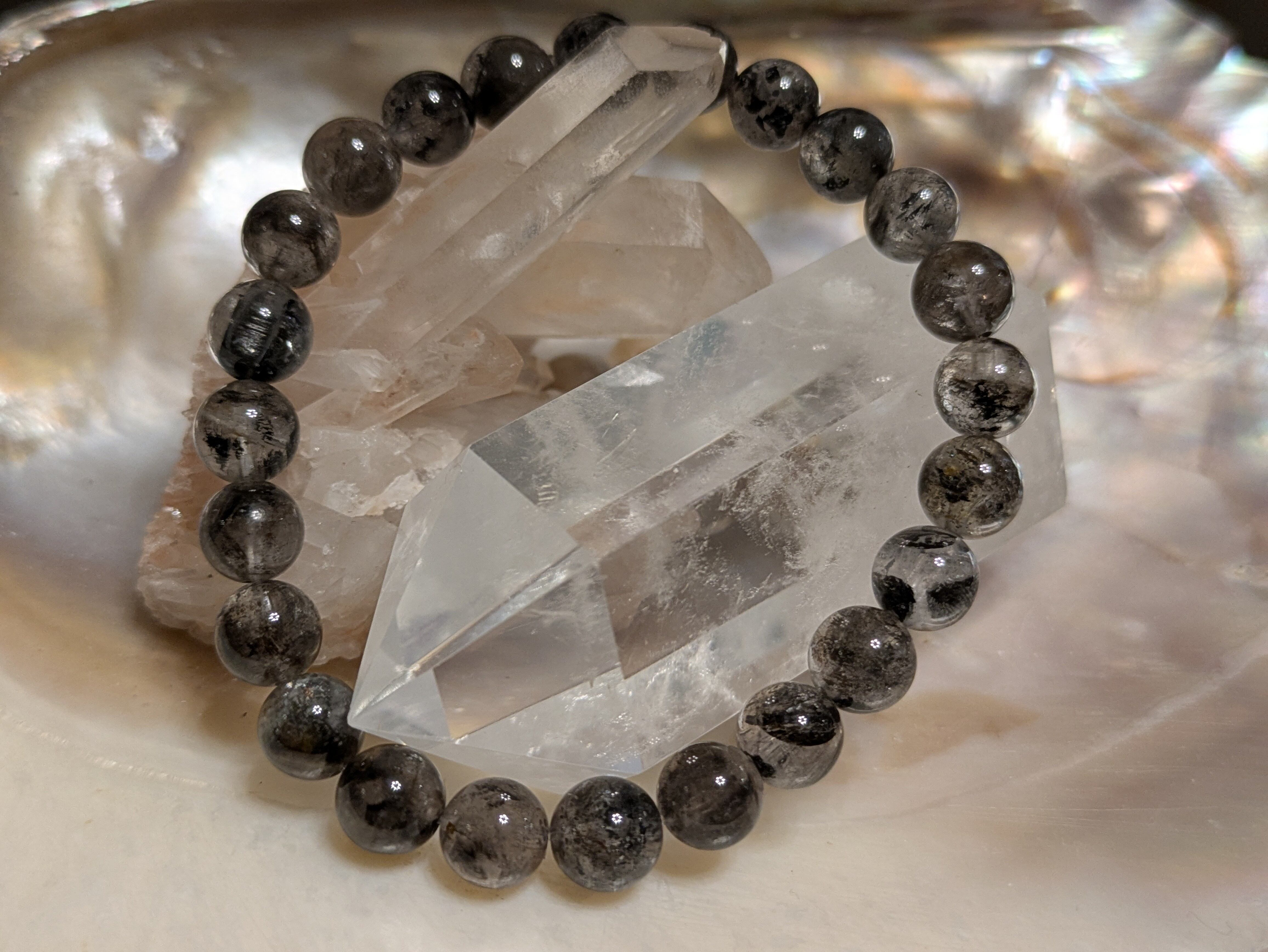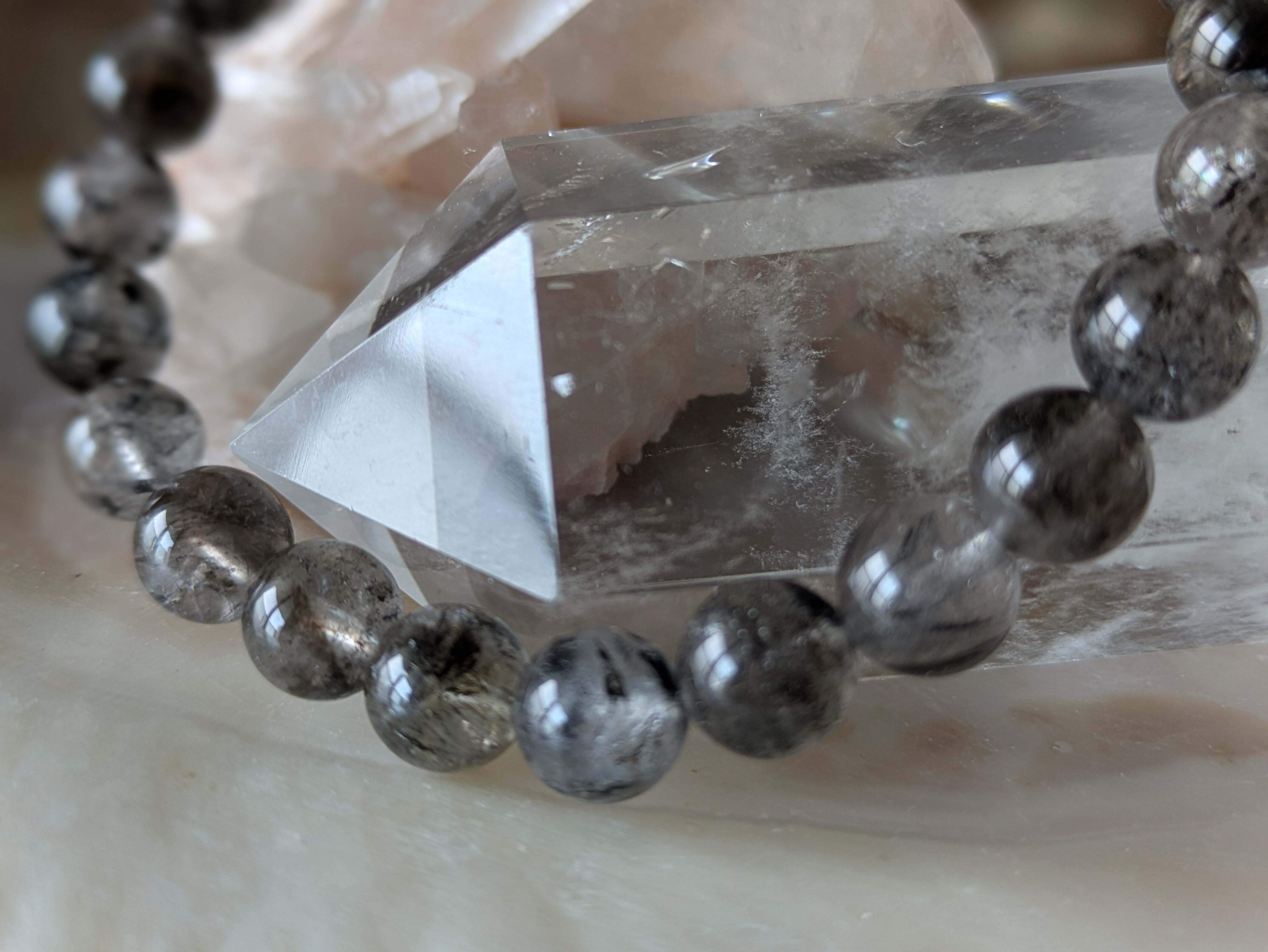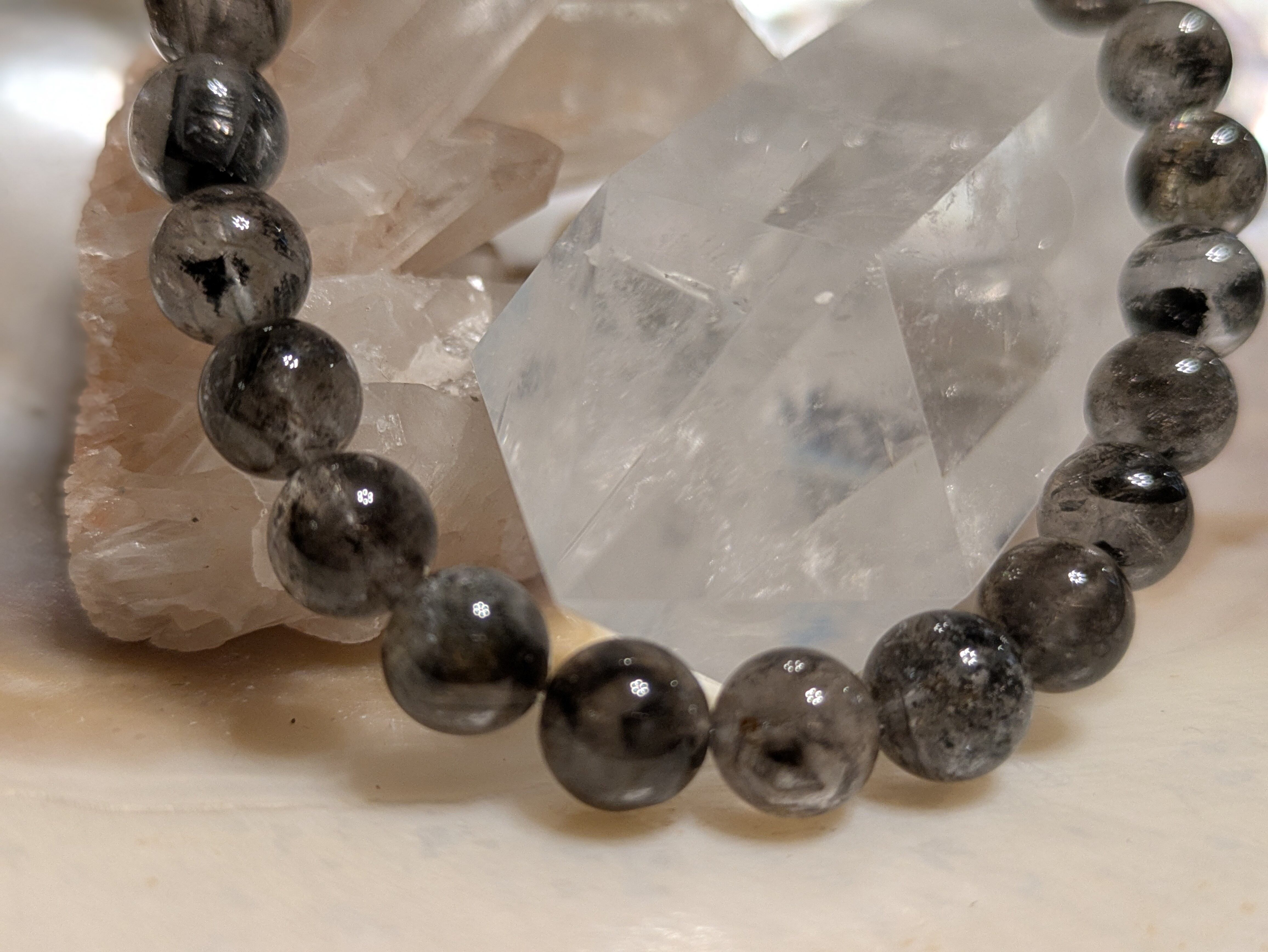 ■エレスチャルクォーツ…この石は、持つ人に深遠なエネルギーを伝え、内面的な成長を助けます。一つ一つ異なる質感や模様があり、見る人を魅了します。