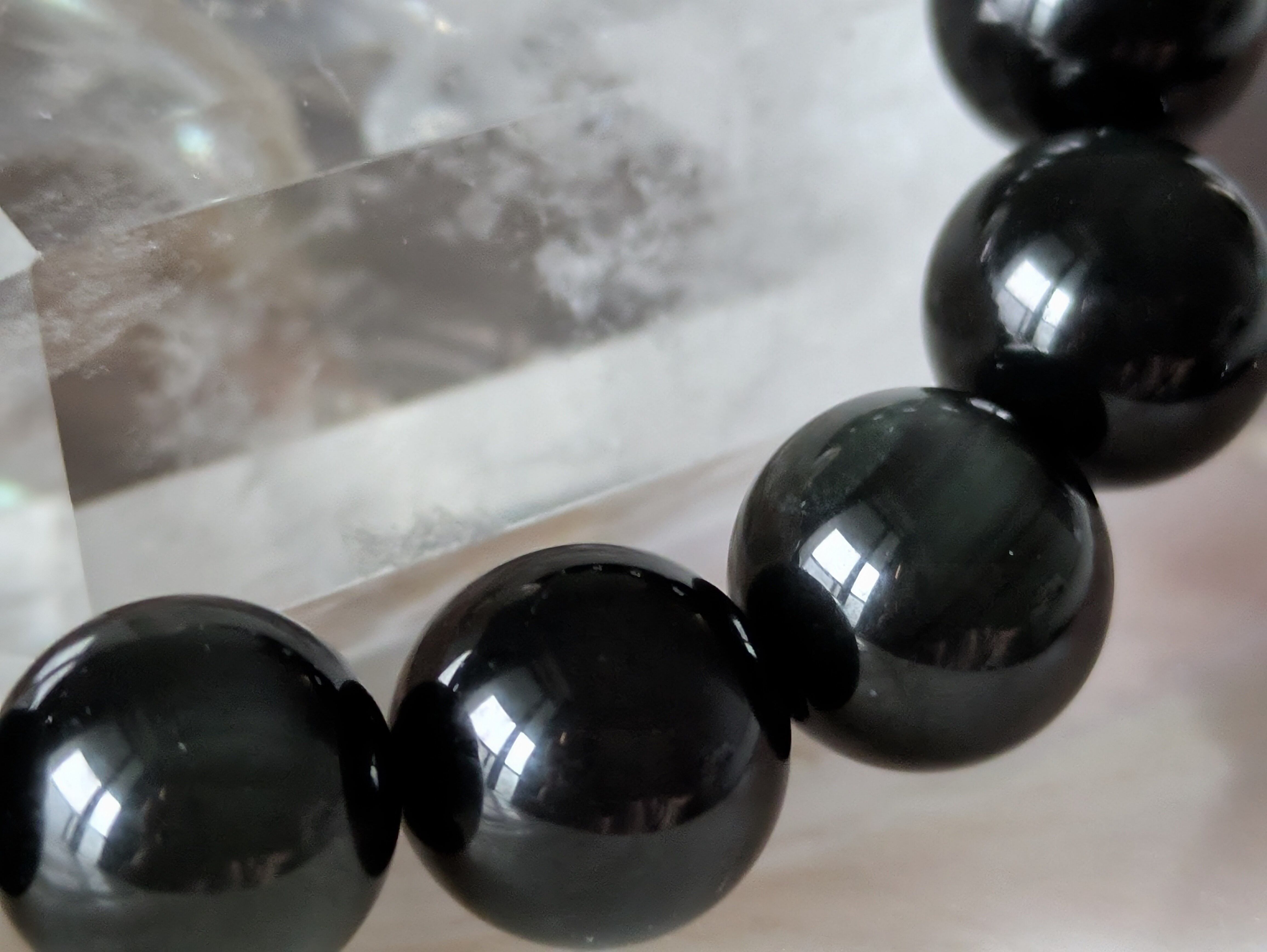 ■その神秘的な色合いは、シンプルなスタイルにも存在感を与え、日常の装いを引き立てるアクセントとして活躍します。オブシディアンは、内面的な洞察や意識を深める石としても知られています。