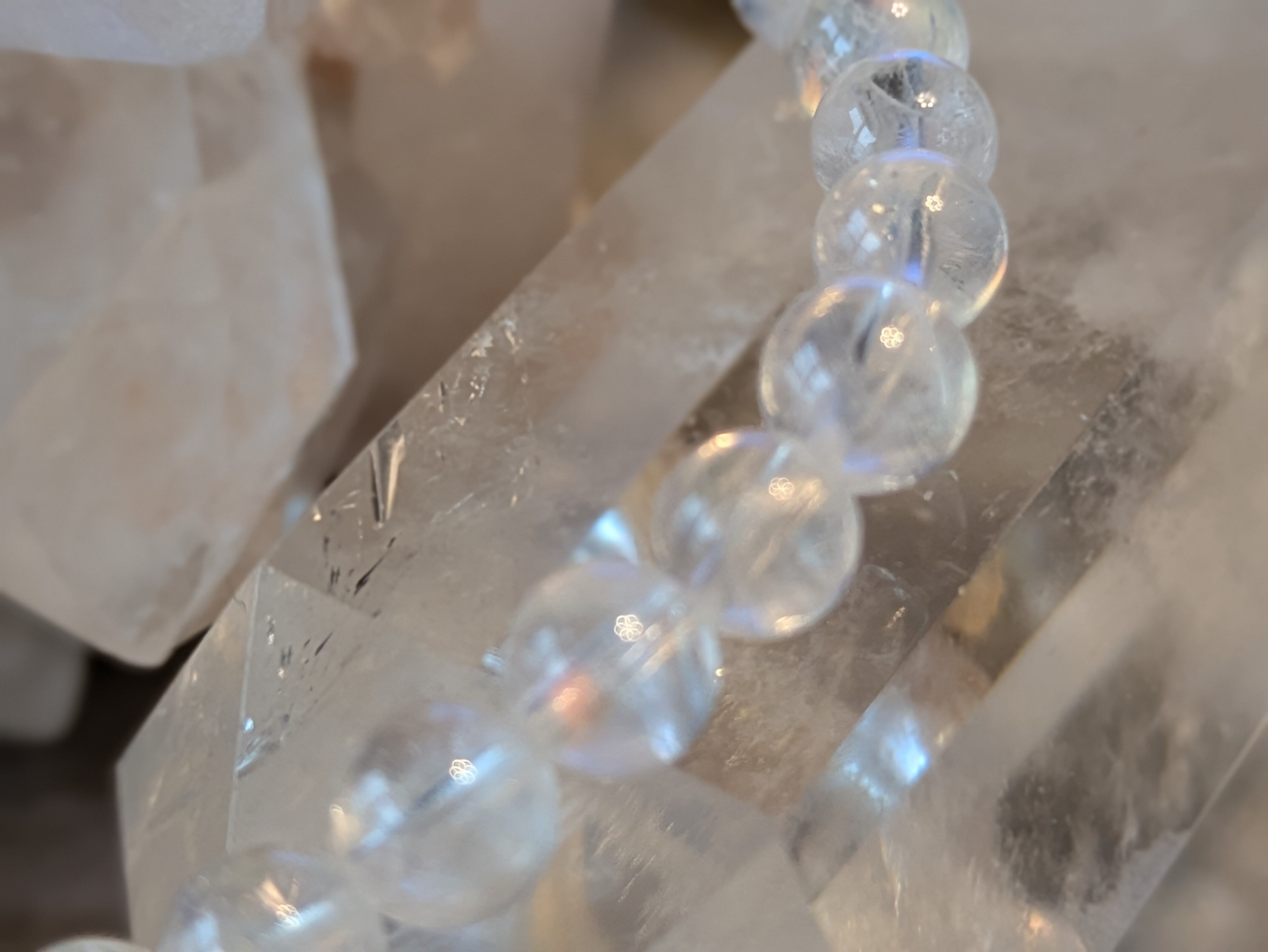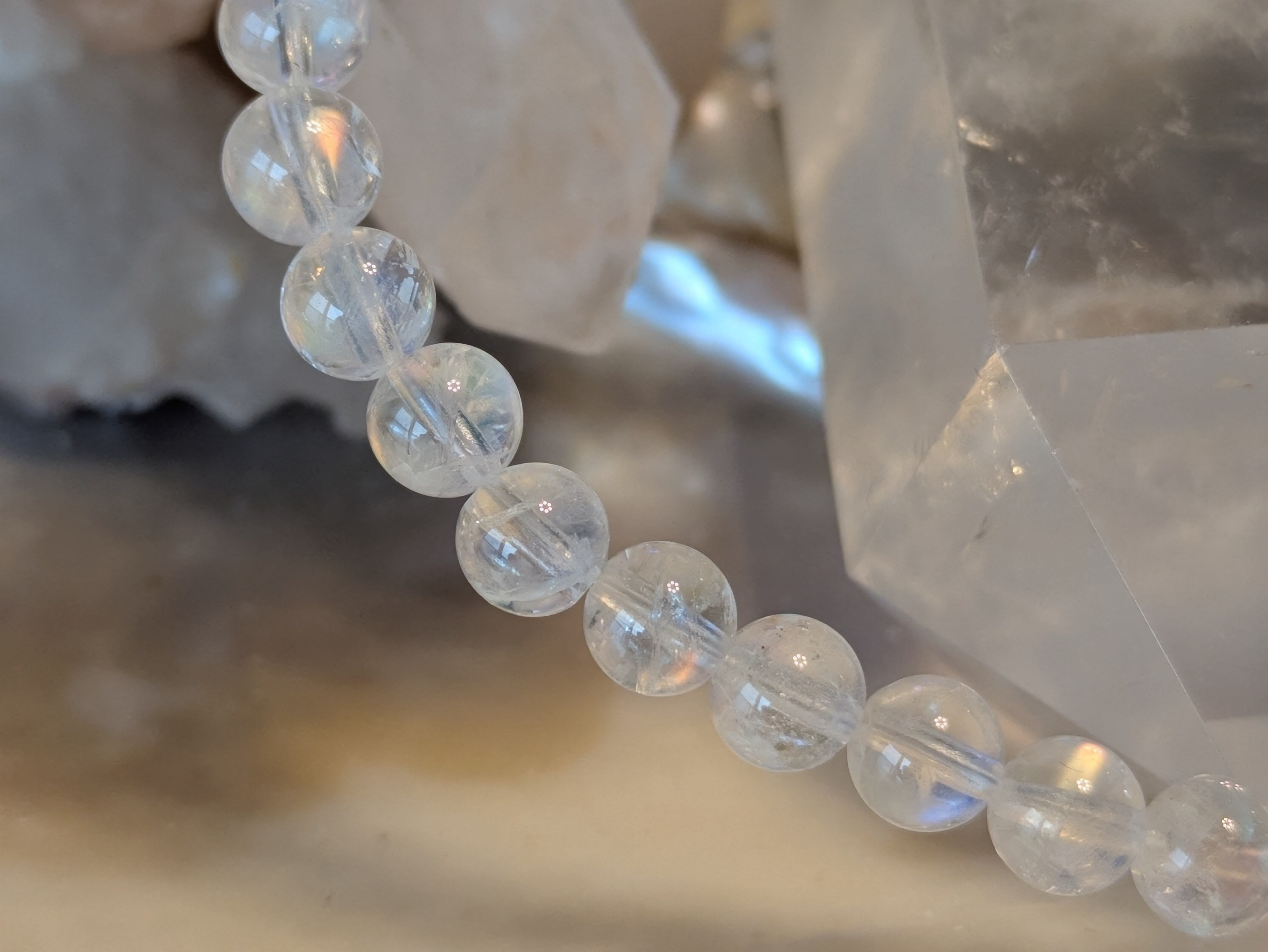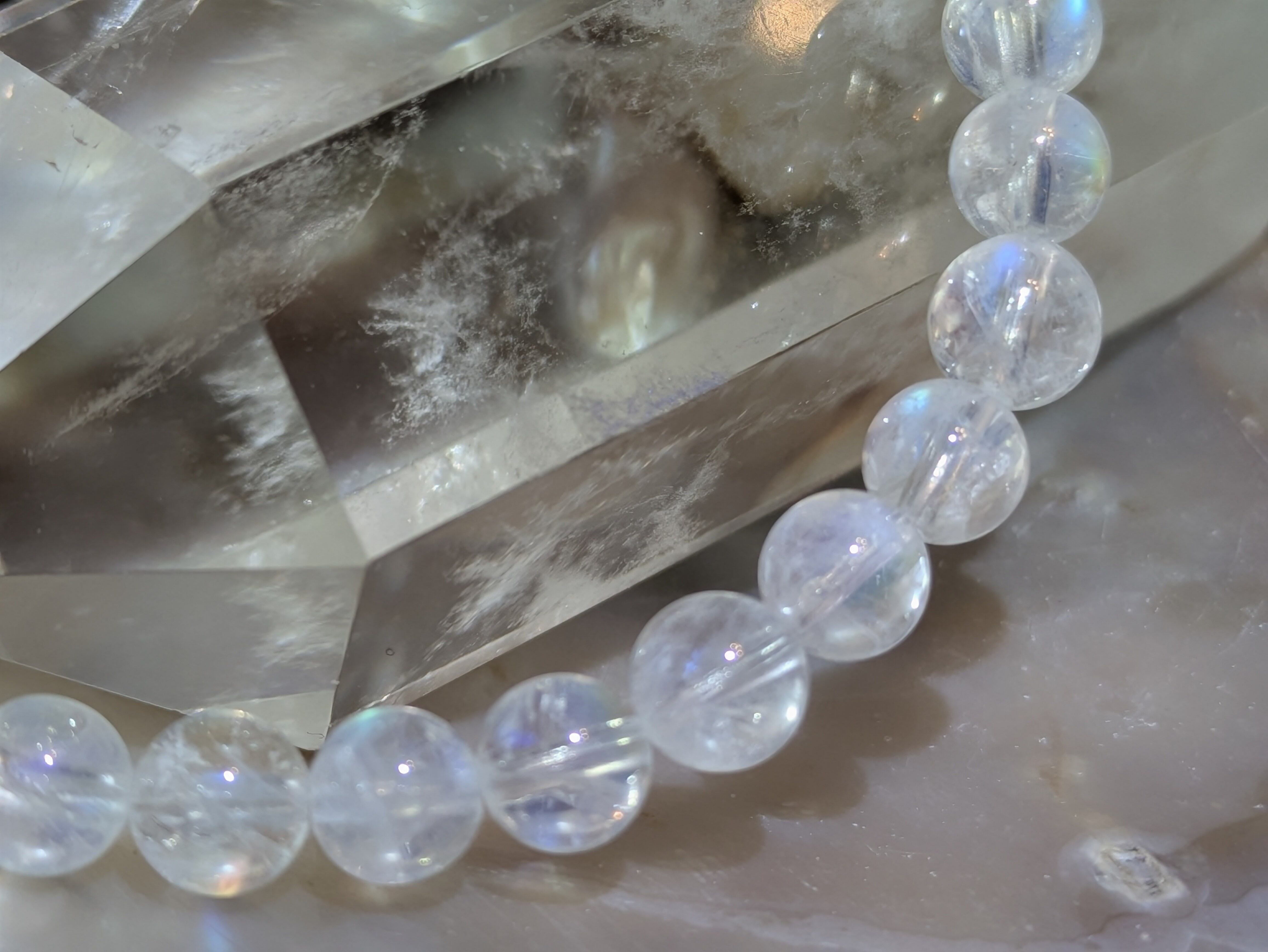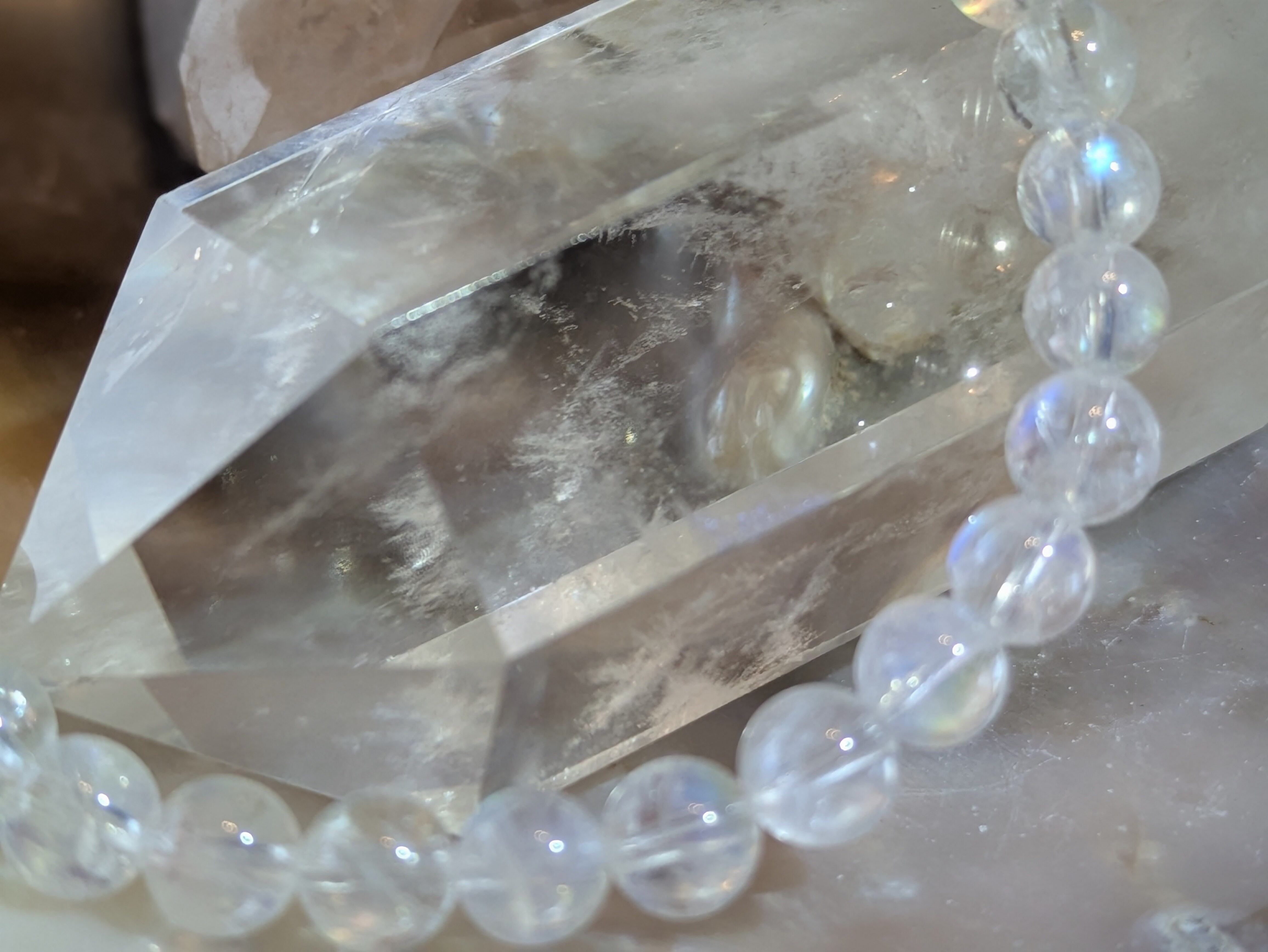 画像の水晶は浄化用であり、レインボームーンストーンのみの販売となります。