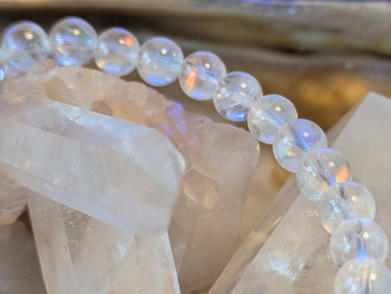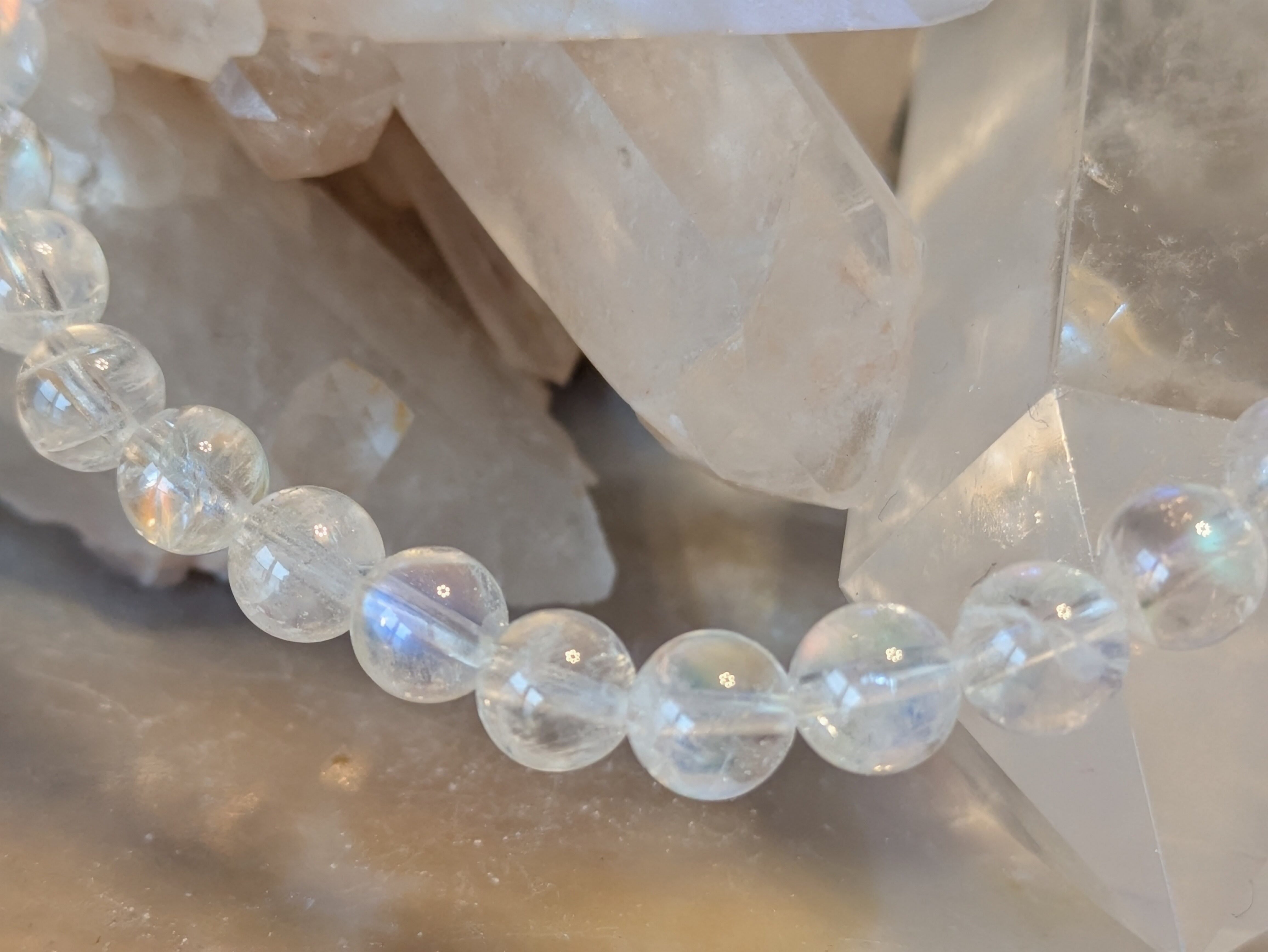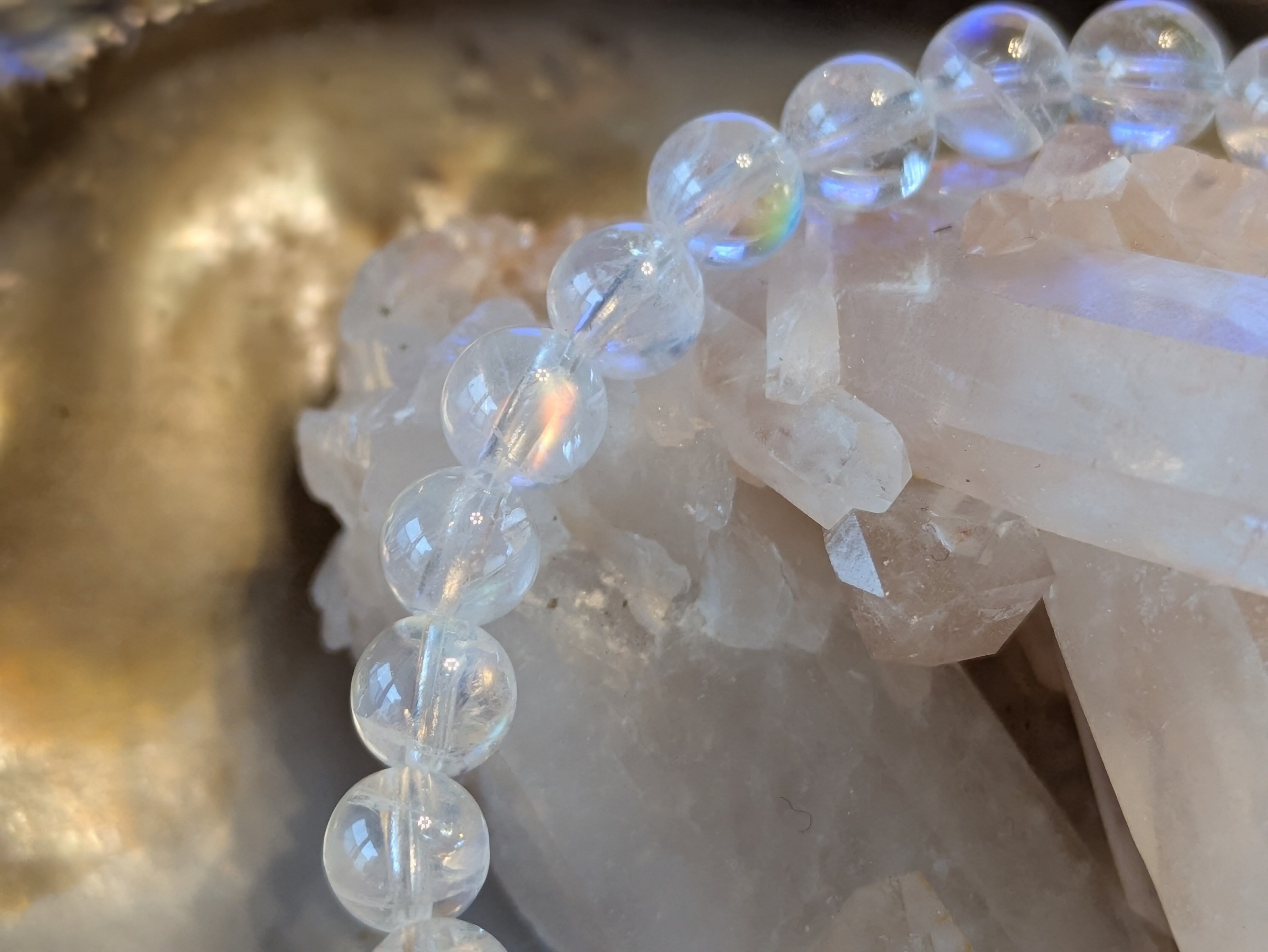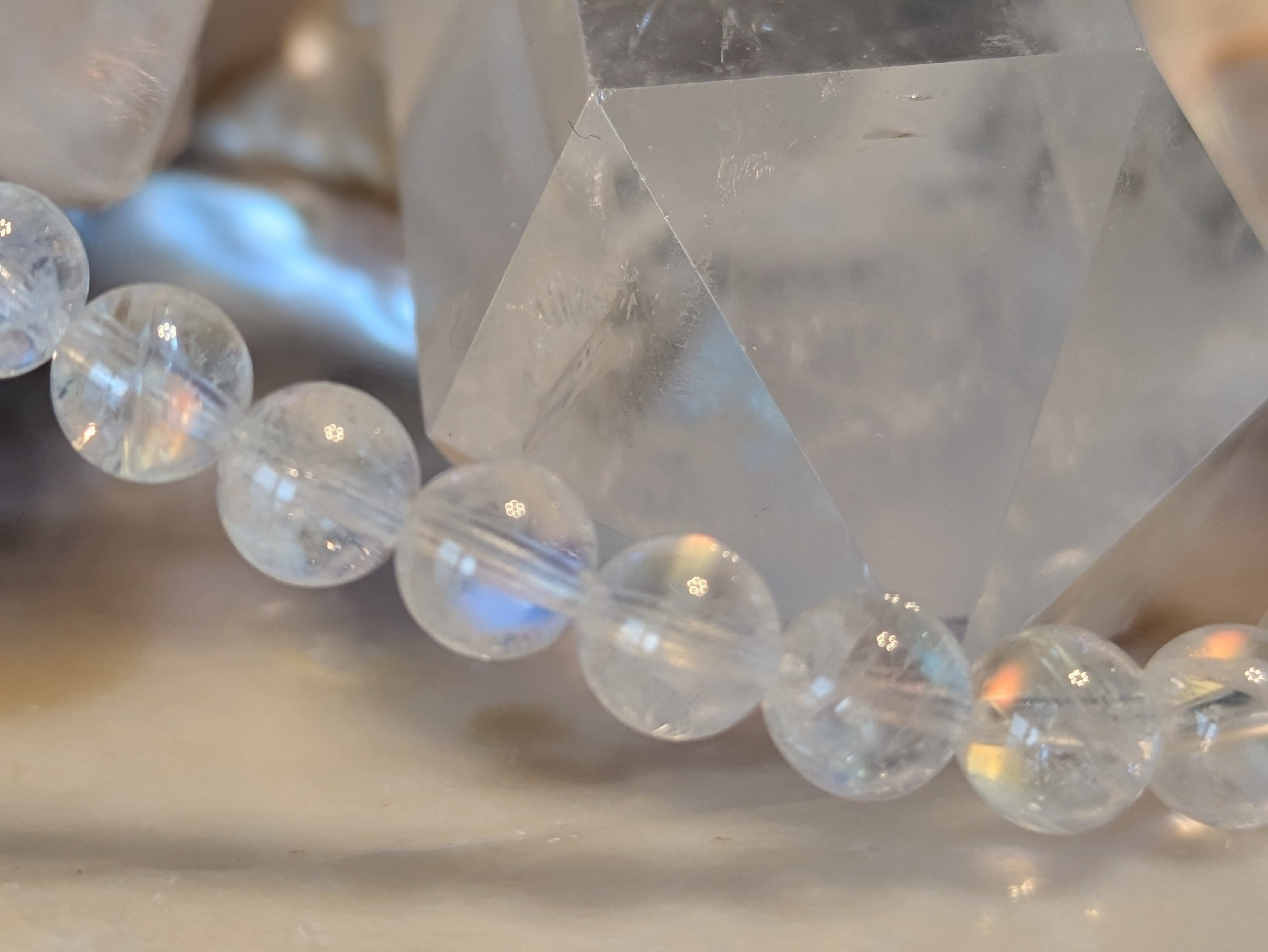画像の水晶は浄化用であり、レインボームーンストーンのみの販売となります。