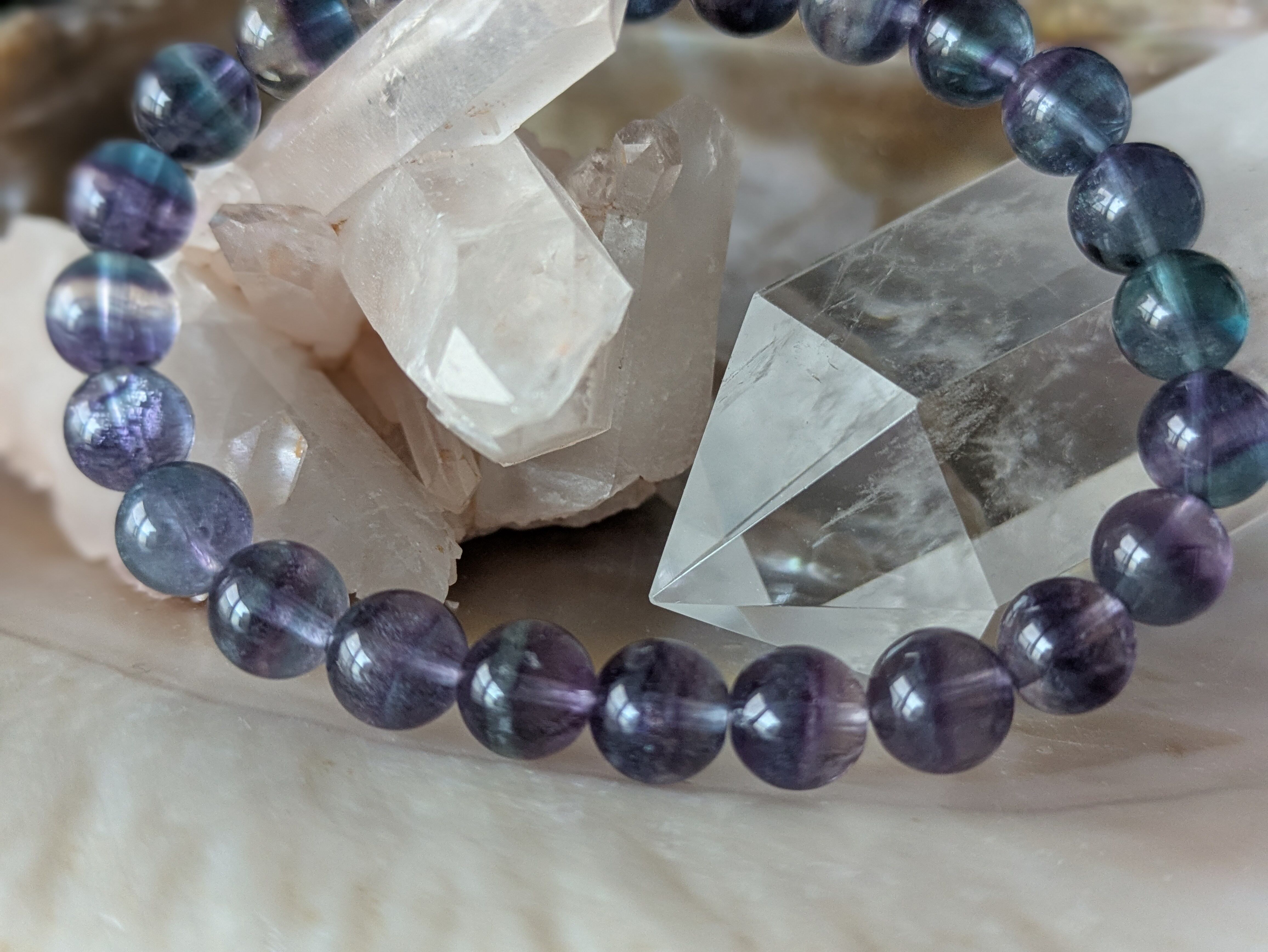 ■フローライト…この石は「天才の石」とも呼ばれ、持つ人の知恵を引き出し、学びやクリエイティブな活動を後押しします。心を整え、直感を高める効果が期待できます。