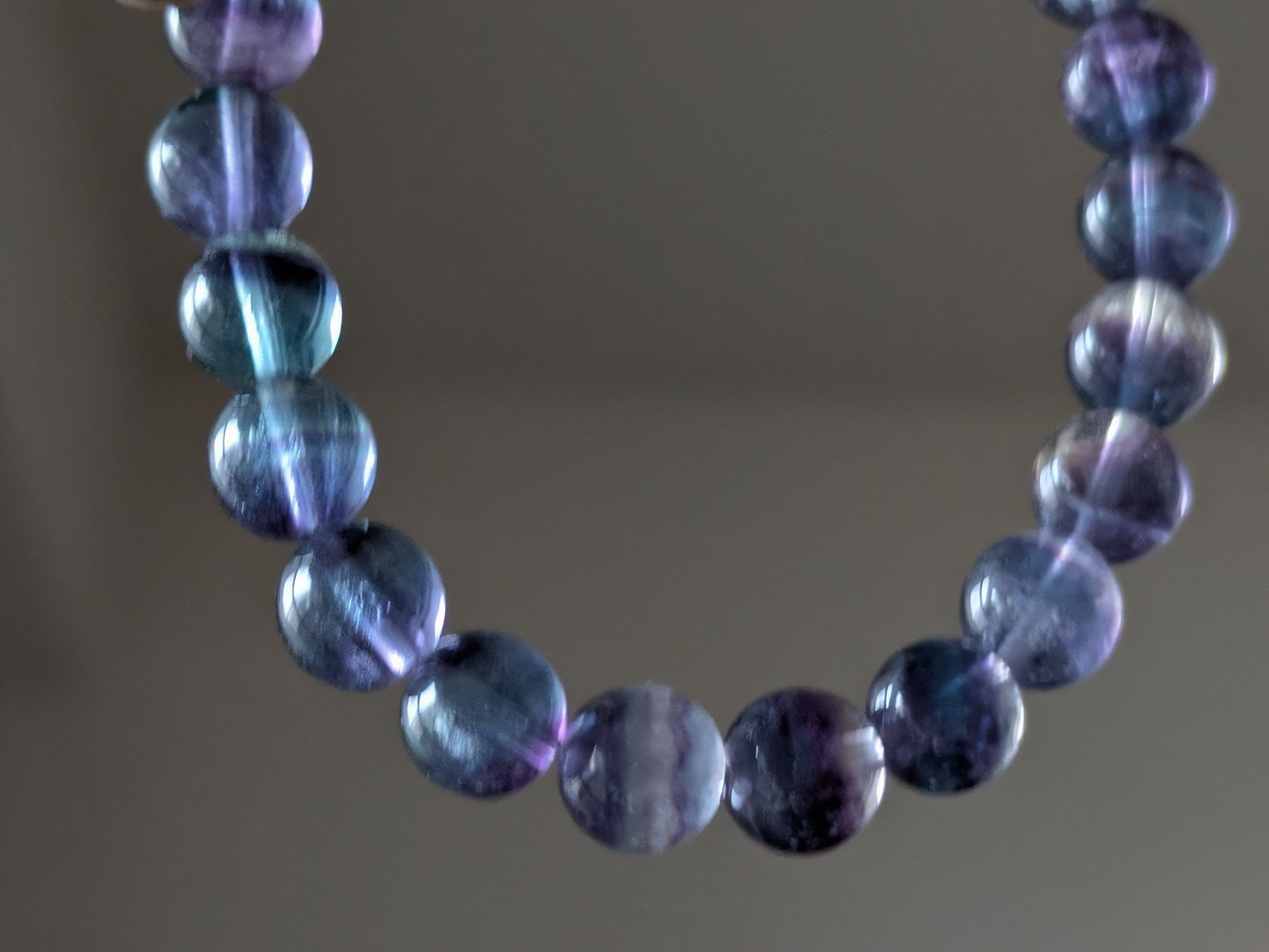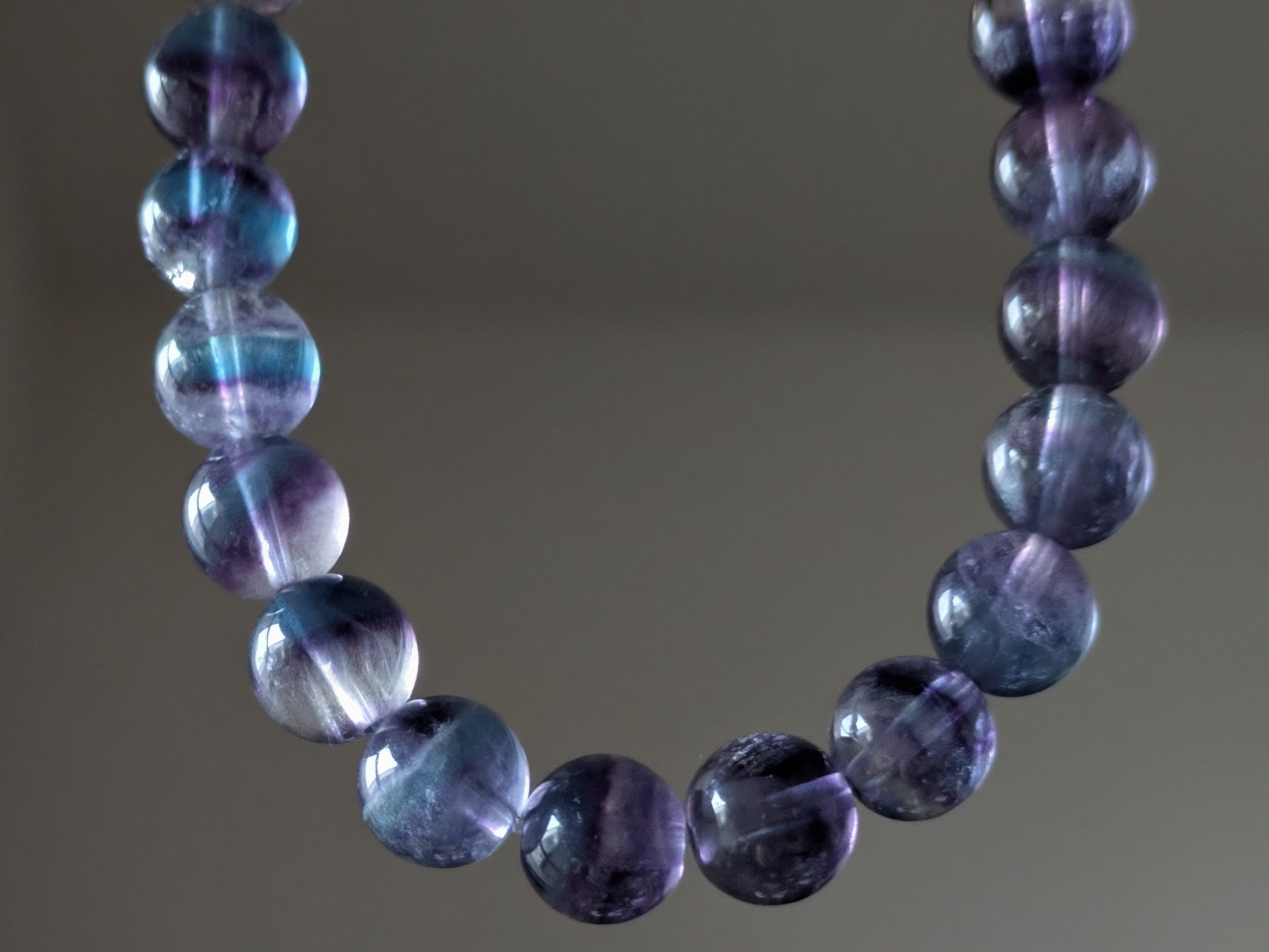 このフローライトは、紫がかった美しい色合いが魅力的で、どんなスタイルにもフィットします。
