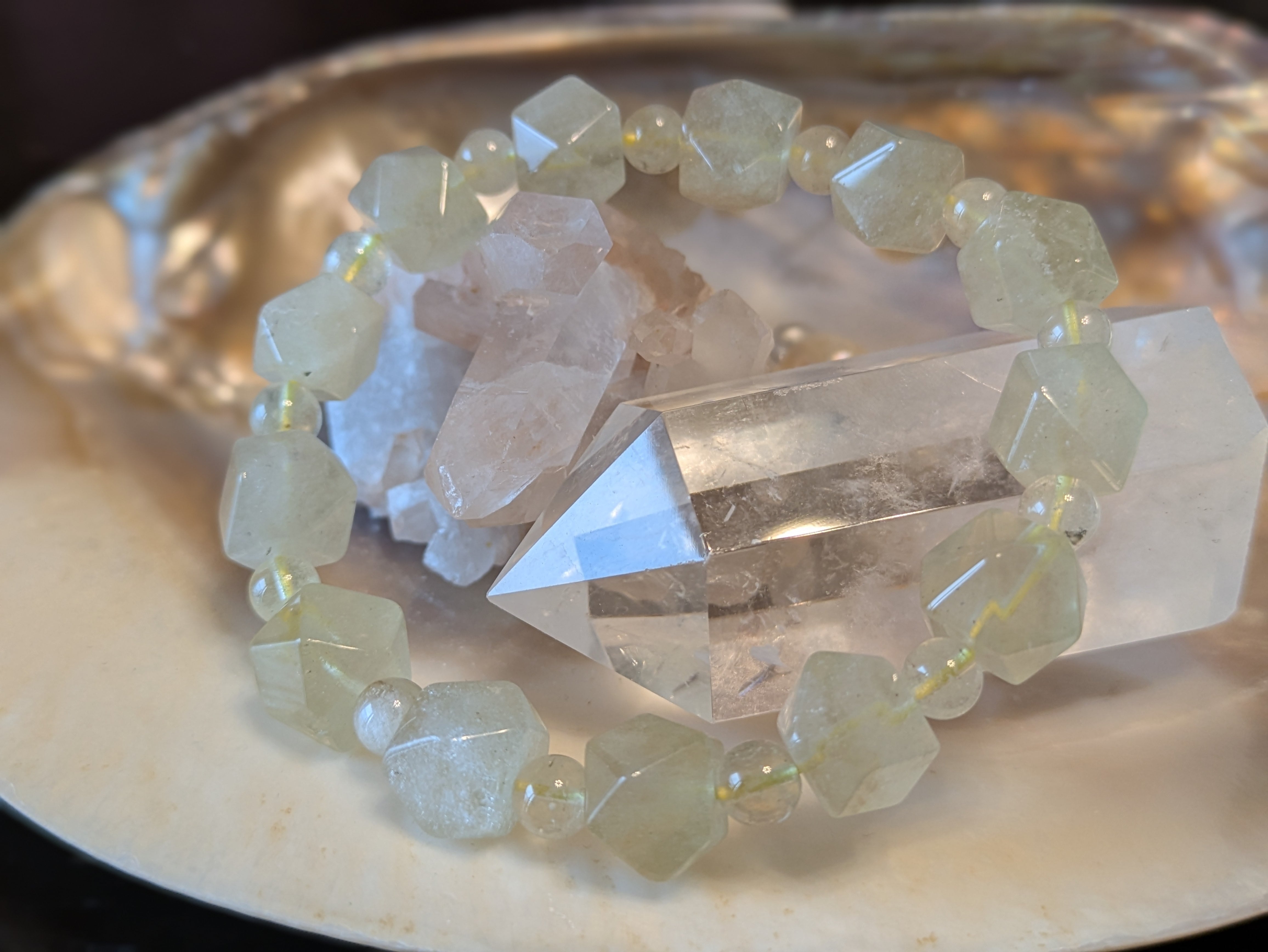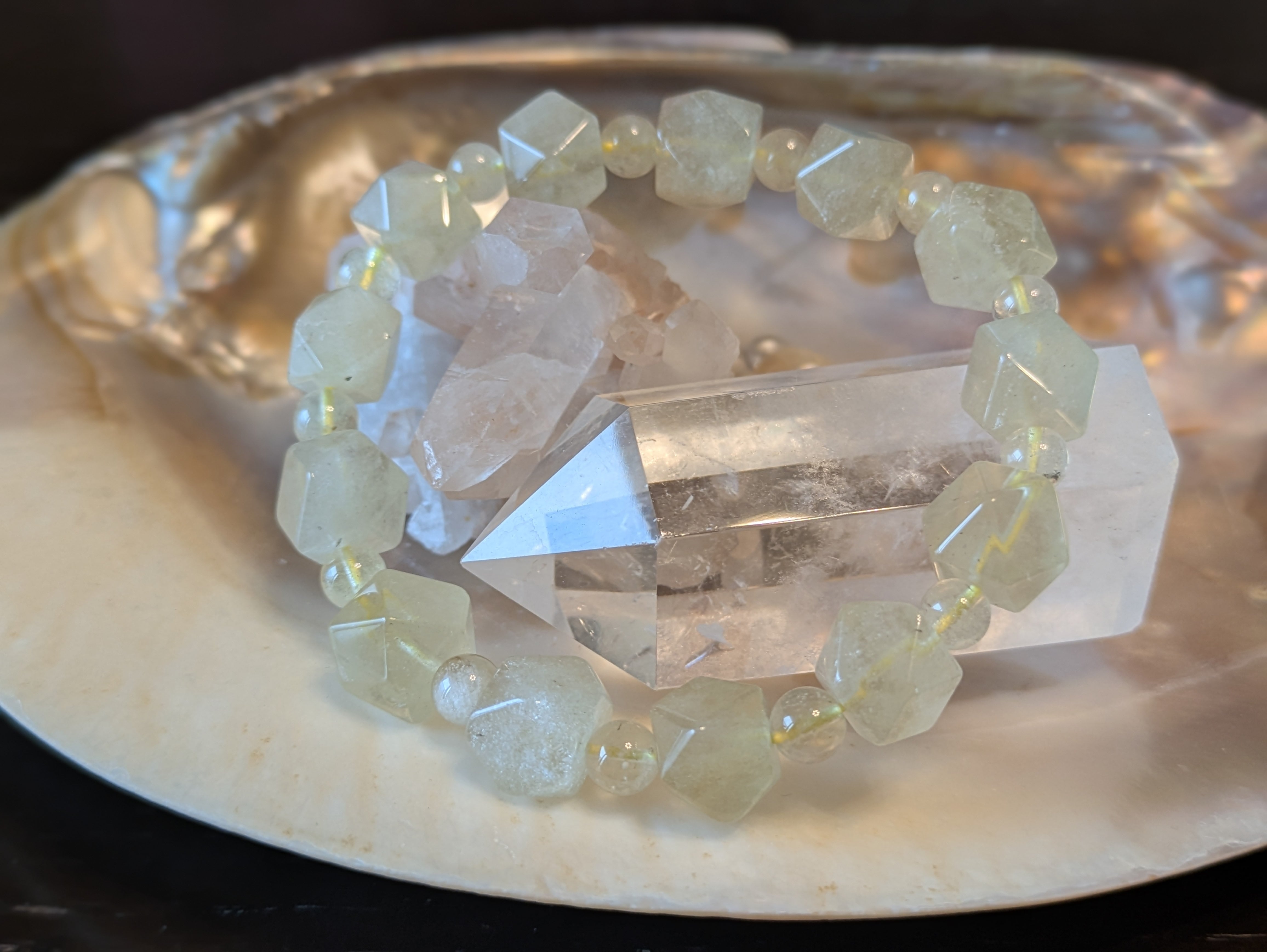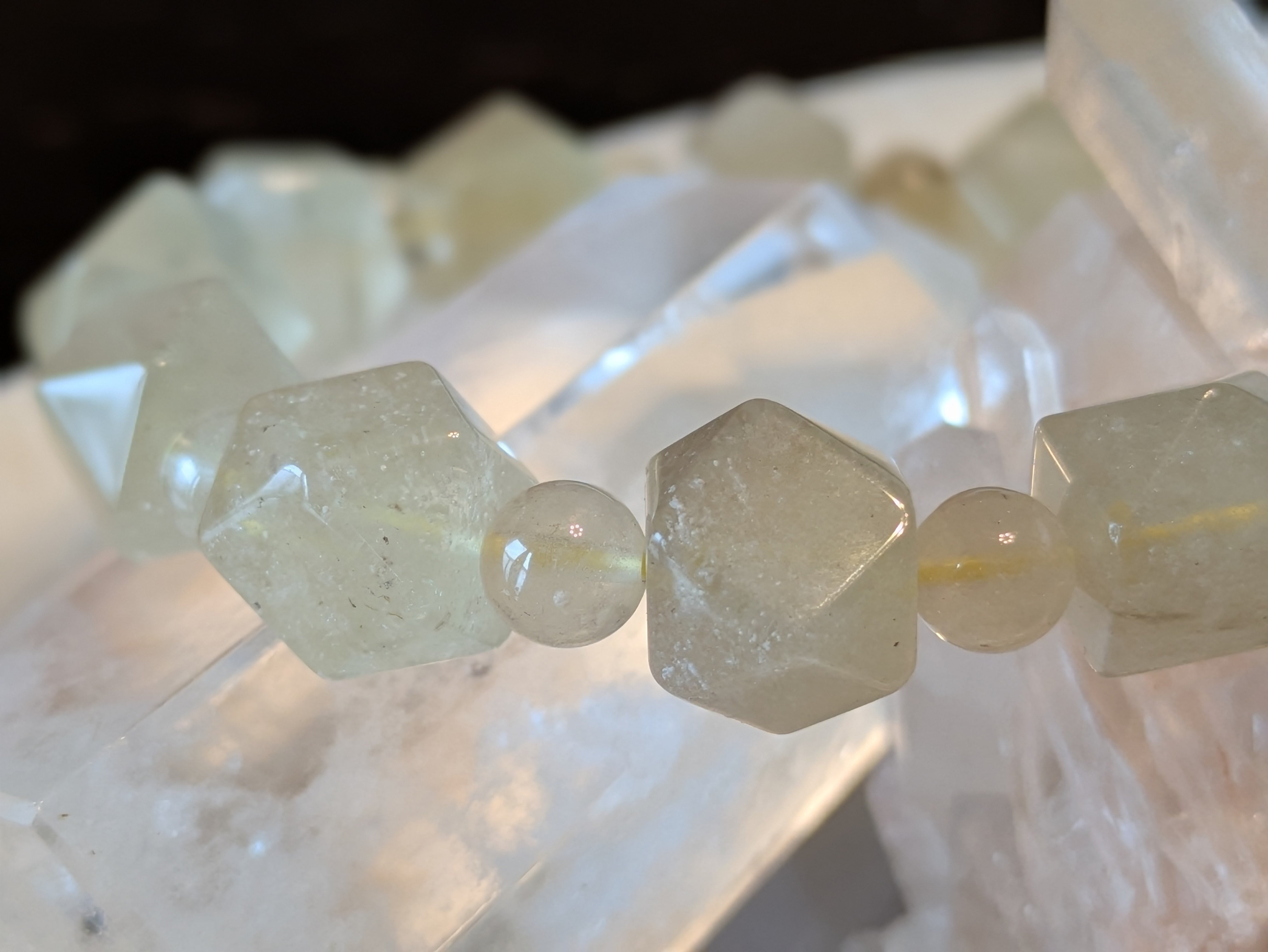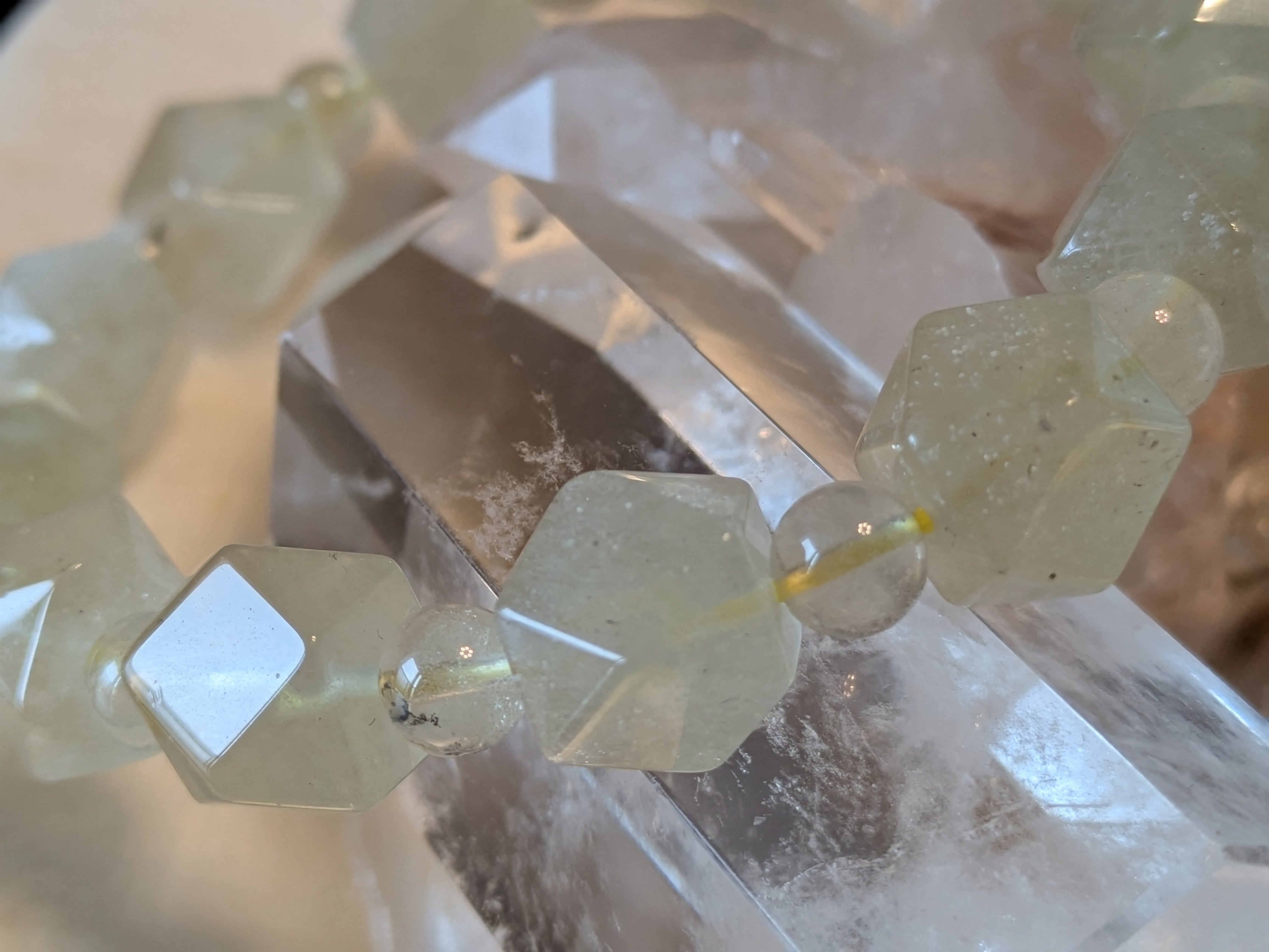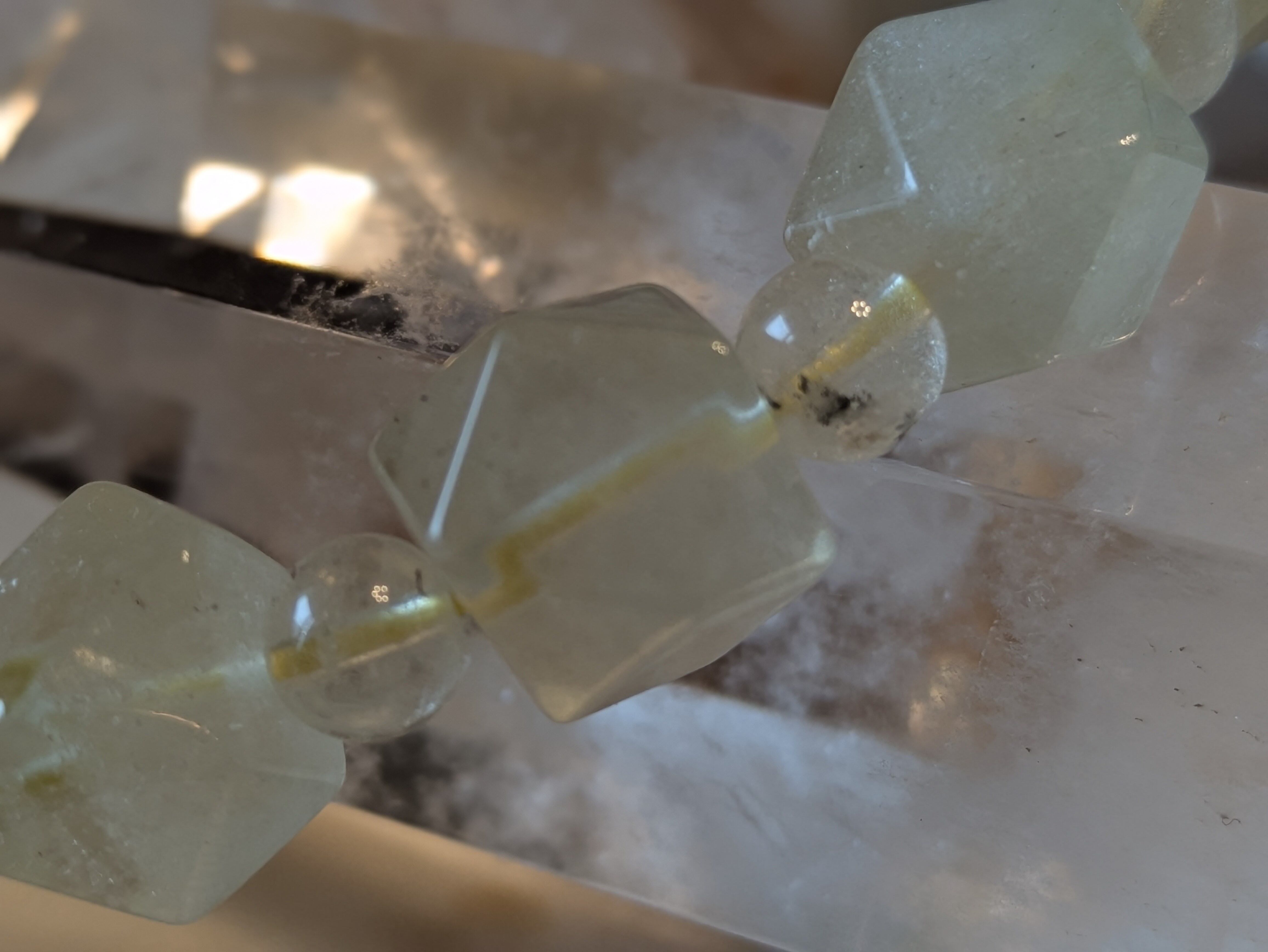 ■リビアングラス…この石は、自然が生み出した貴重な宝物であり、持つ人の内面を豊かにし、ポジティブな心をもたらします。美しい輝きが、周囲の人々に感動を与えることでしょう。