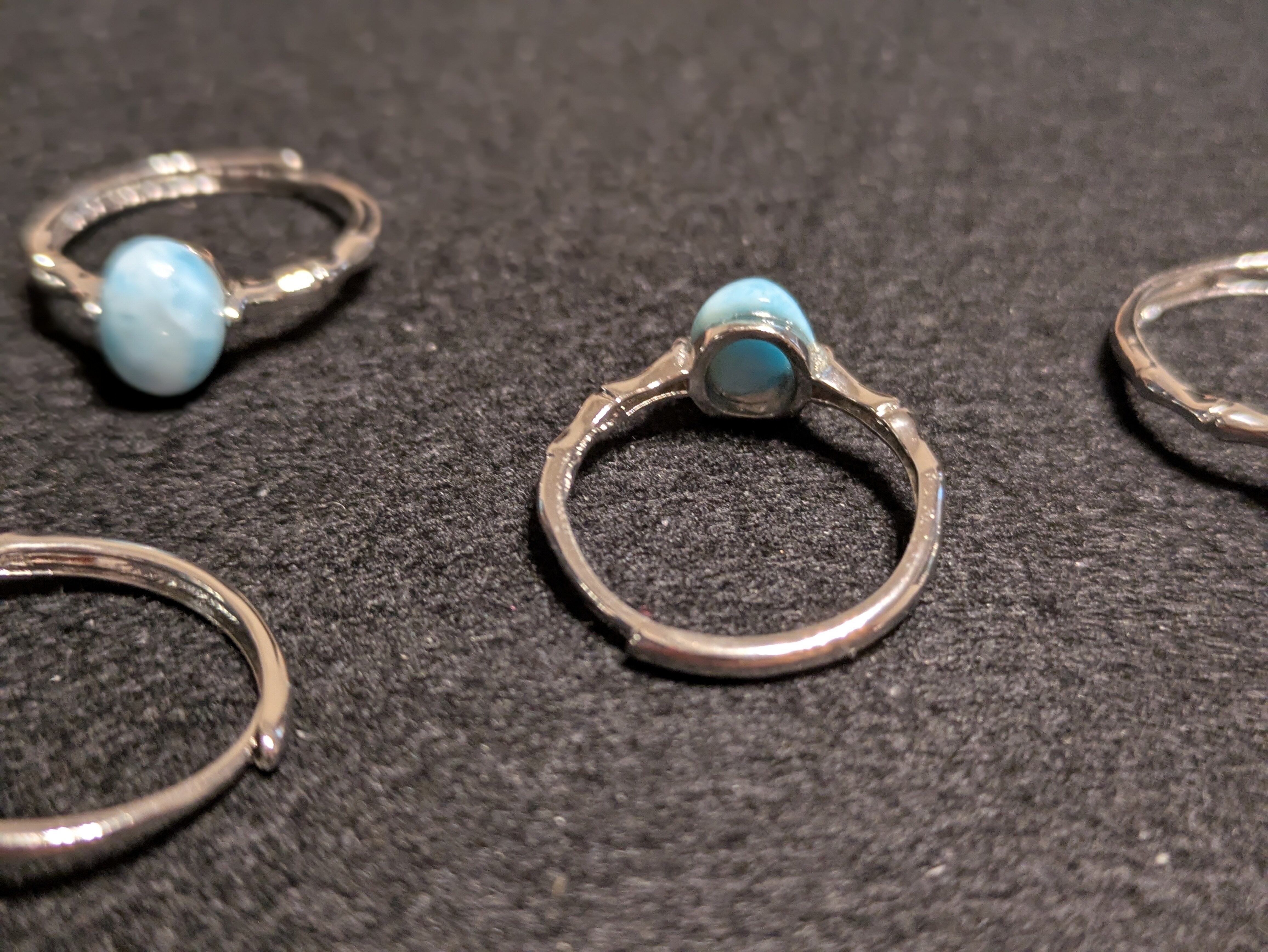 M12.ラリマーリング(1個の値段)リング細身タイプ・フリーサイズ