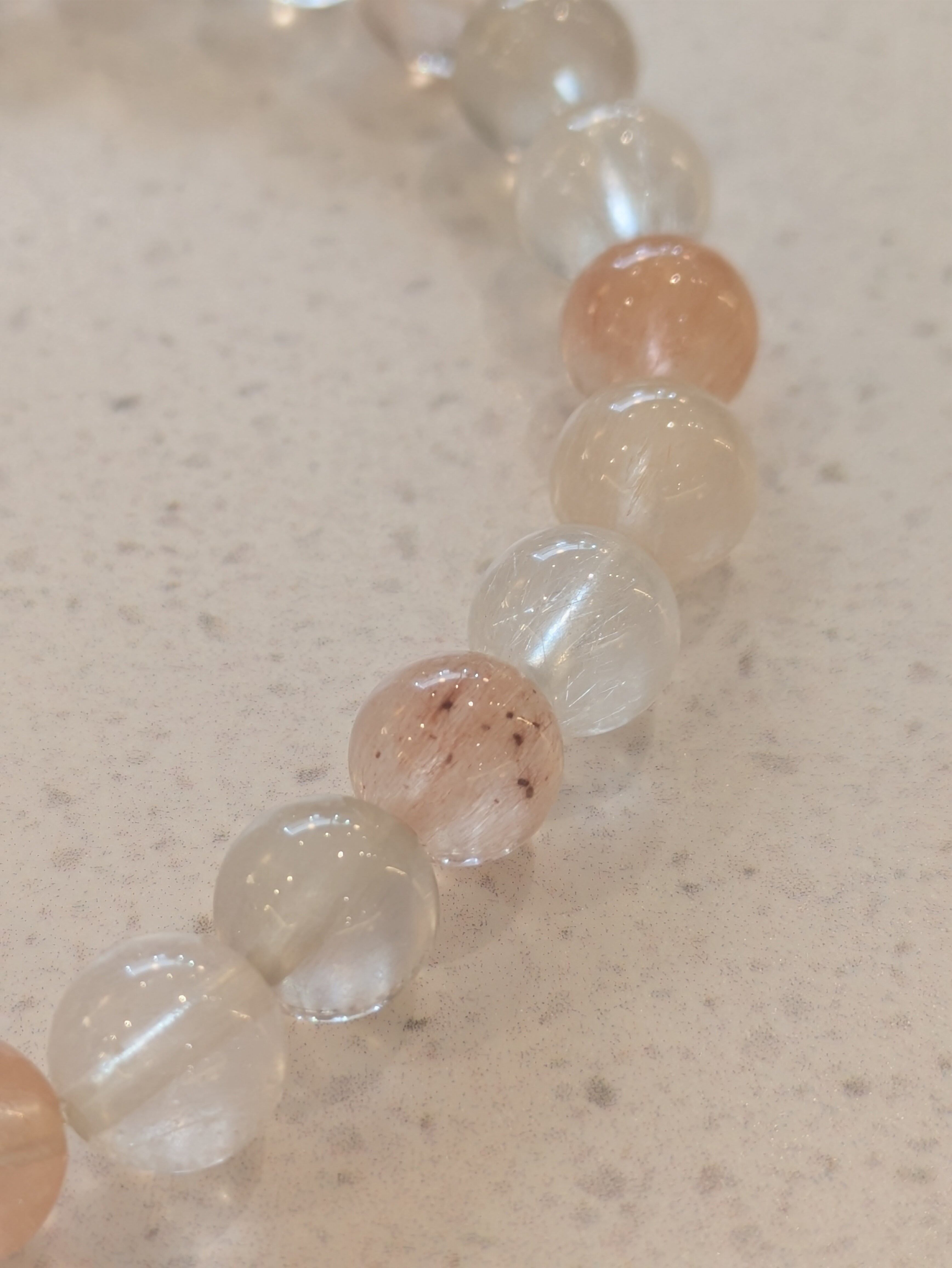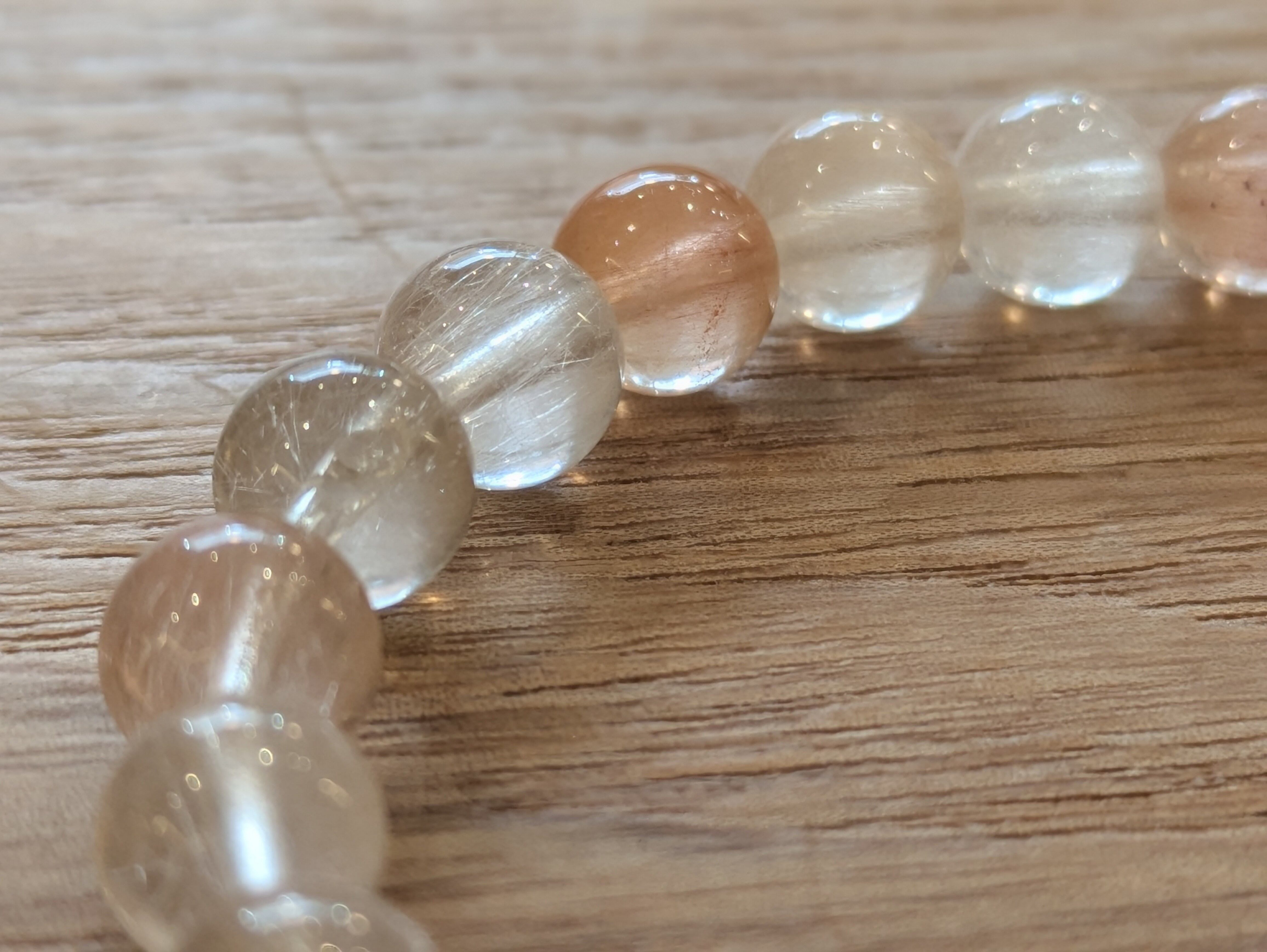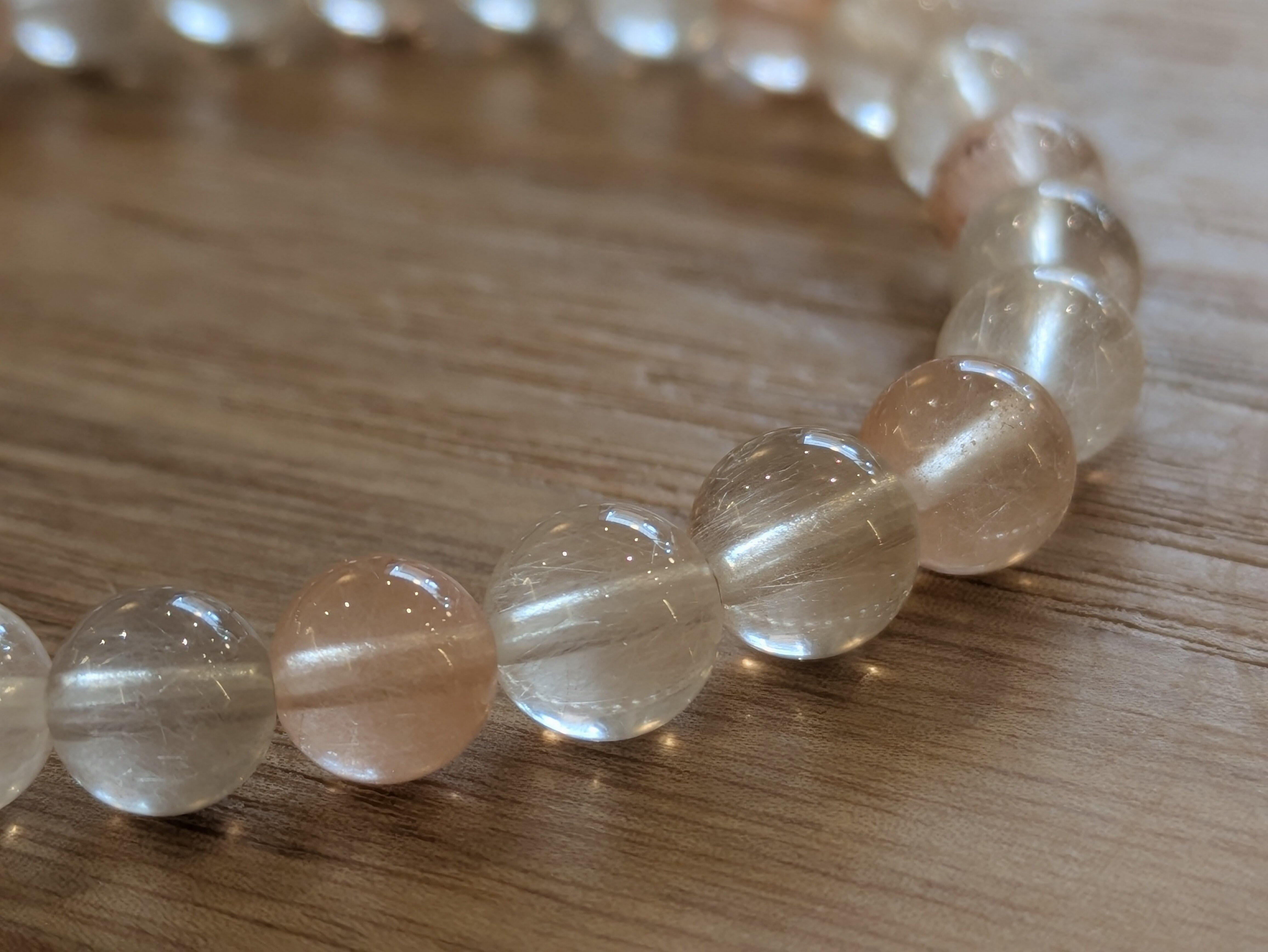 サゲニティッククォーツ(ラビットヘアー)は、個性的なラビットヘアーという美しいルチルを持つ天然石です。このブレスレットは、持つ人に特別なエネルギーをもたらし、心と体の調和を図る助けをしてくれます。