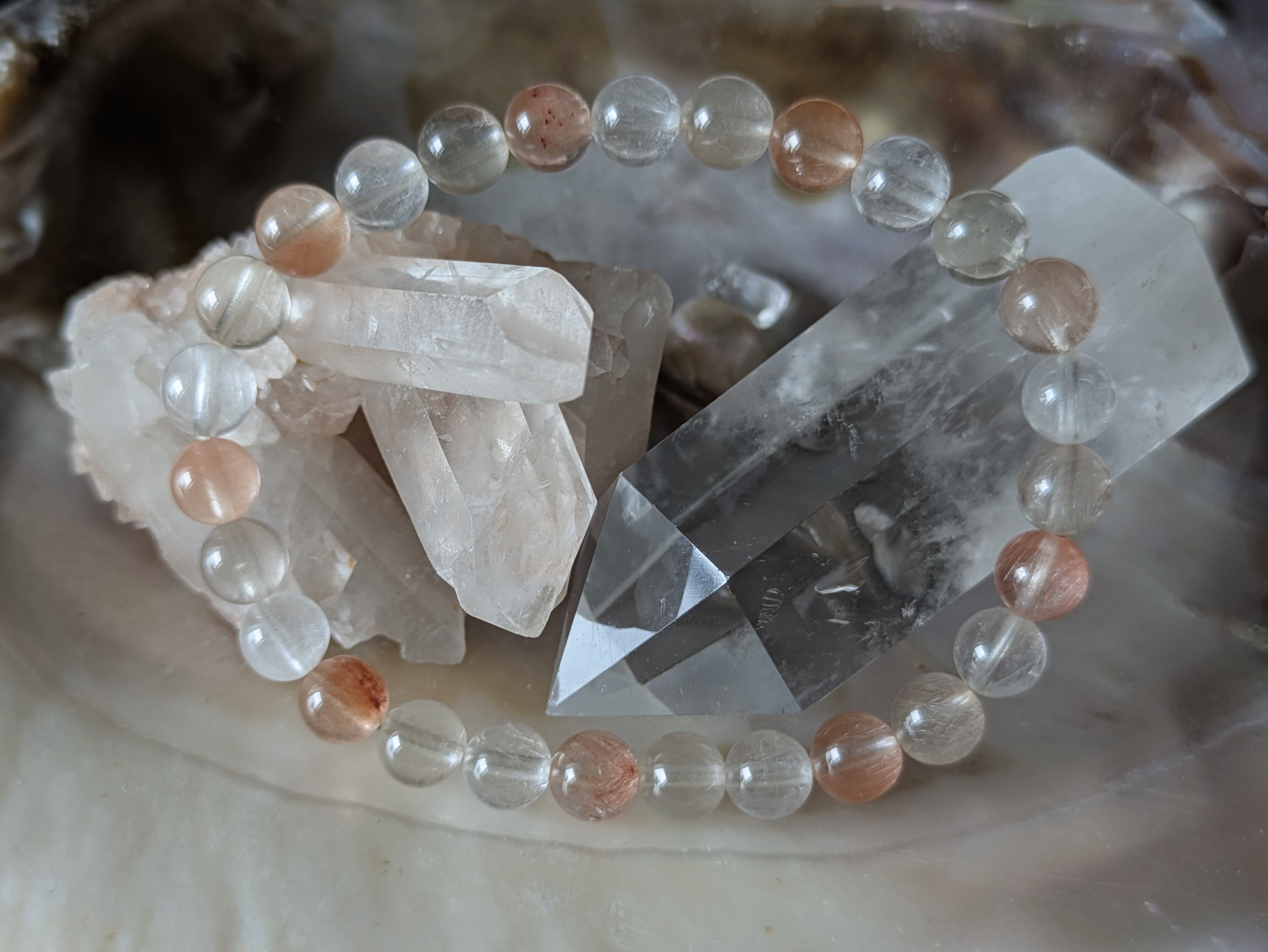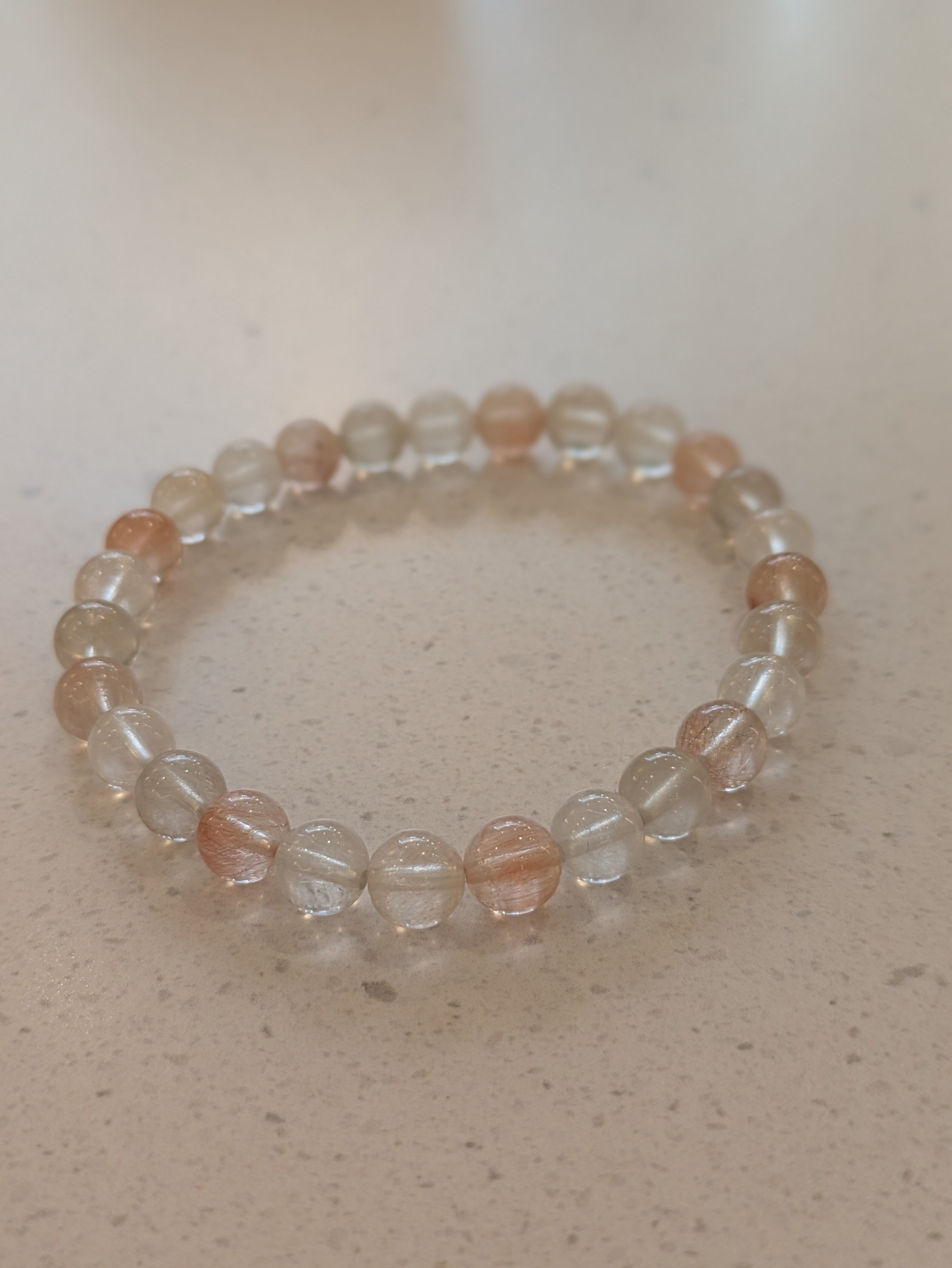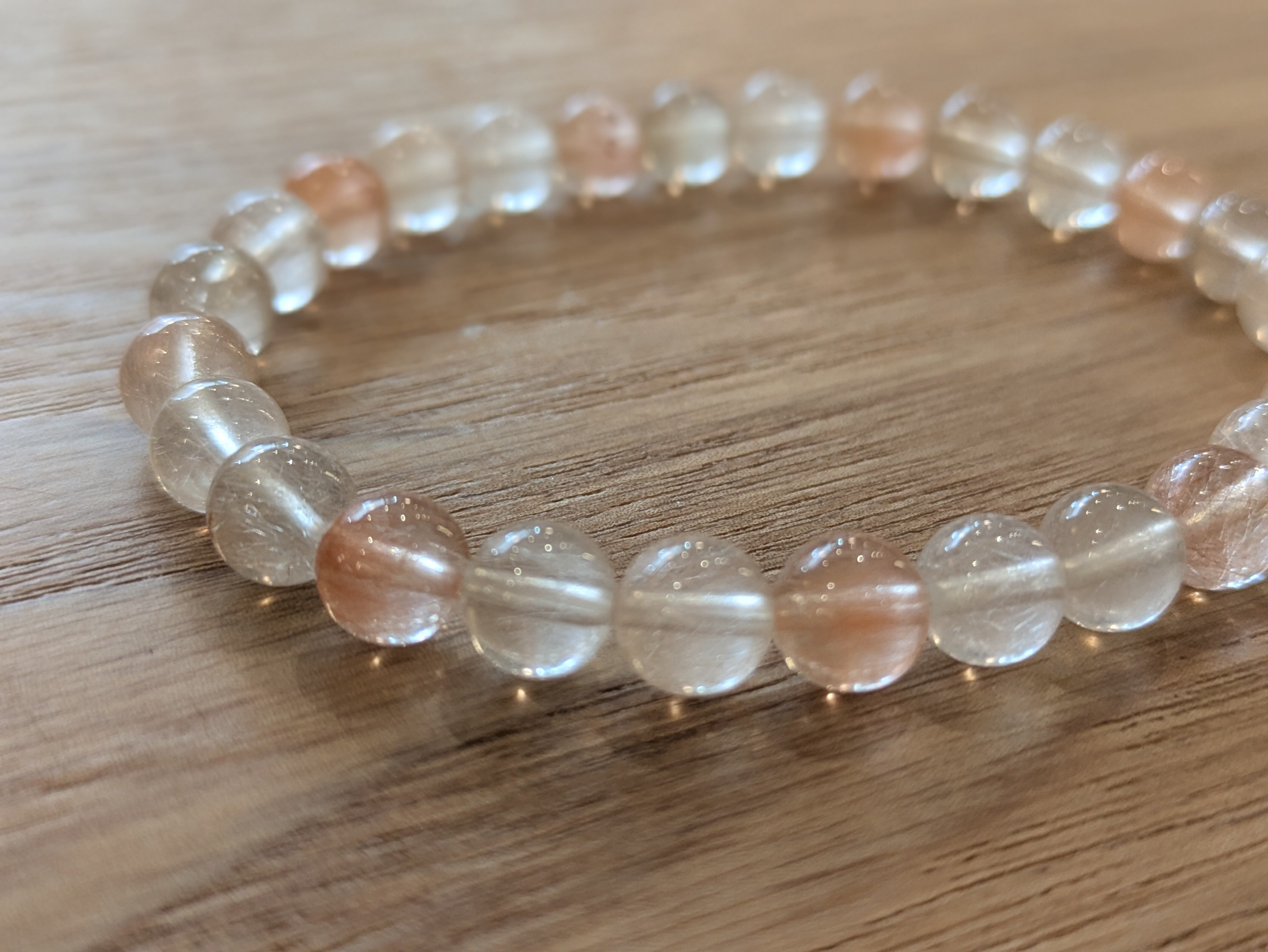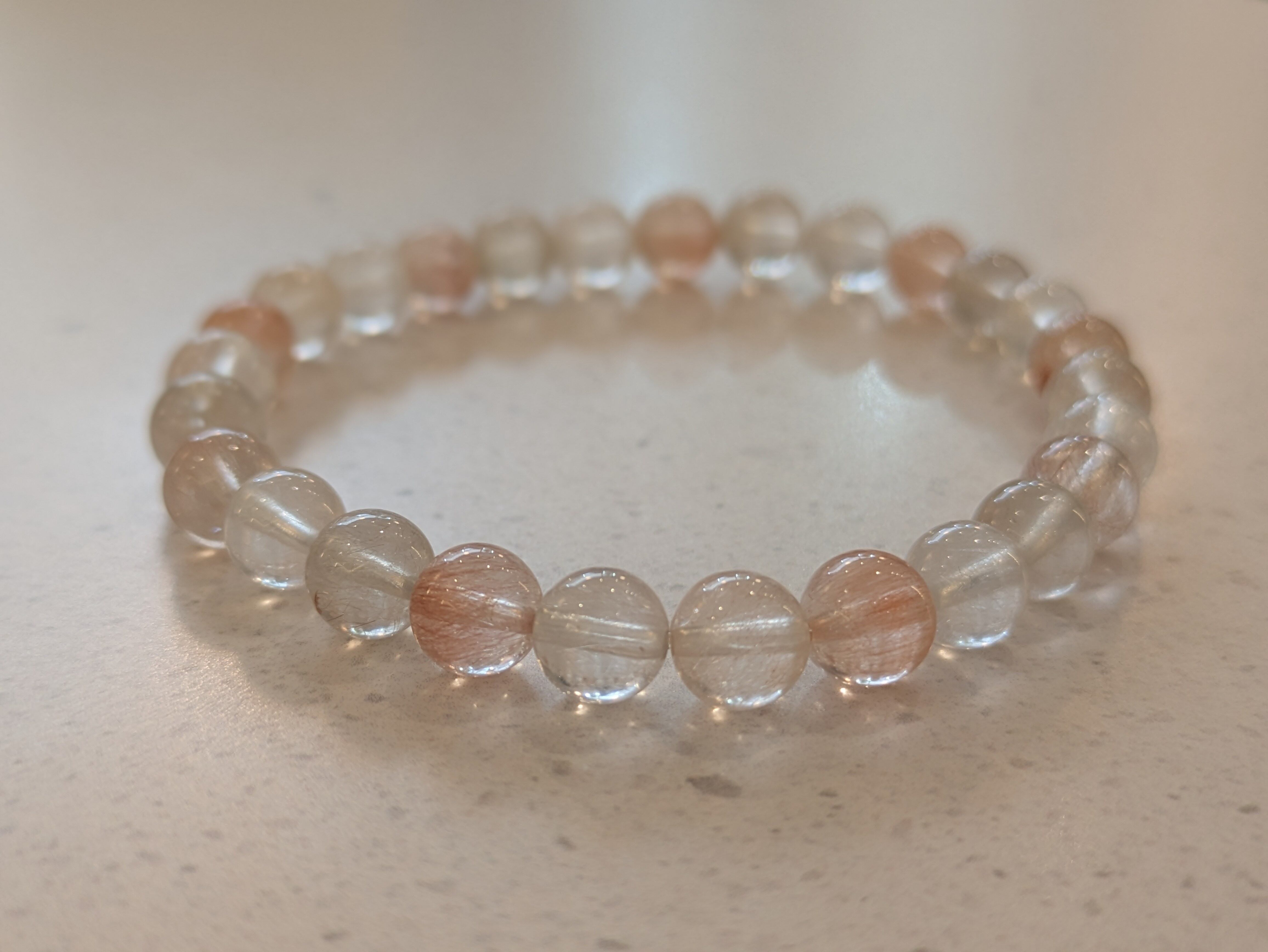 サゲニティッククォーツ(ラビットヘアー)は、個性的なラビットヘアーという美しいルチルを持つ天然石です。このブレスレットは、持つ人に特別なエネルギーをもたらし、心と体の調和を図る助けをしてくれます。