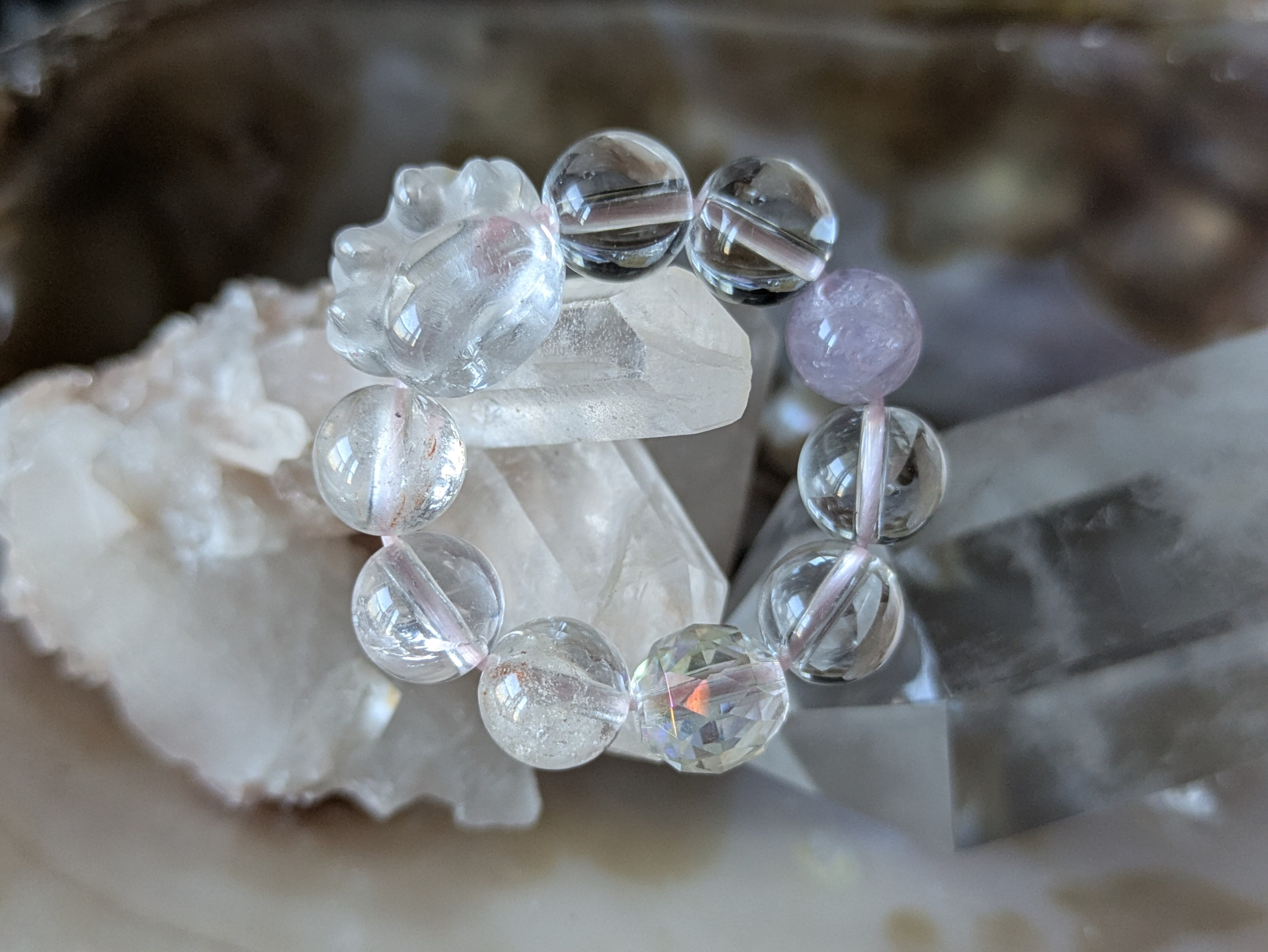 ■素材: アイリスローズクォーツ、オーラクォーツ、スコロライト、肉球水晶(天然石) 水晶(天然石)
