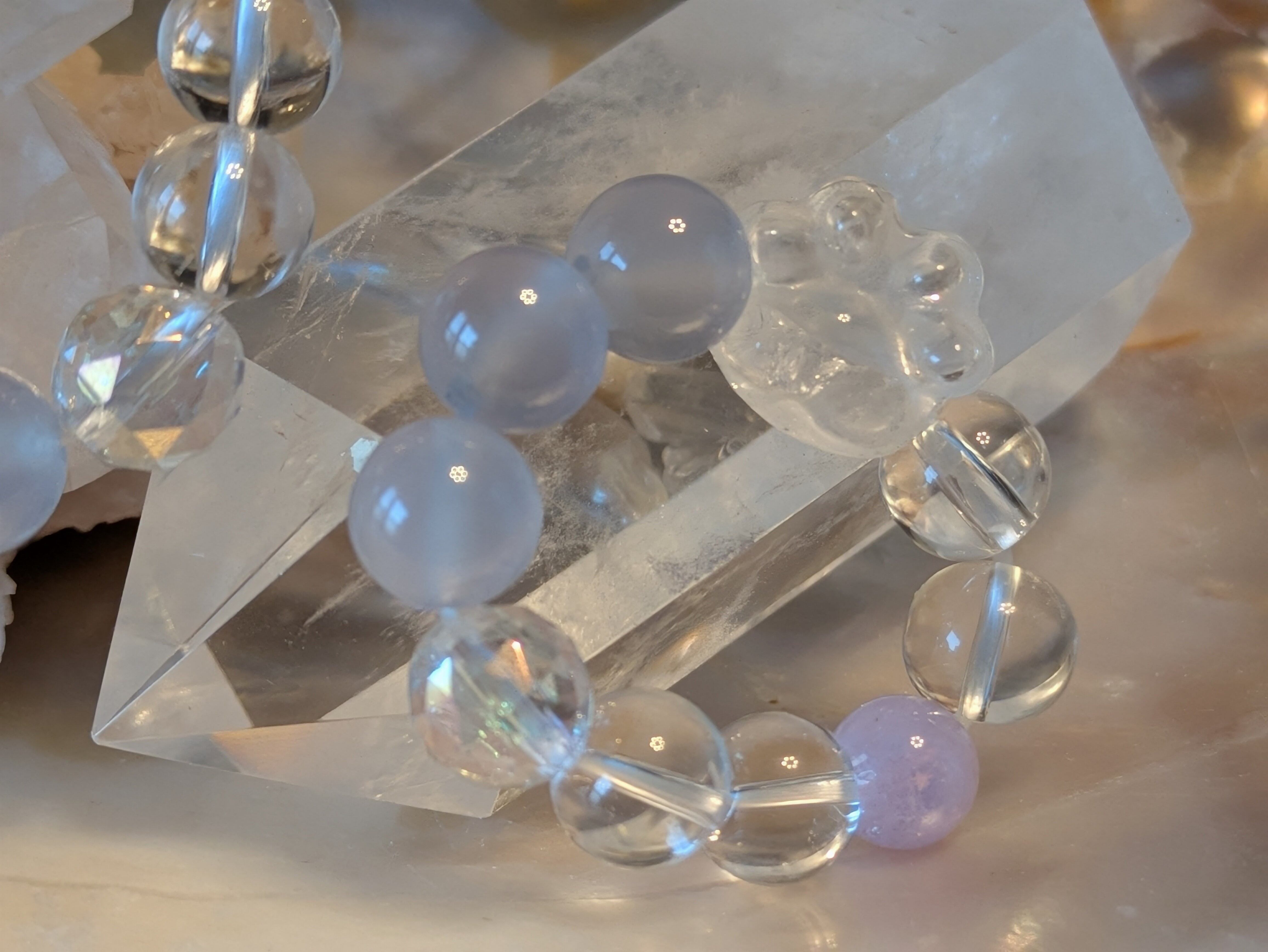 ■素材: オーラクォーツ、猫水晶(天然石)、カルセドニー、スコロライト、人工水晶