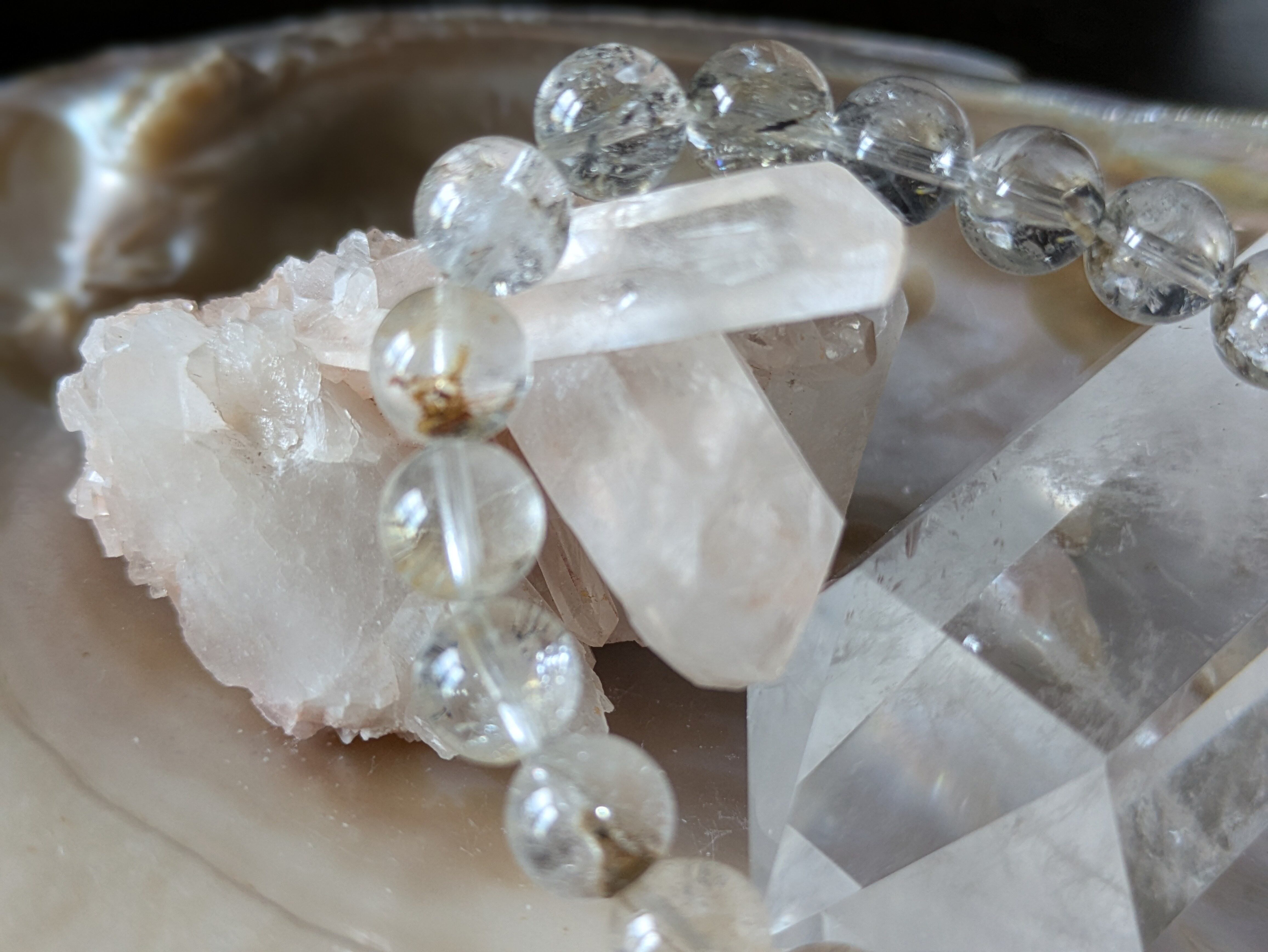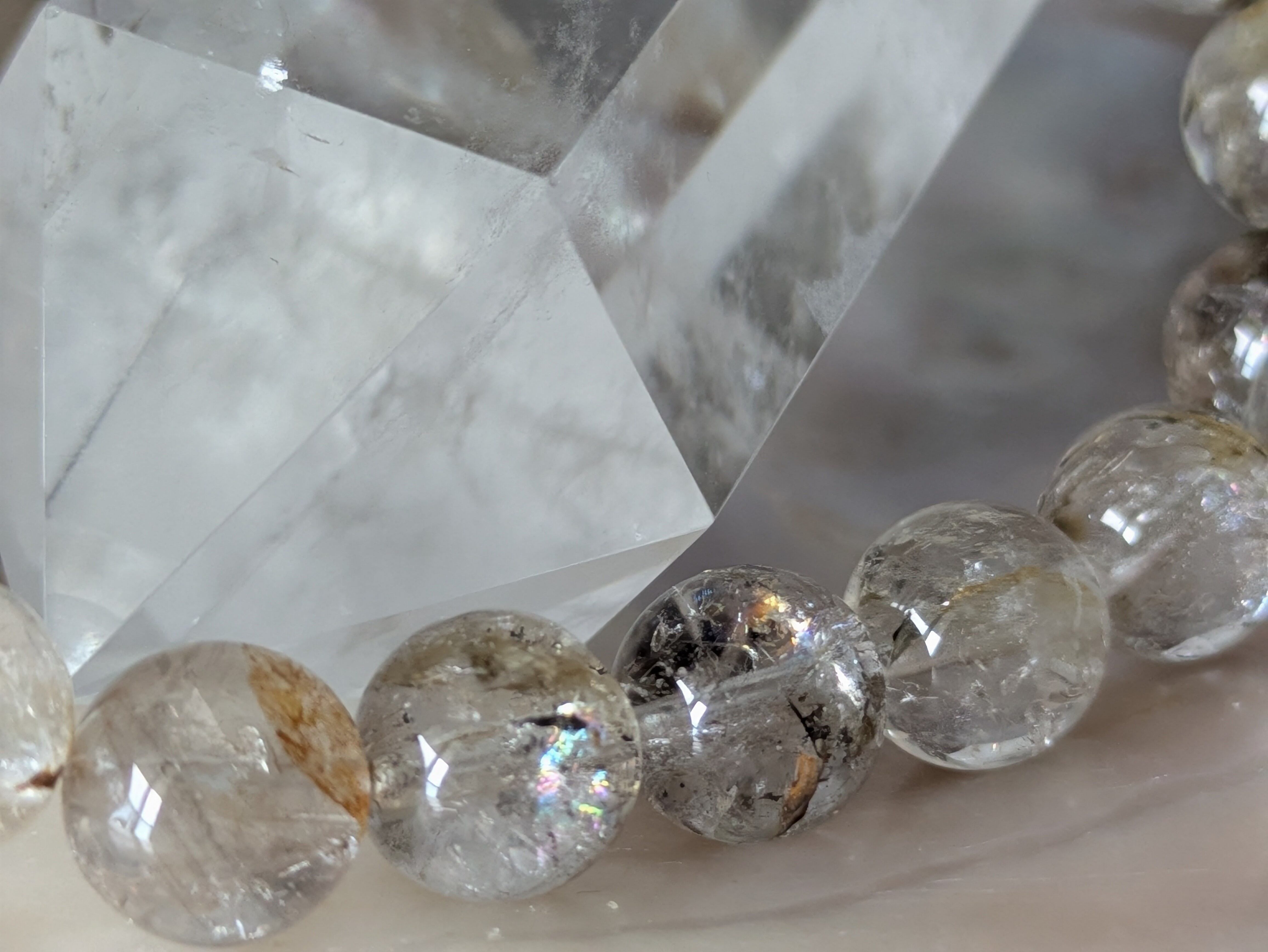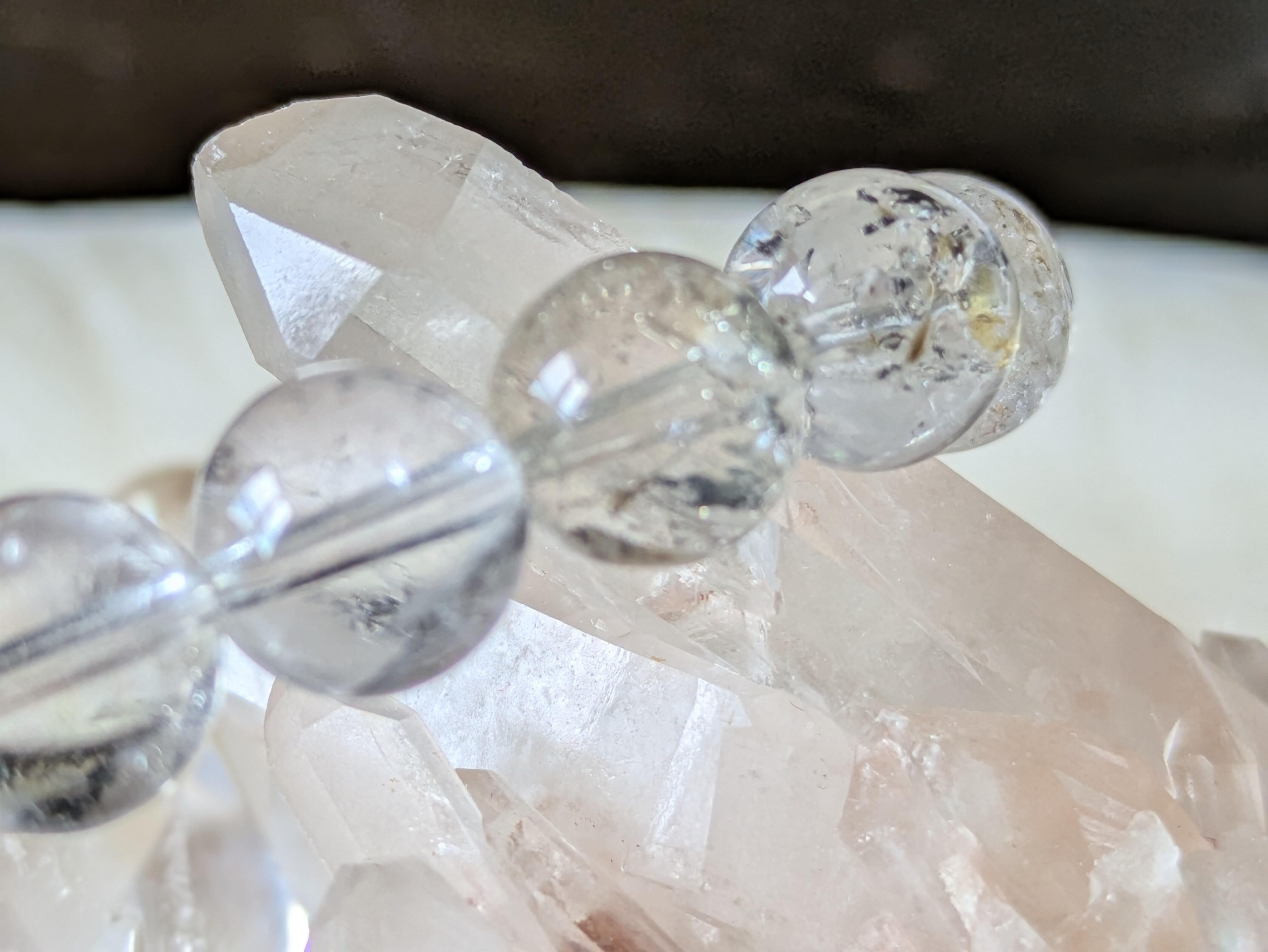 ■エレスチャルクォーツ…この石は、持つ人に深遠なエネルギーを伝え、内面的な成長を助けます。一つ一つ異なる質感や模様があり、見る人を魅了します。
