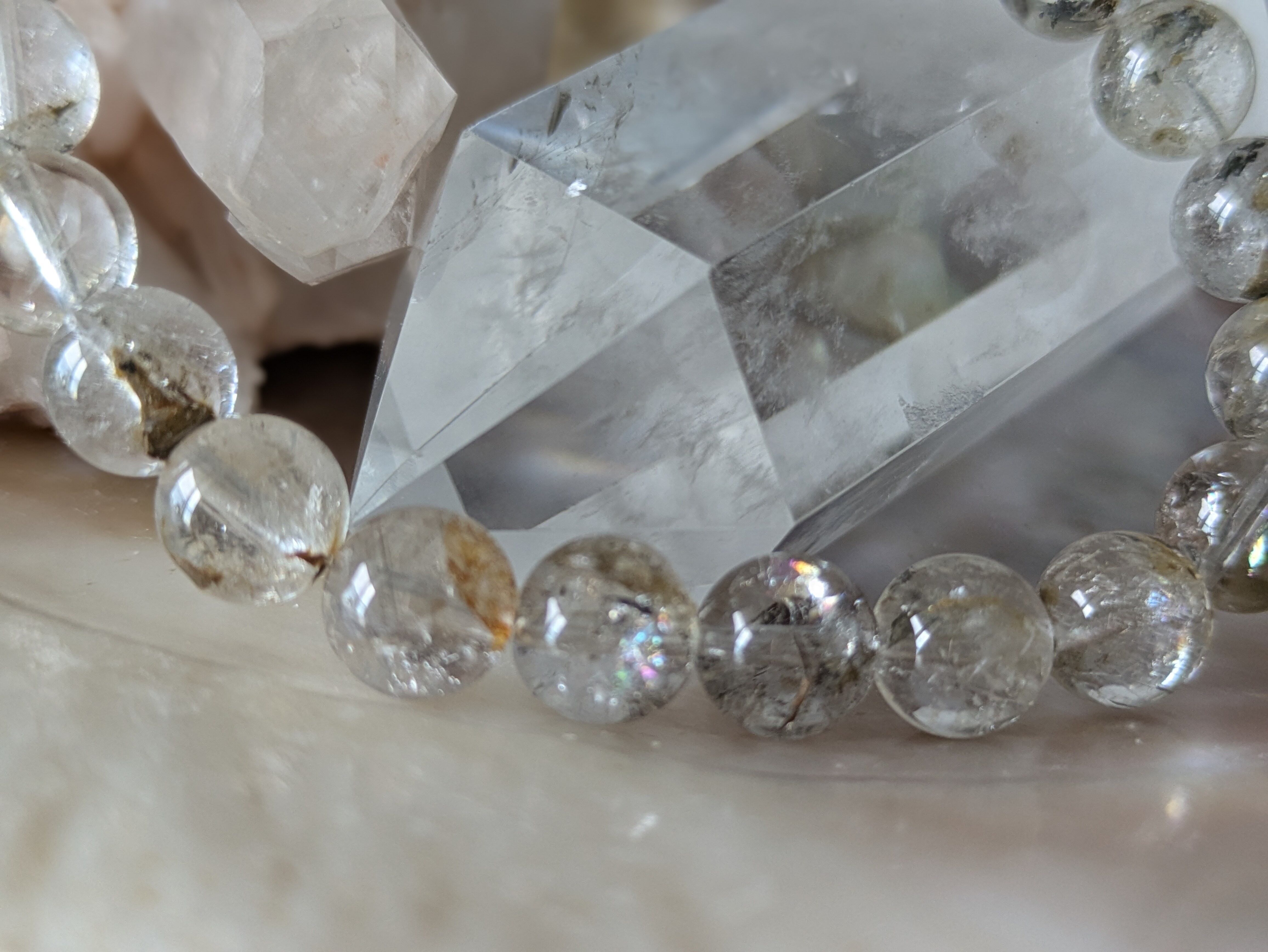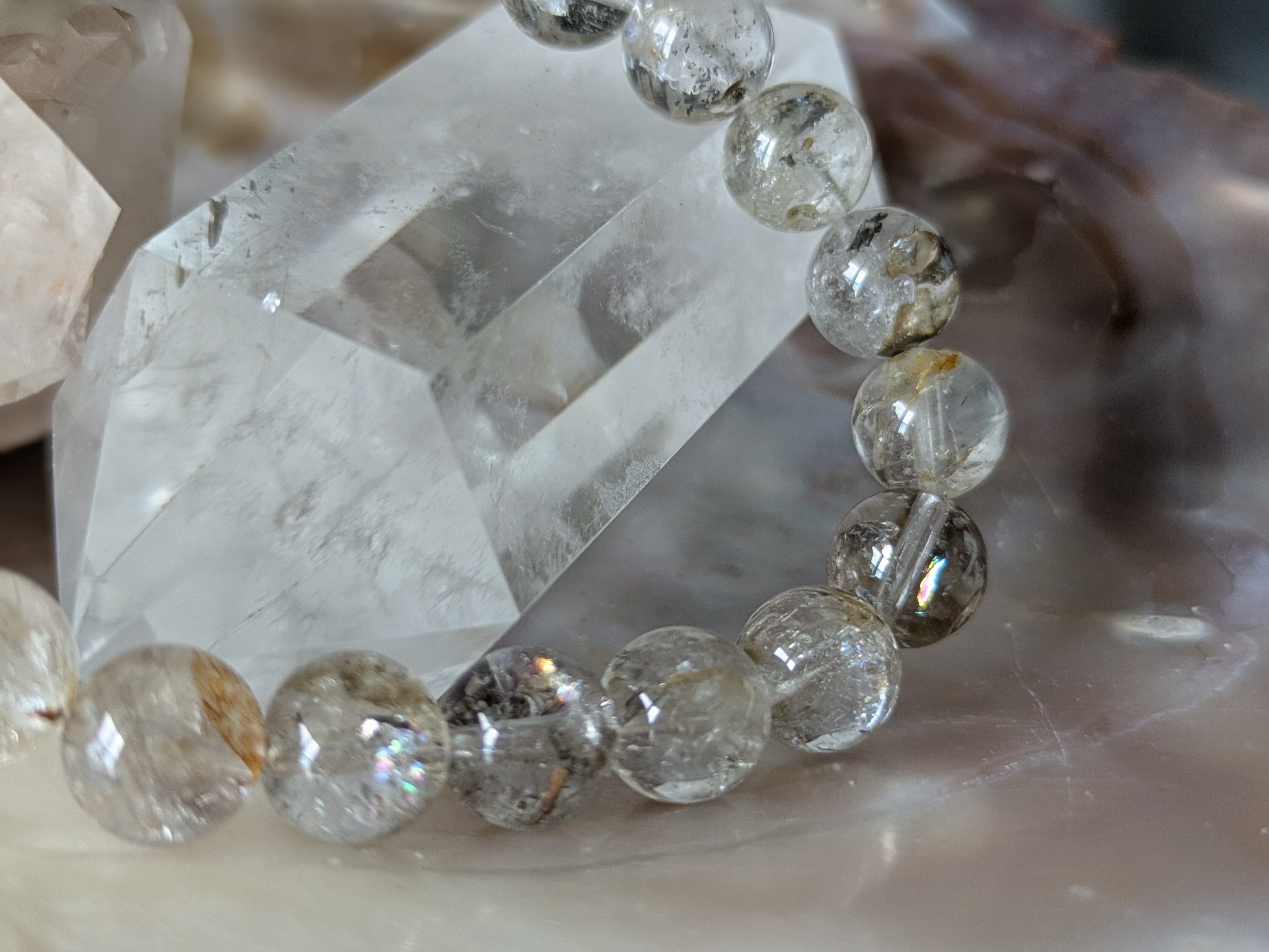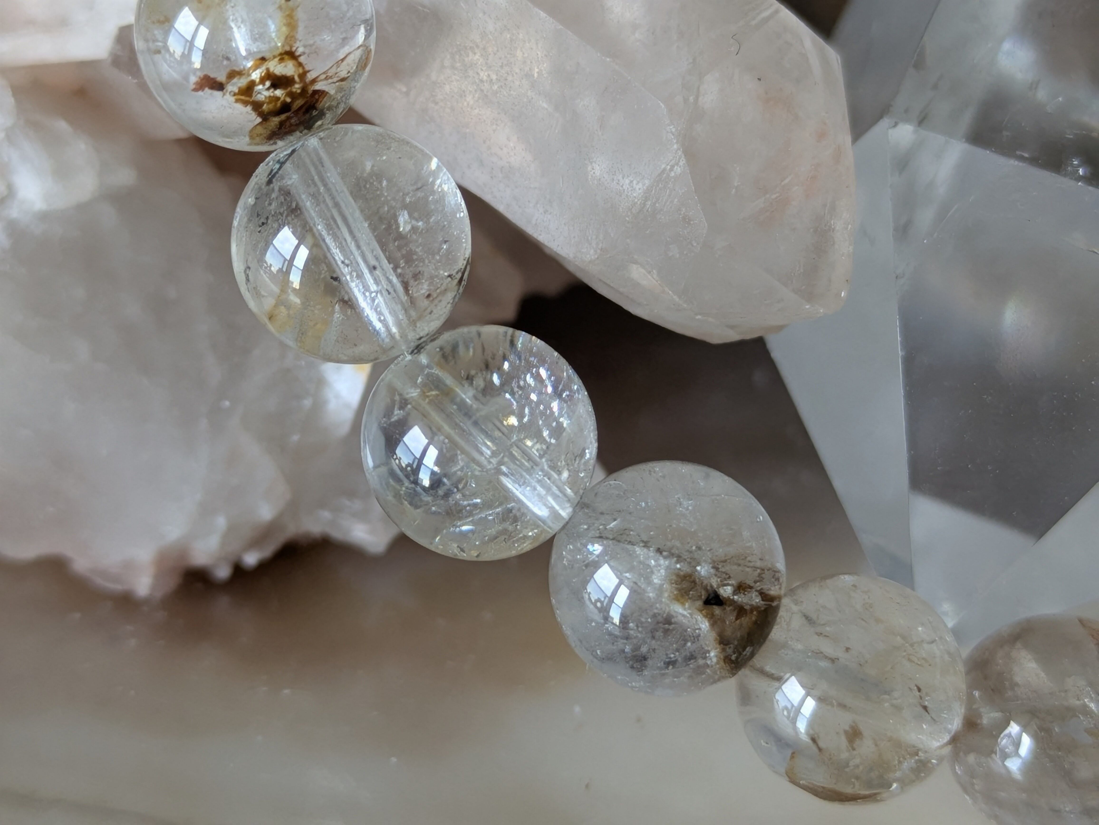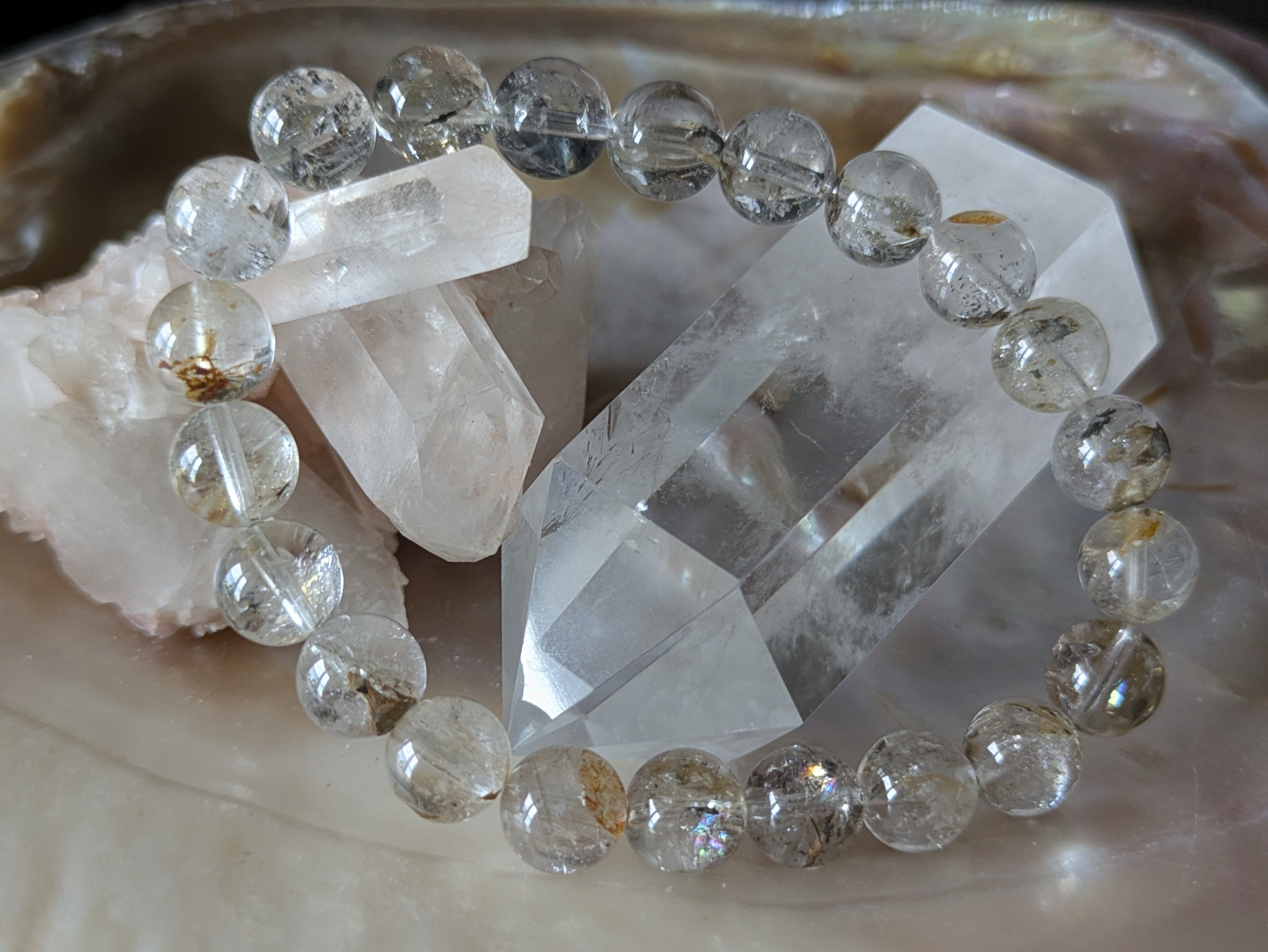 ■エレスチャルクォーツ…この石は、持つ人に深遠なエネルギーを伝え、内面的な成長を助けます。一つ一つ異なる質感や模様があり、見る人を魅了します。