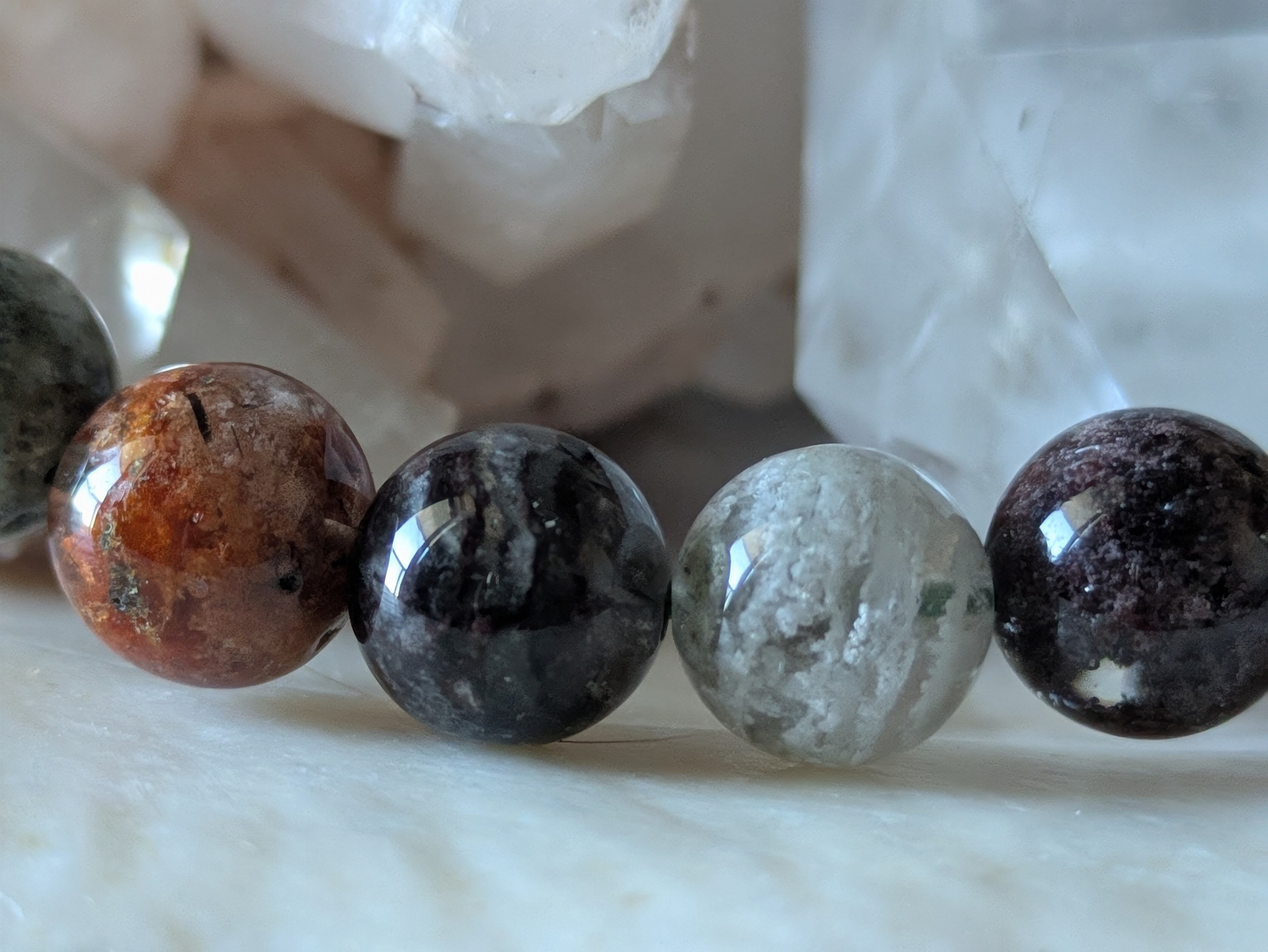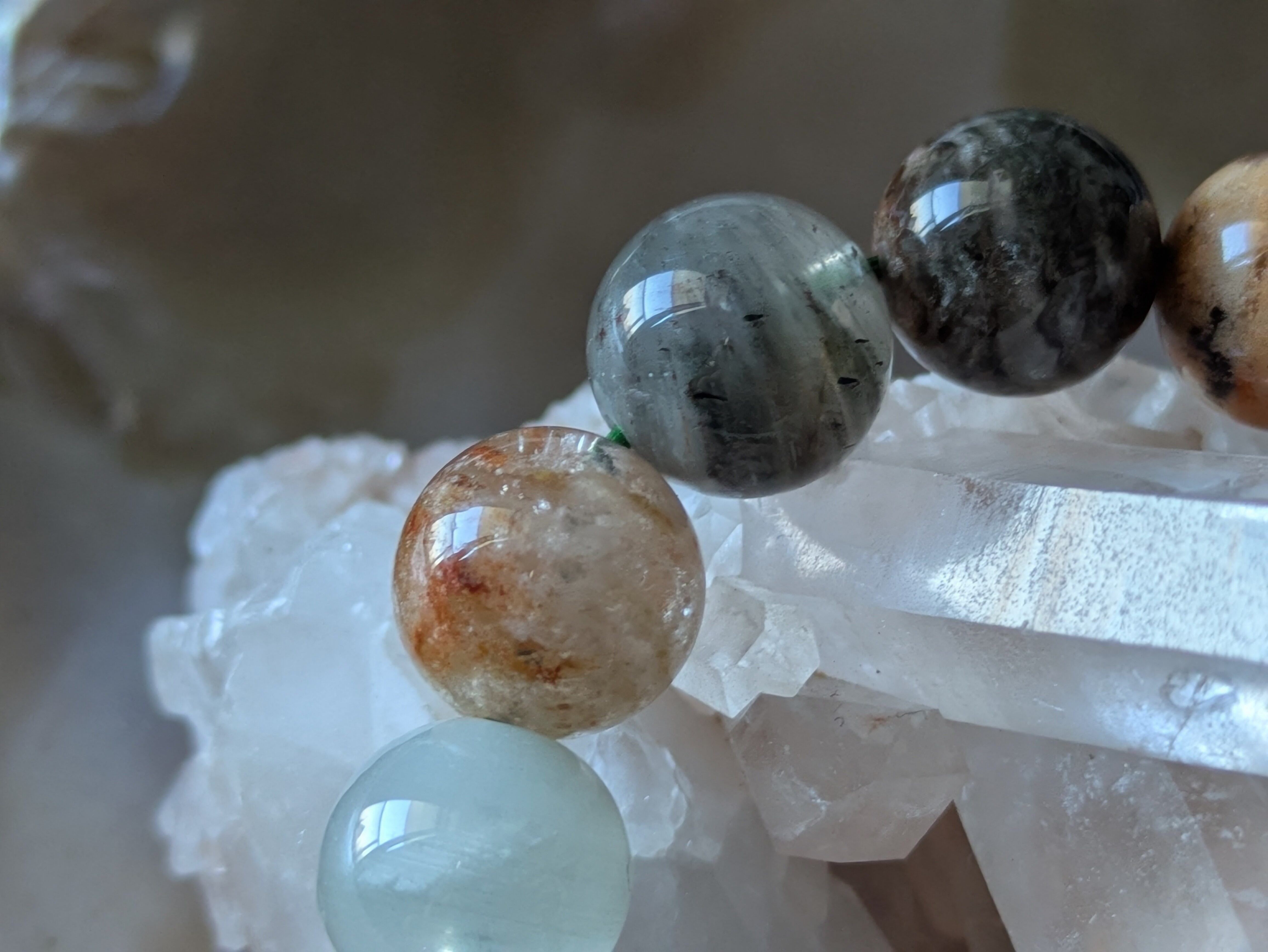 マルチガーデンクォーツは、その独自の色合いと美しい模様が特徴で、大切な人へのプレゼントとしても喜ばれます。毎日身に着けることで、心地よいエネルギーを感じることができるでしょう。