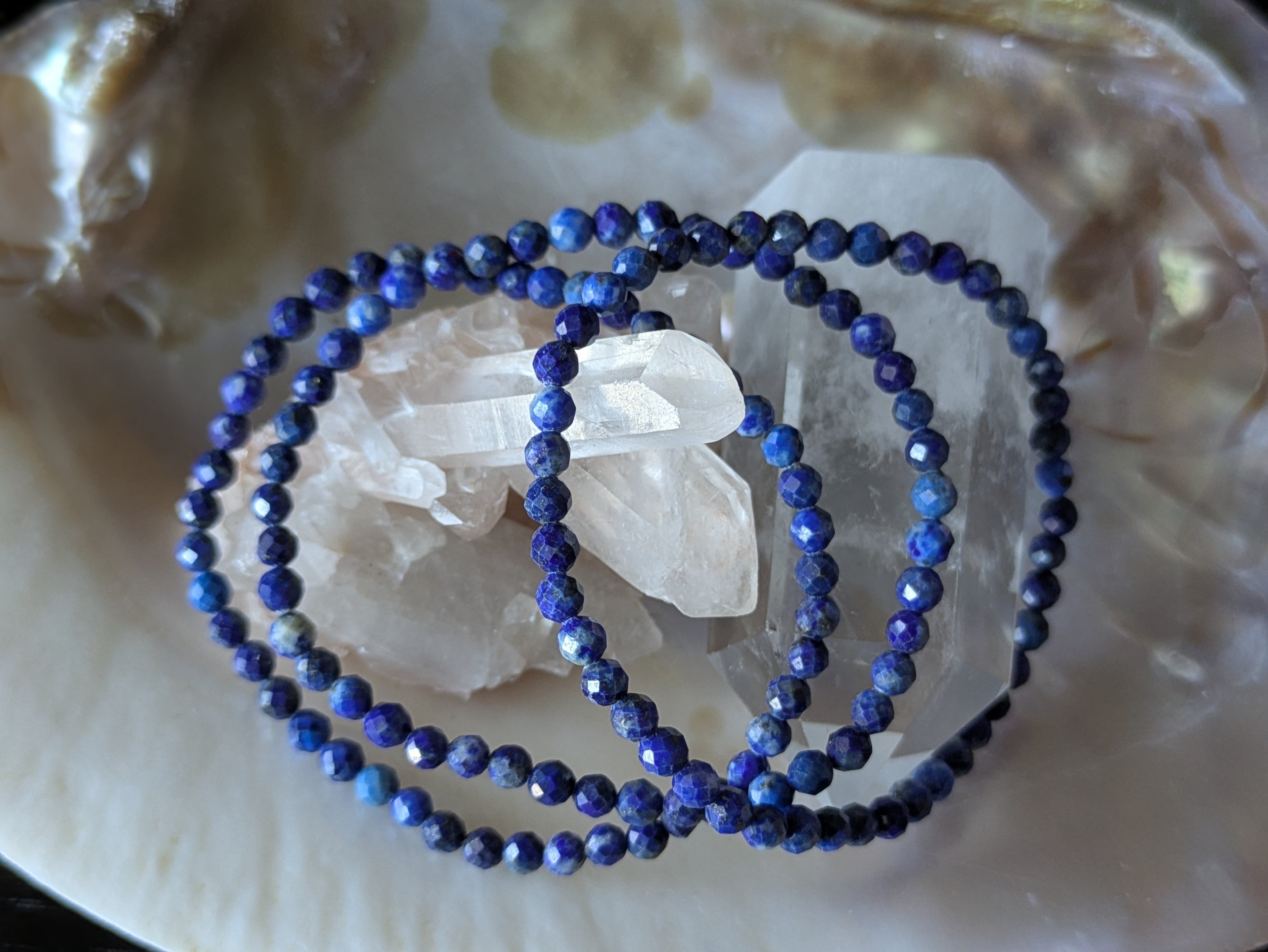 ■深い青色が特徴的なラピスラズリは、持つ人に力強いエネルギーと知恵をもたらすとされ、心の平和を保つサポートをしてくれます。