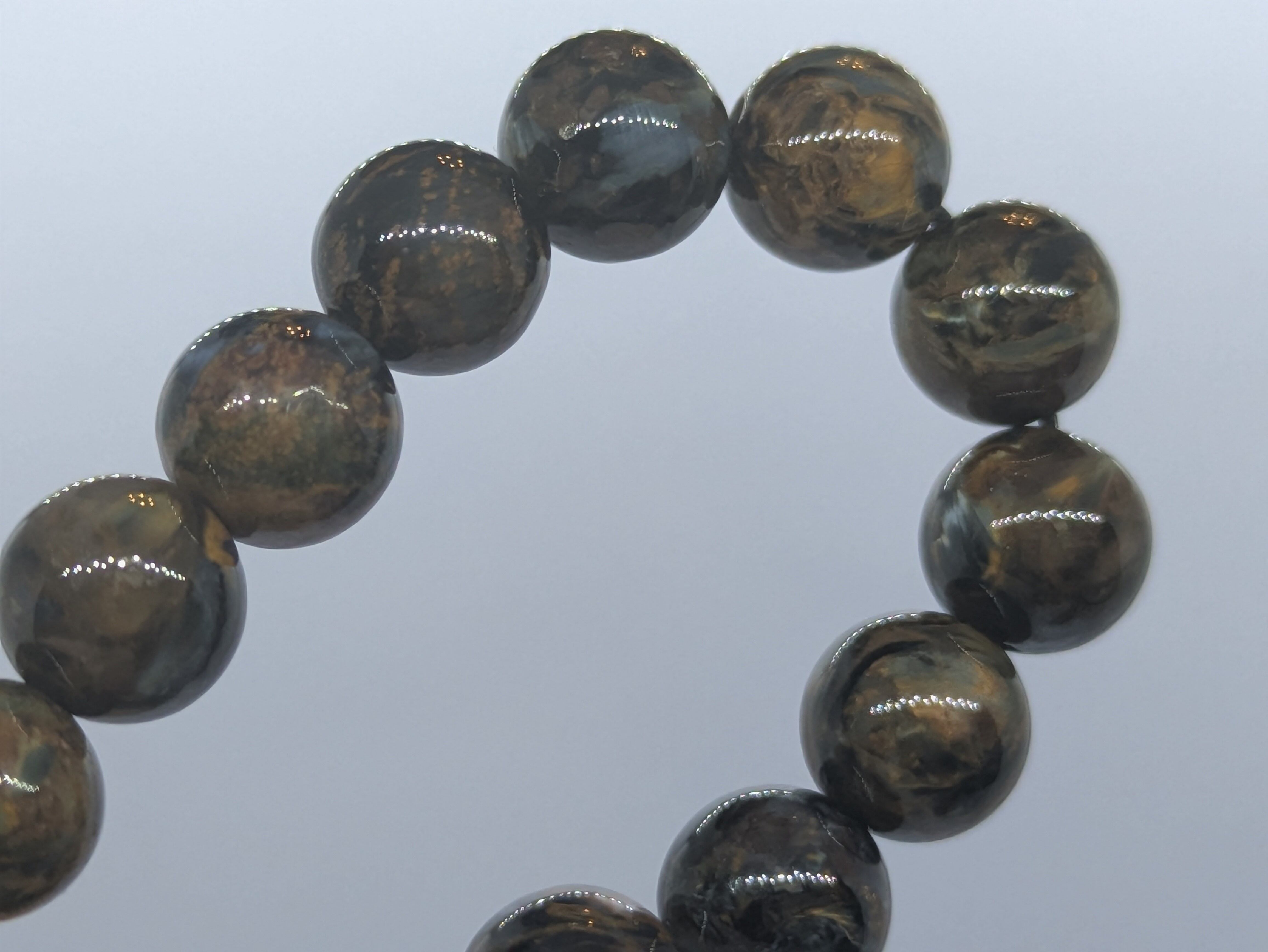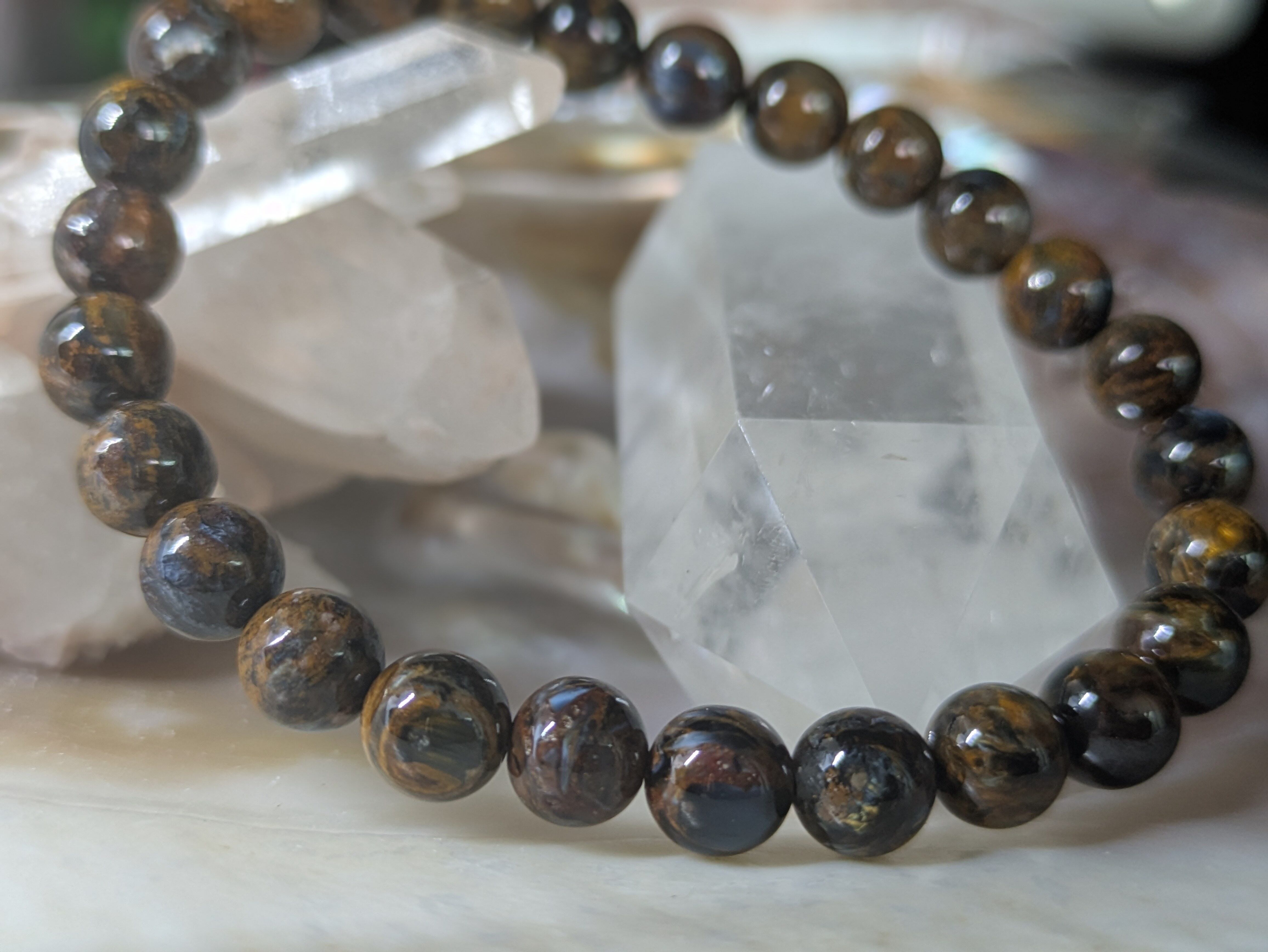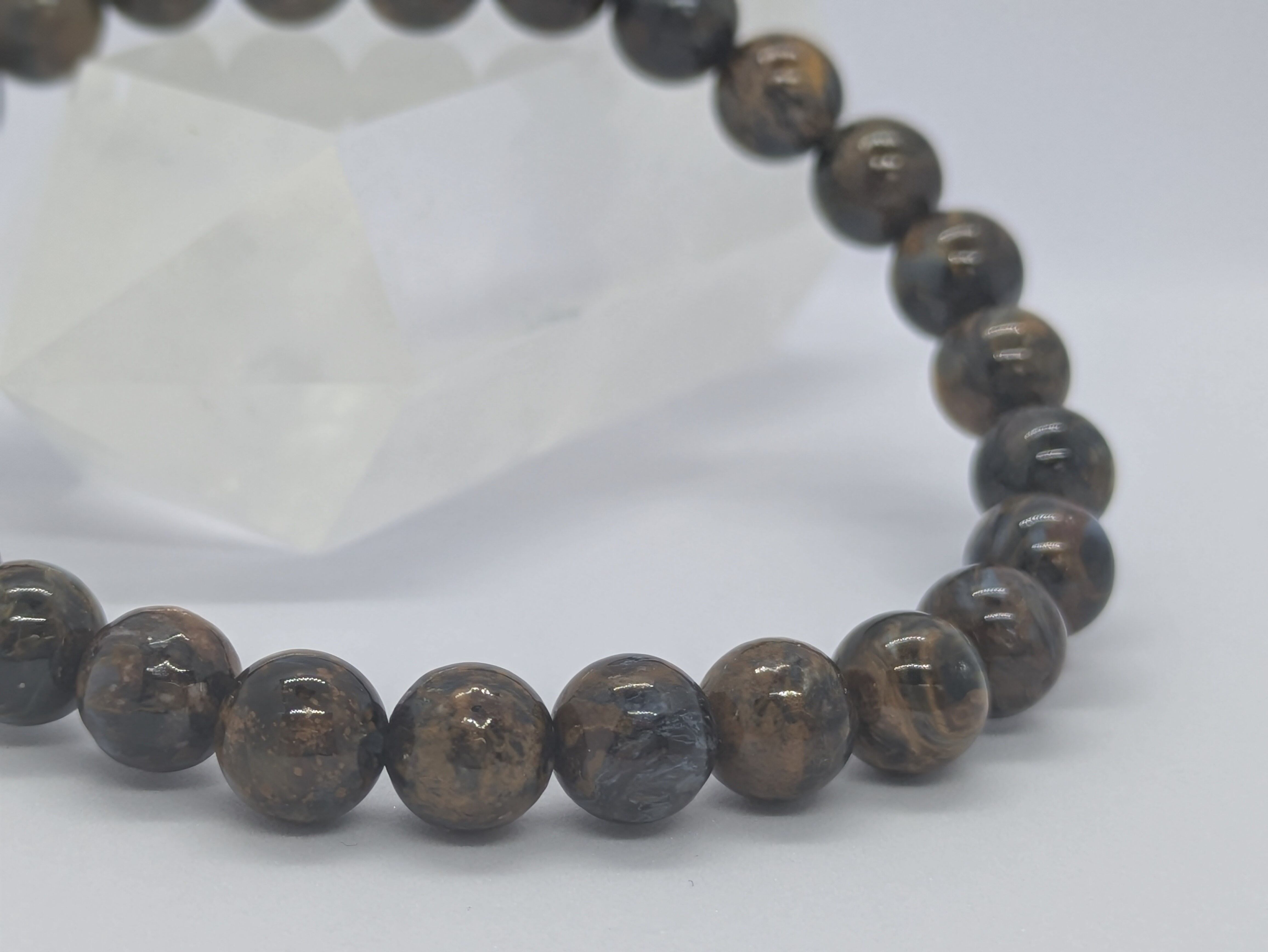 このブレスレットは、ナミビア産のブラウンピーターサイトを使用しており、まるで大地のエネルギーを感じさせるような温かみのある色合いが特徴です。