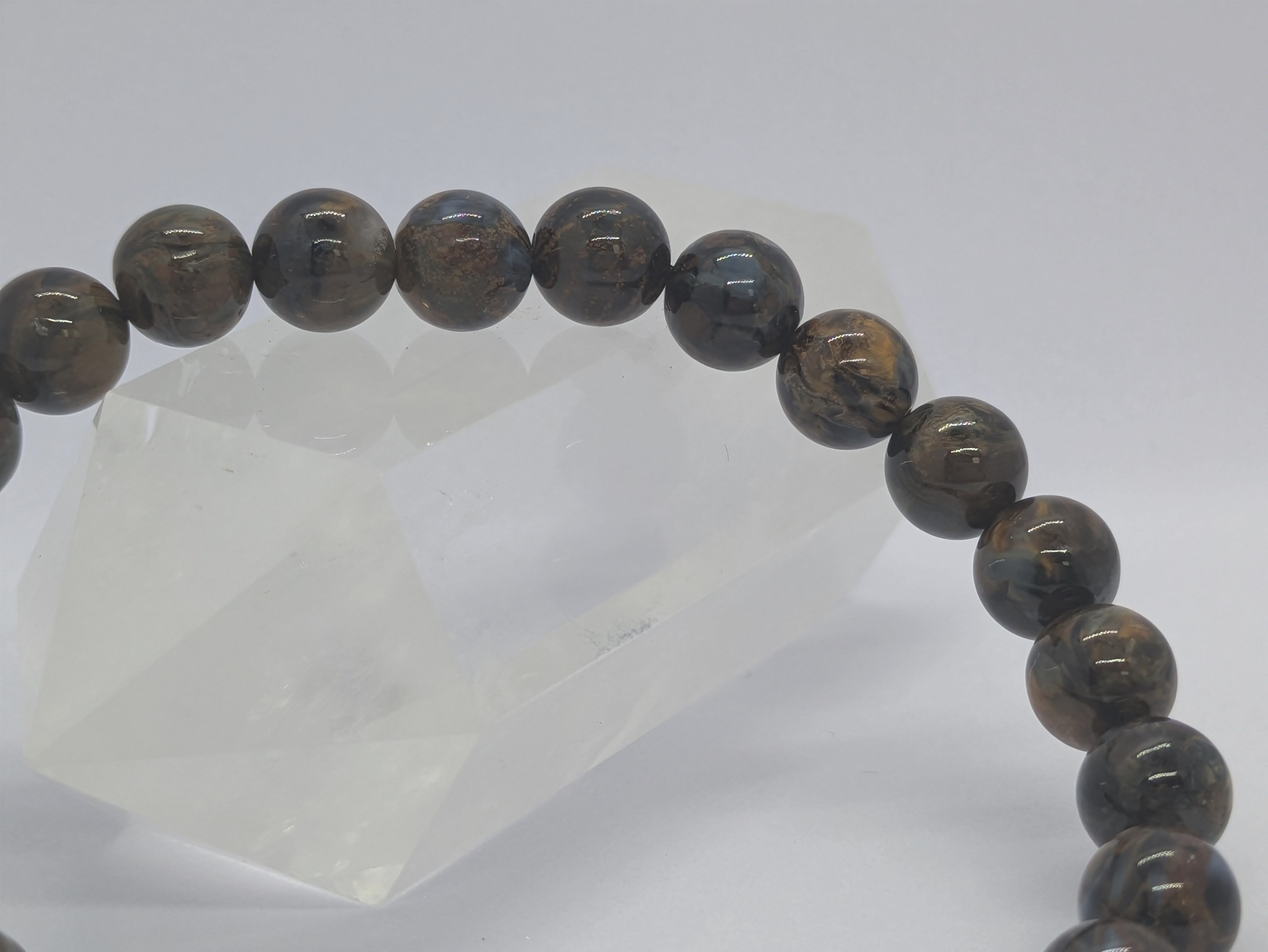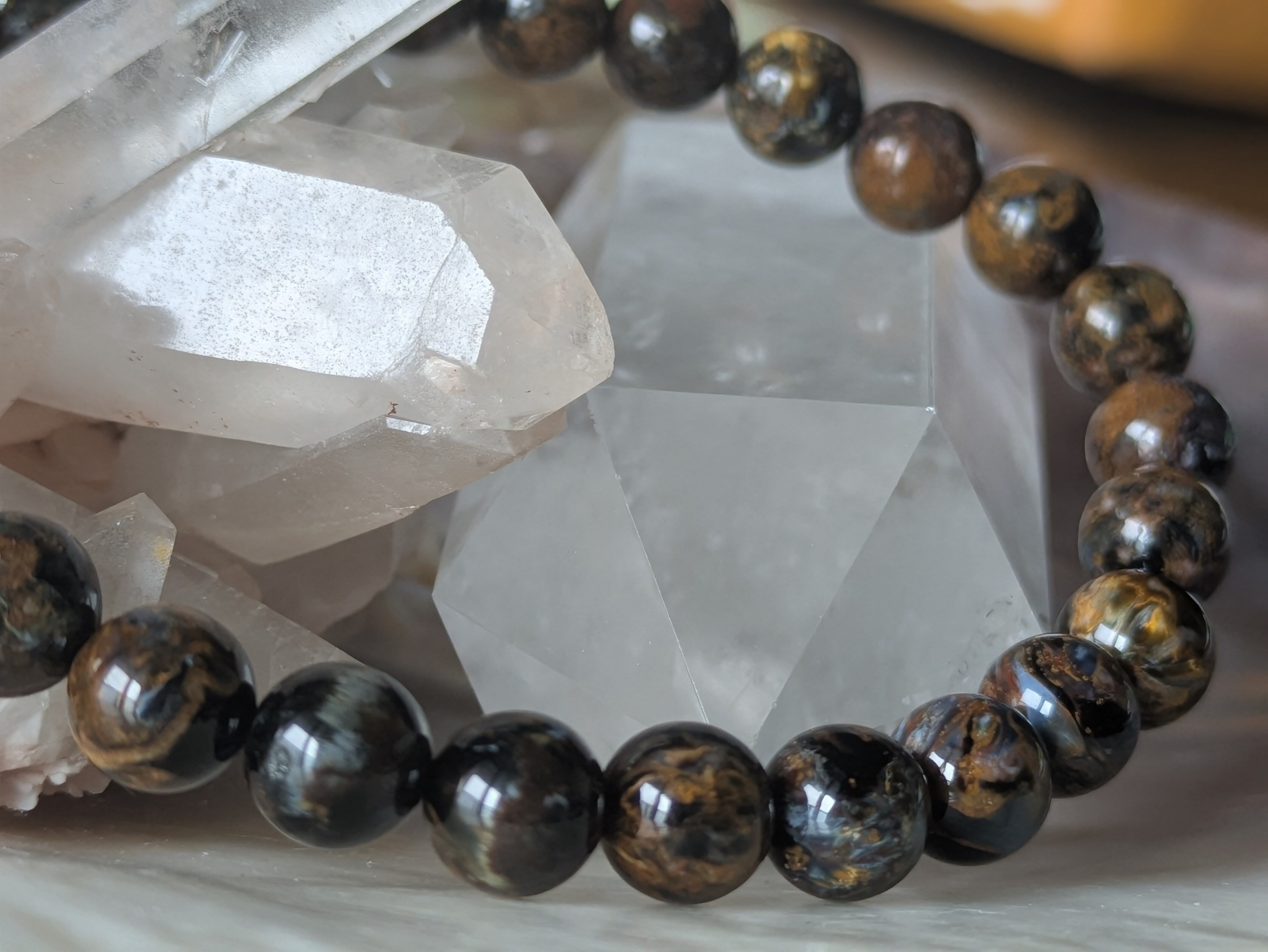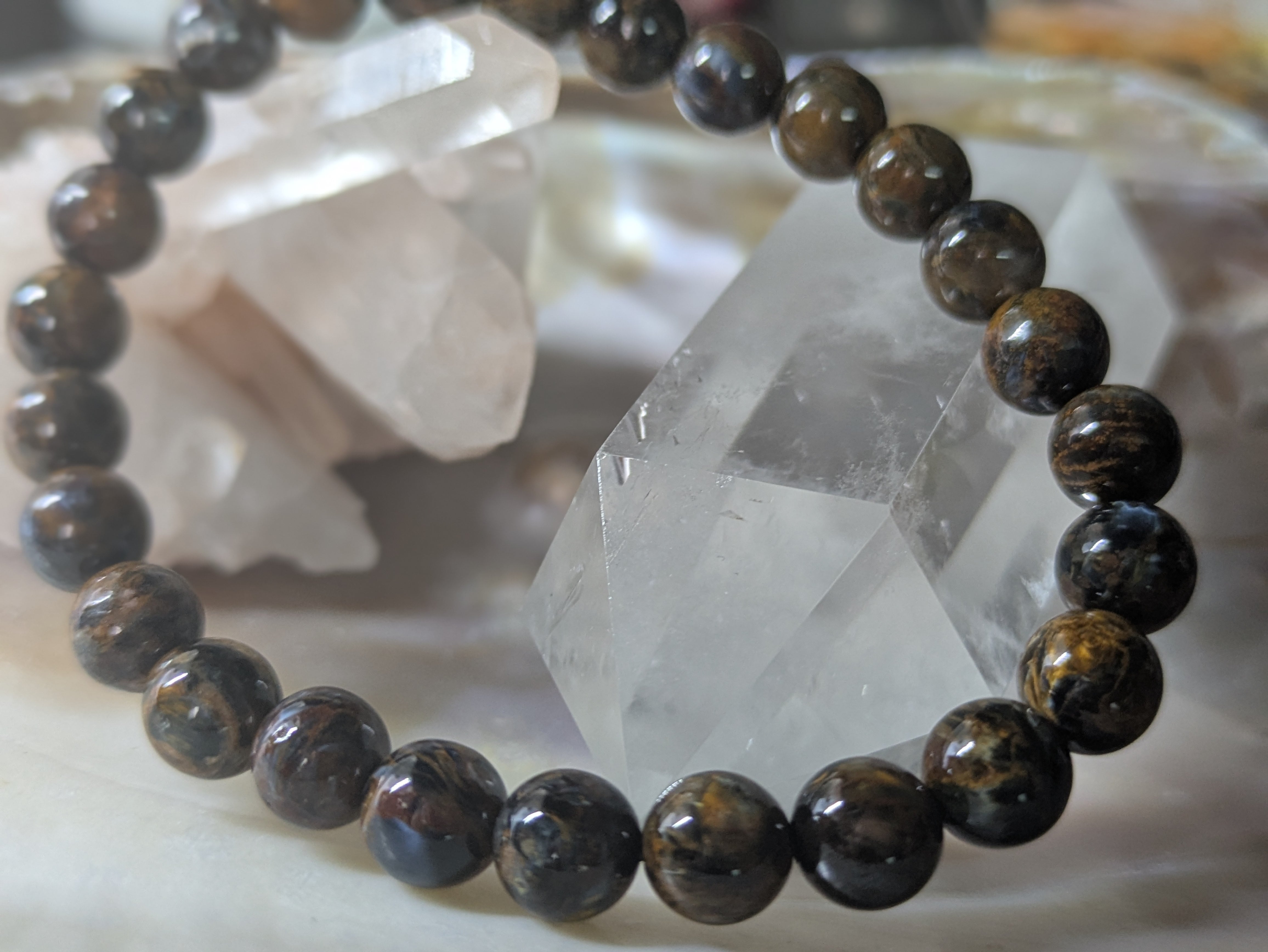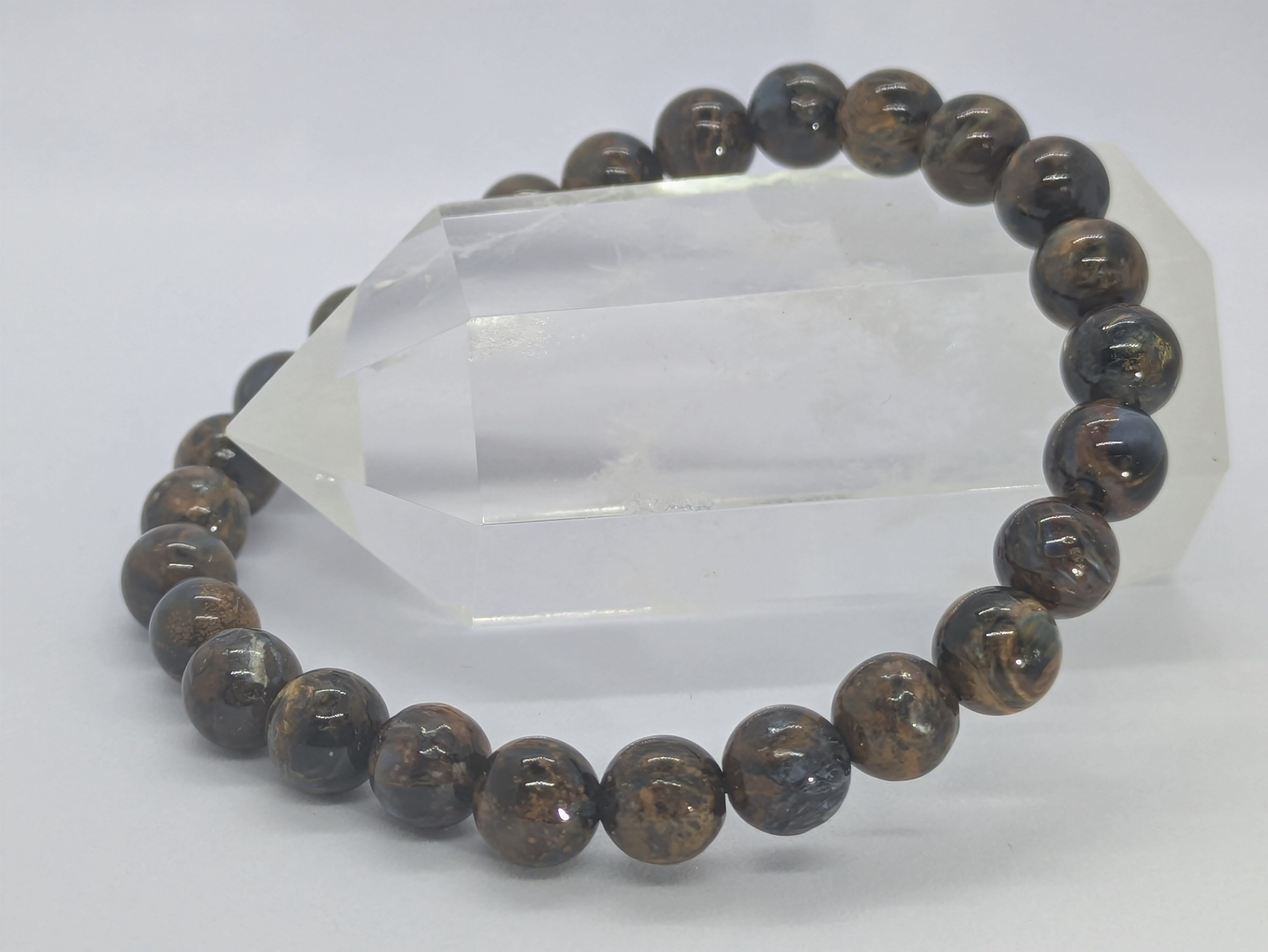 このブレスレットは、ナミビア産のブラウンピーターサイトを使用しており、まるで大地のエネルギーを感じさせるような温かみのある色合いが特徴です。