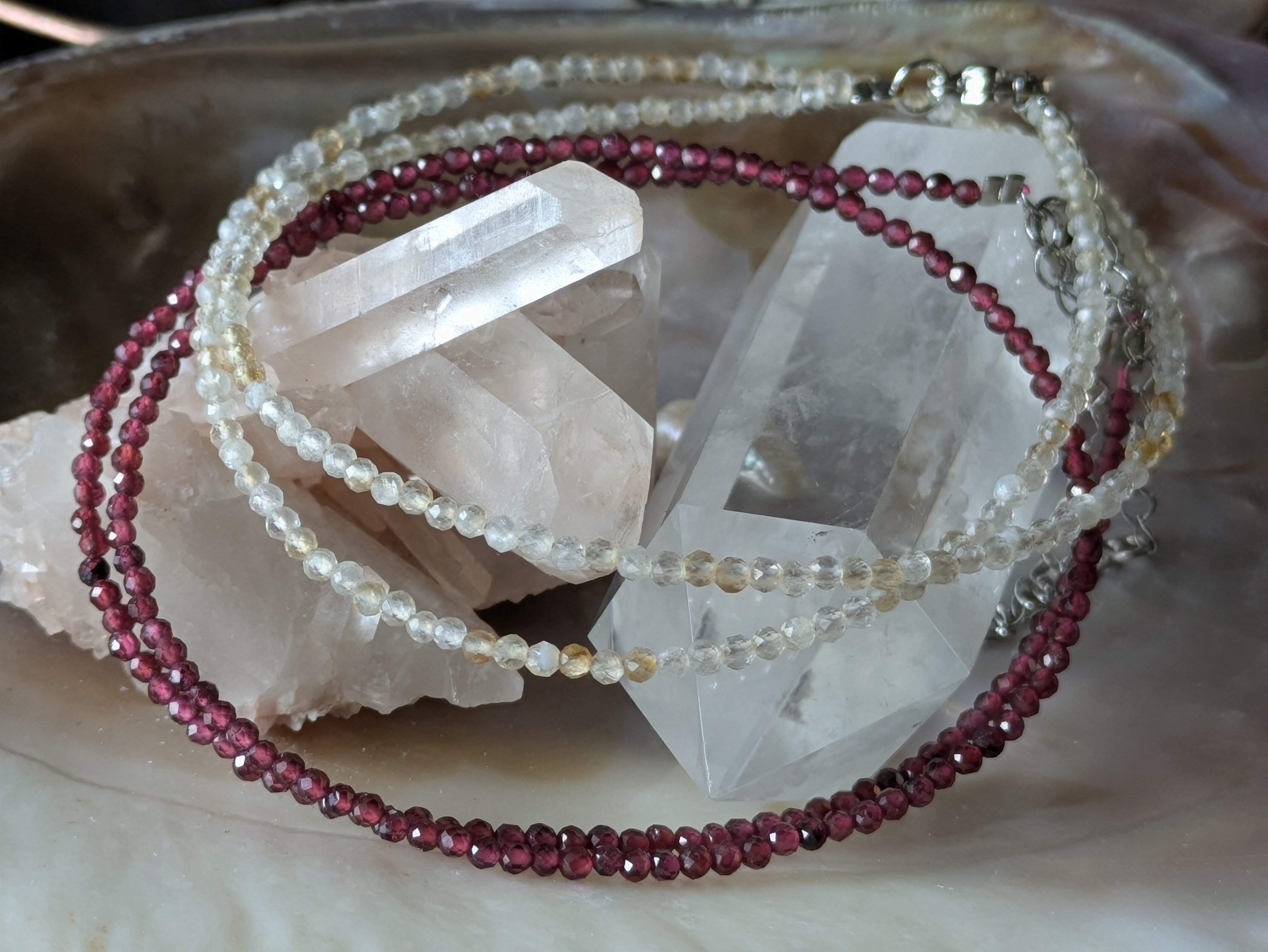 N43.天然石チェーンネックレス①ブラックスピネル、シトリン、ガーネット、サンストーン、ラピスラズリ、ラブラドライト
