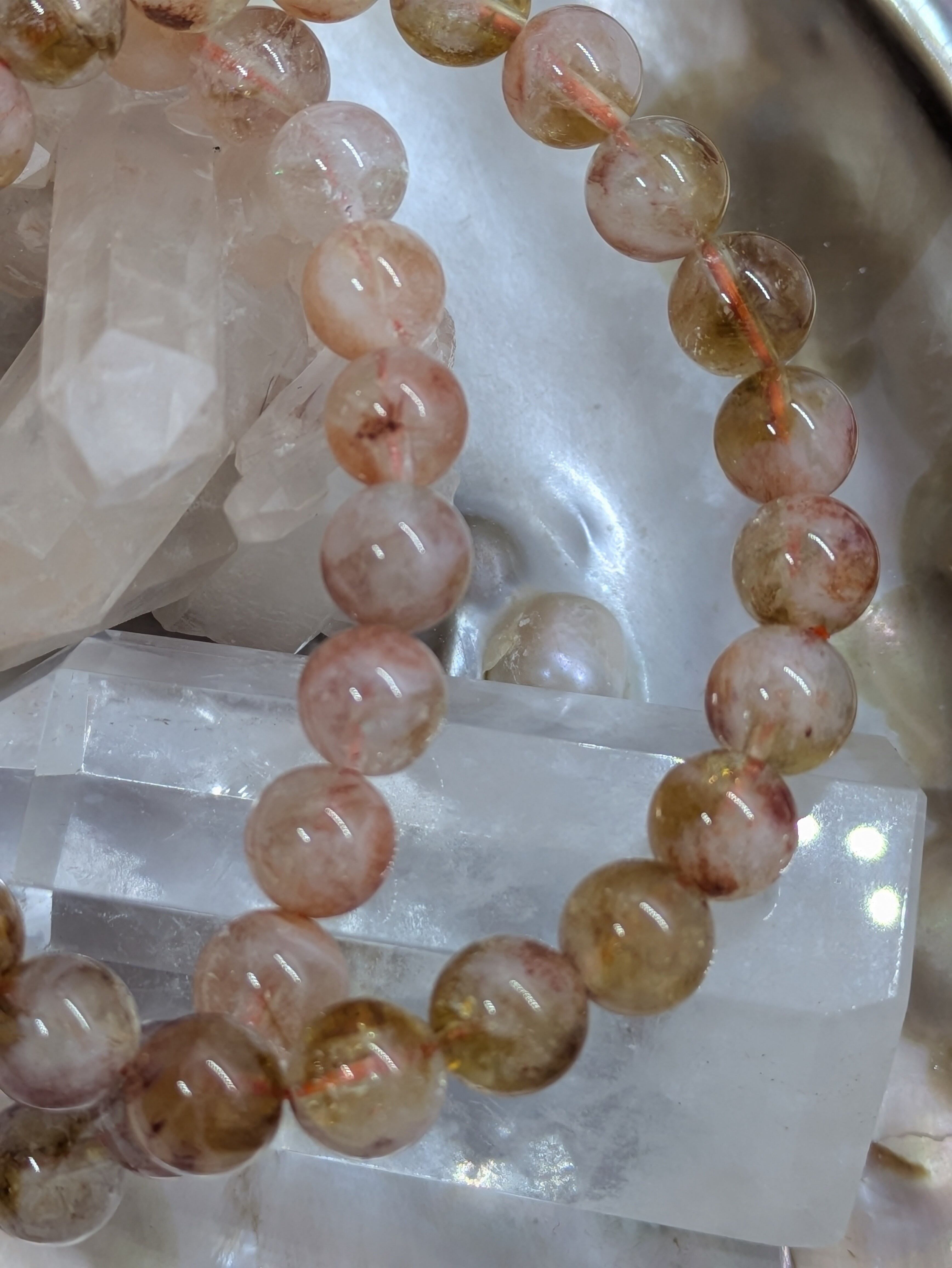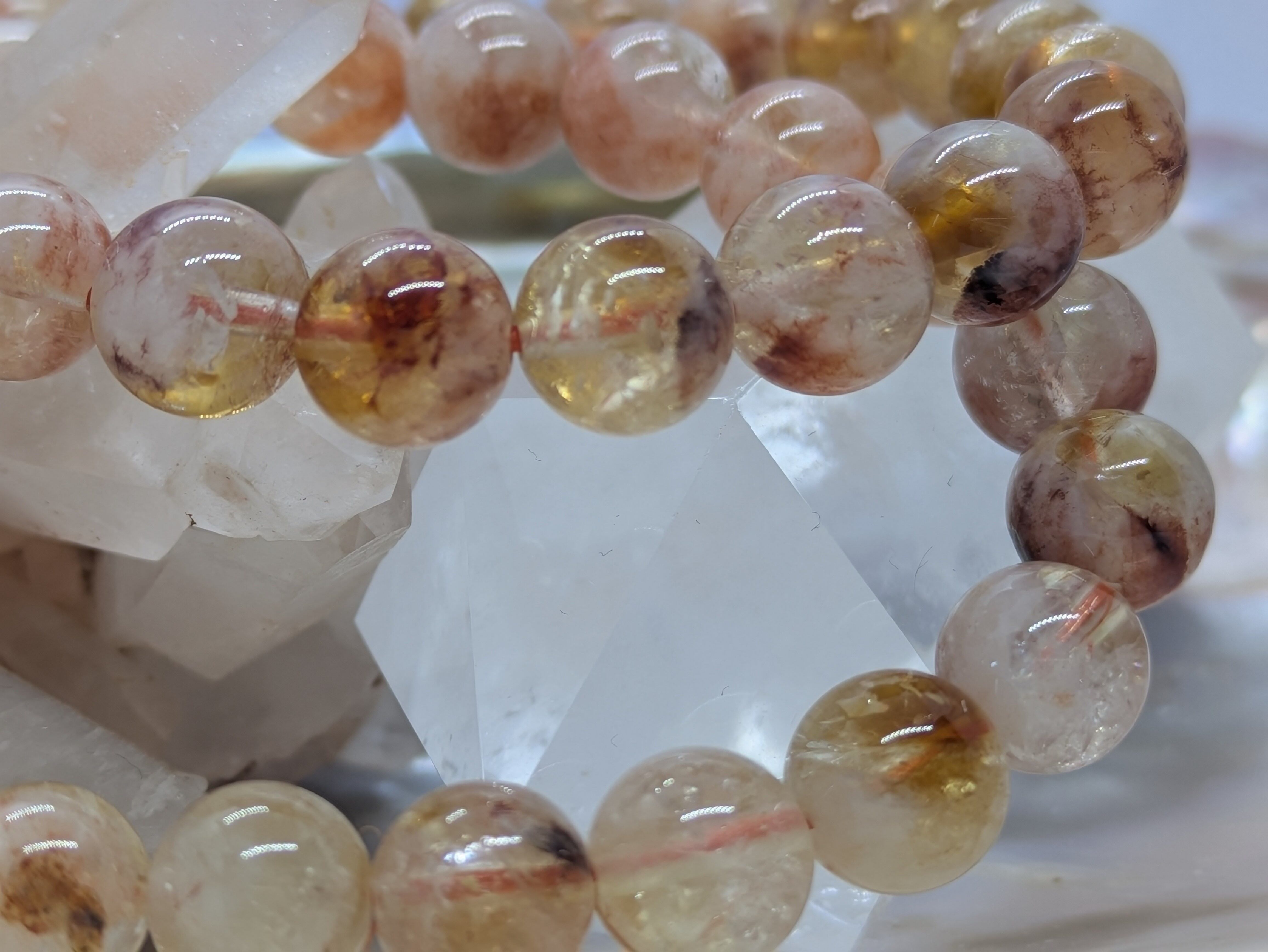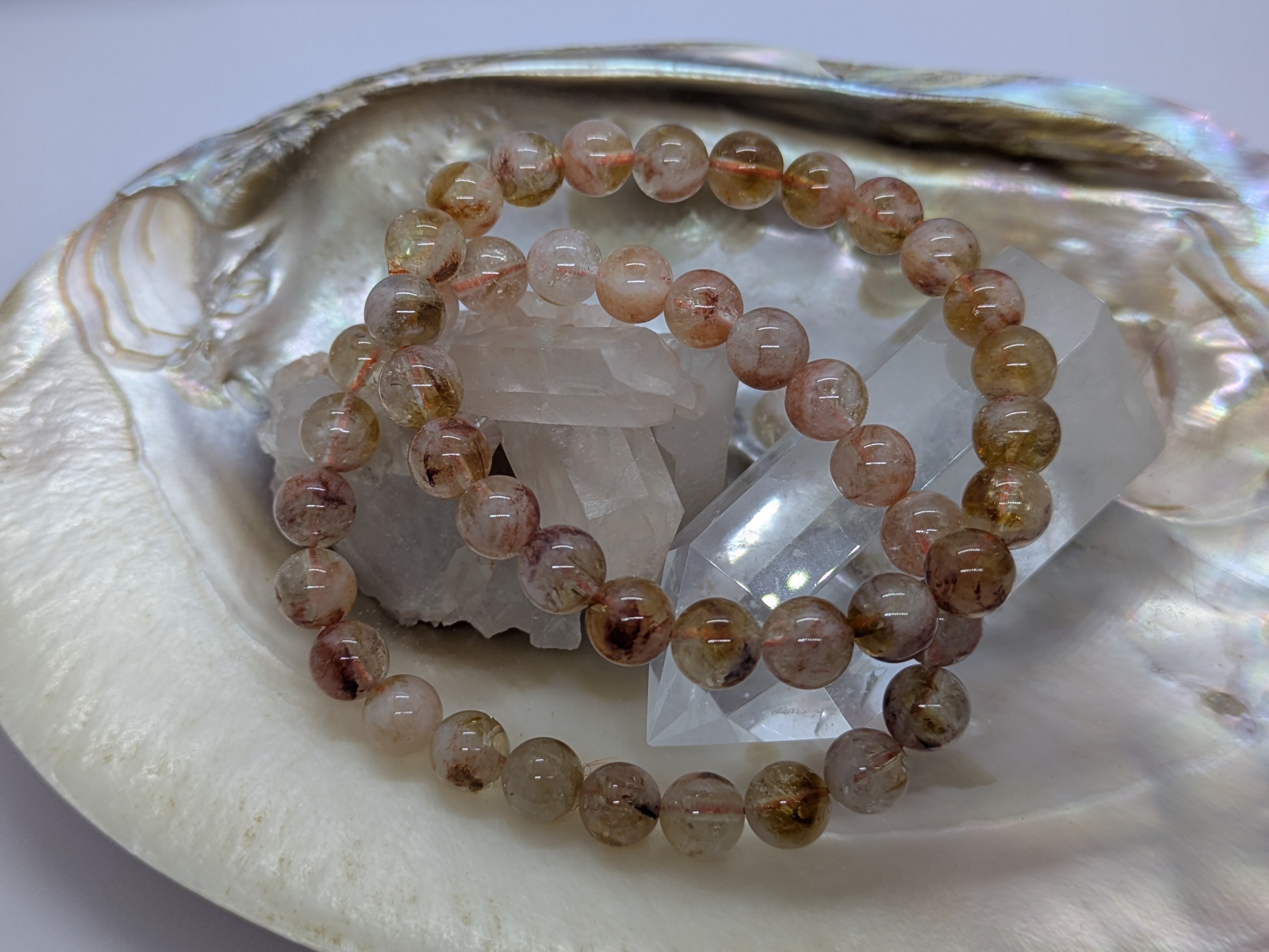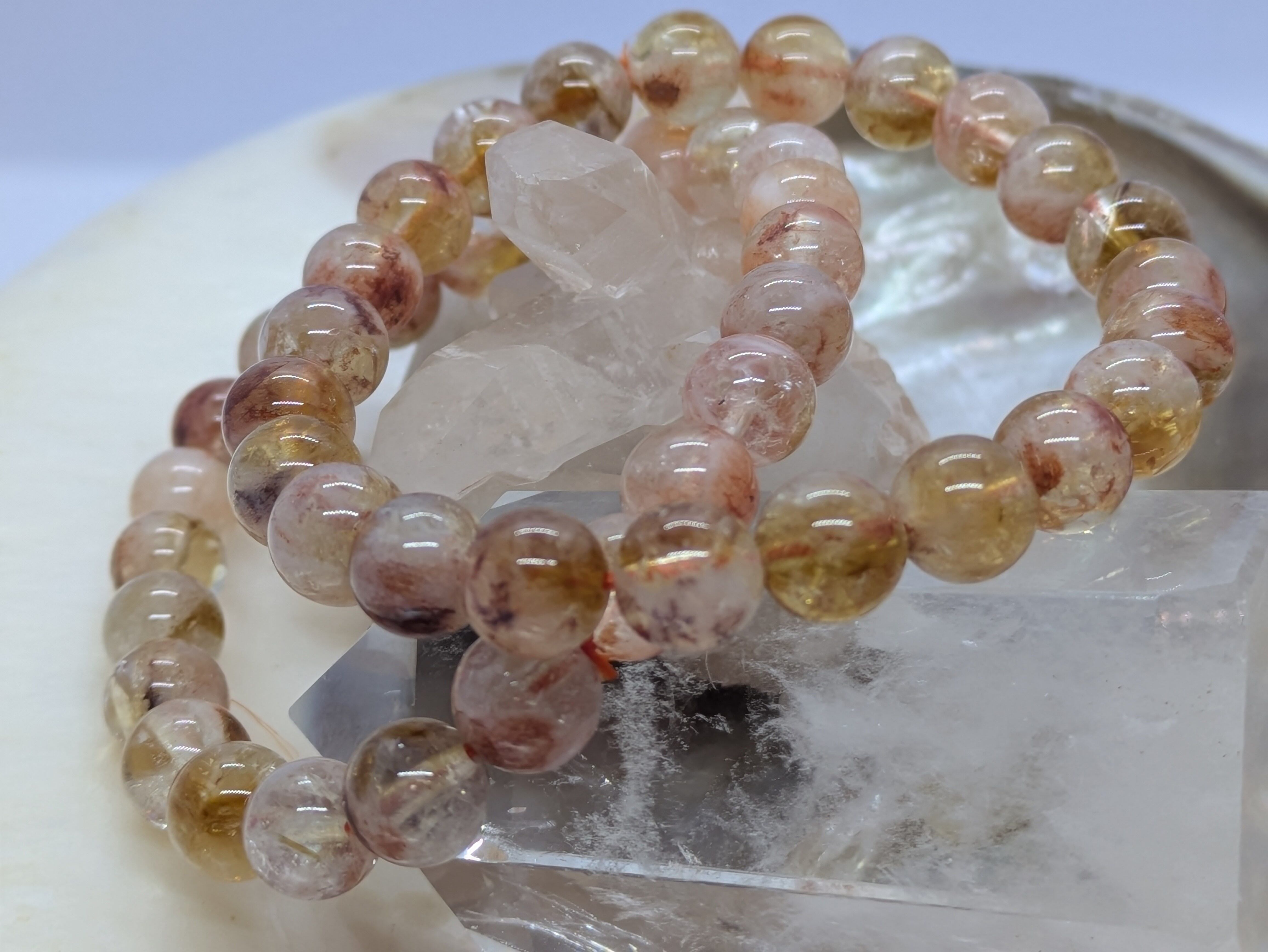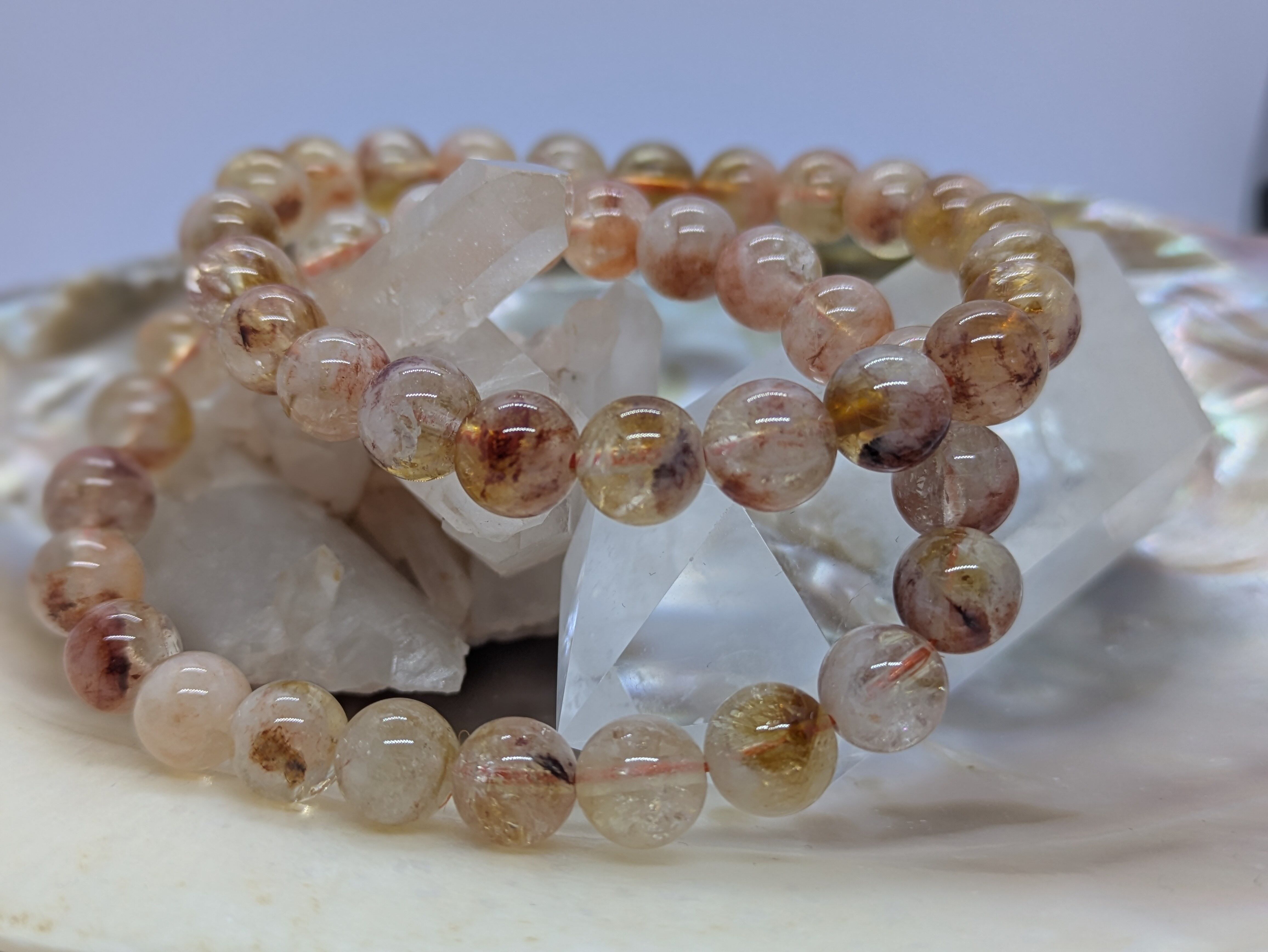 シトリンの透明感とライモナイトの温かみのある色合いを兼ね備えています。