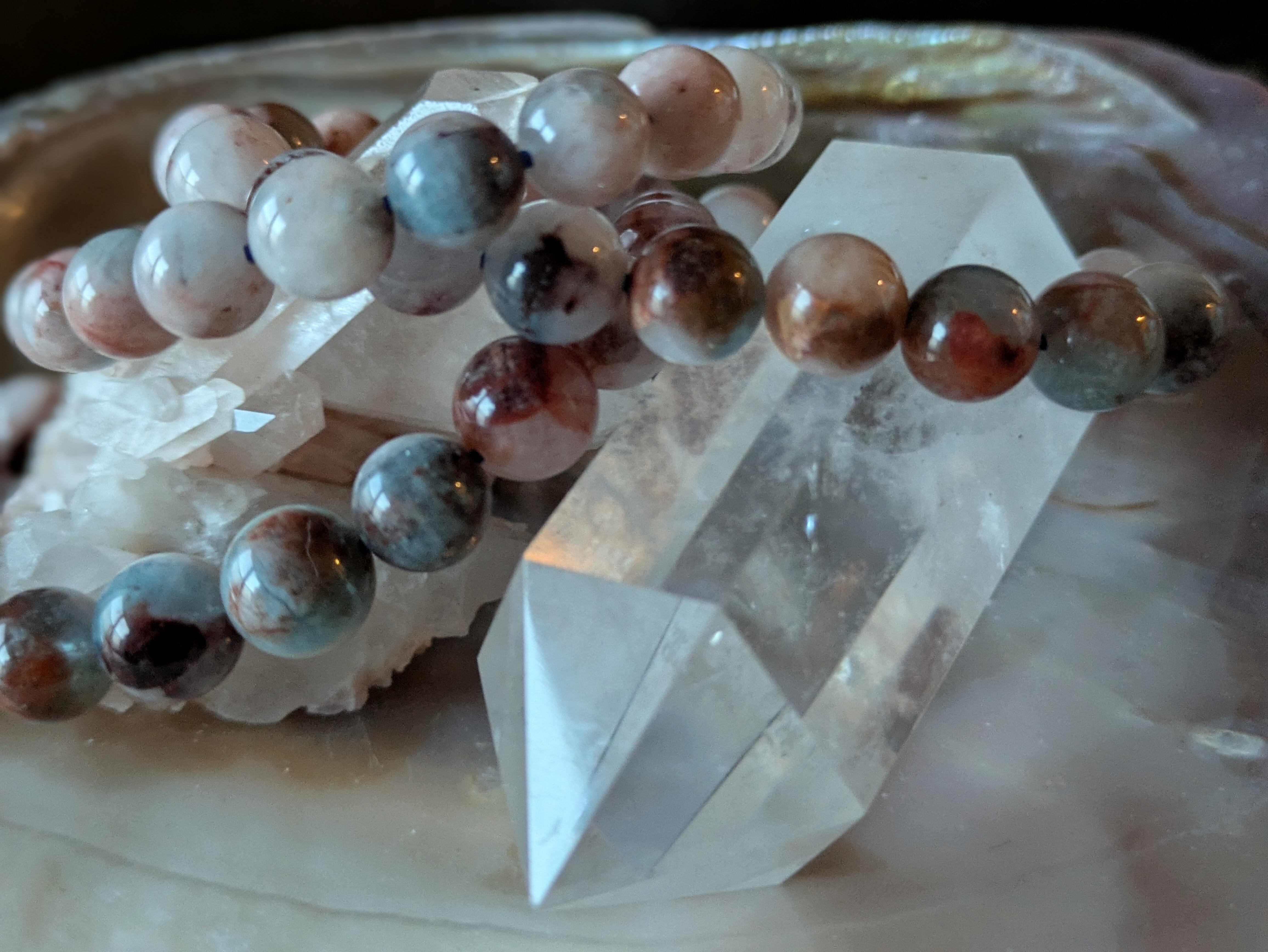 画像の水晶は浄化用であり、チョコレートアクアマリンシリカのみの販売となります。