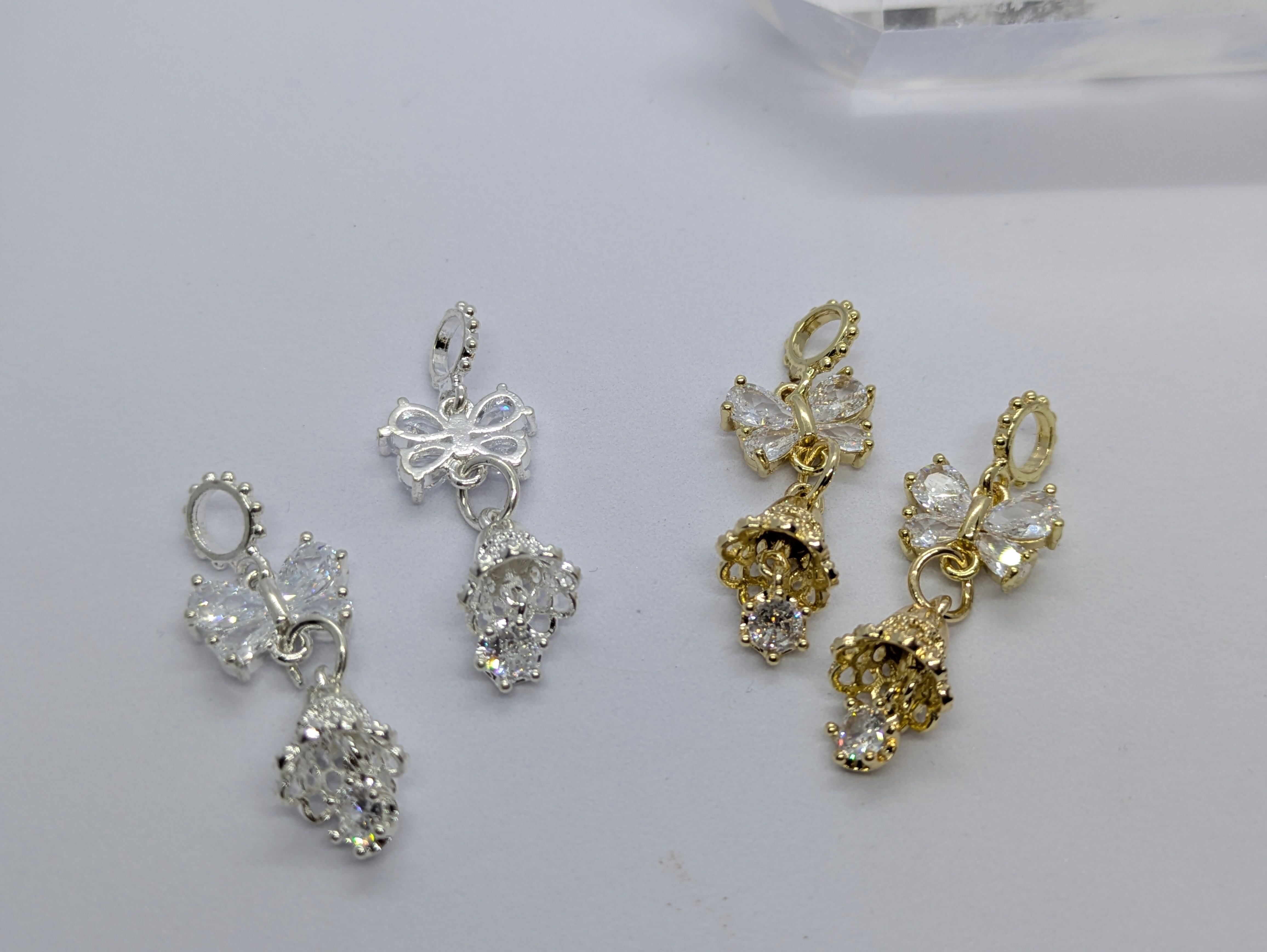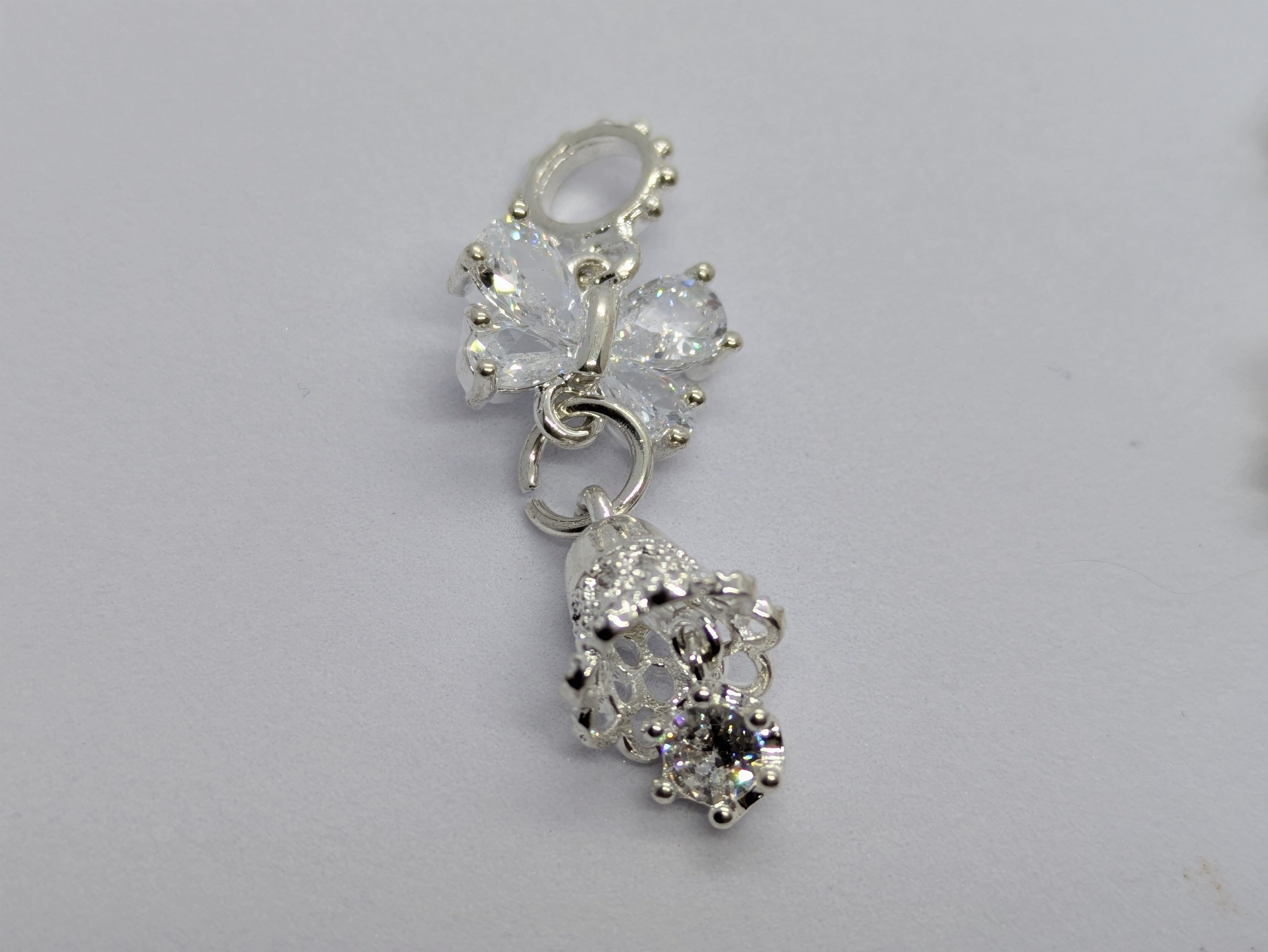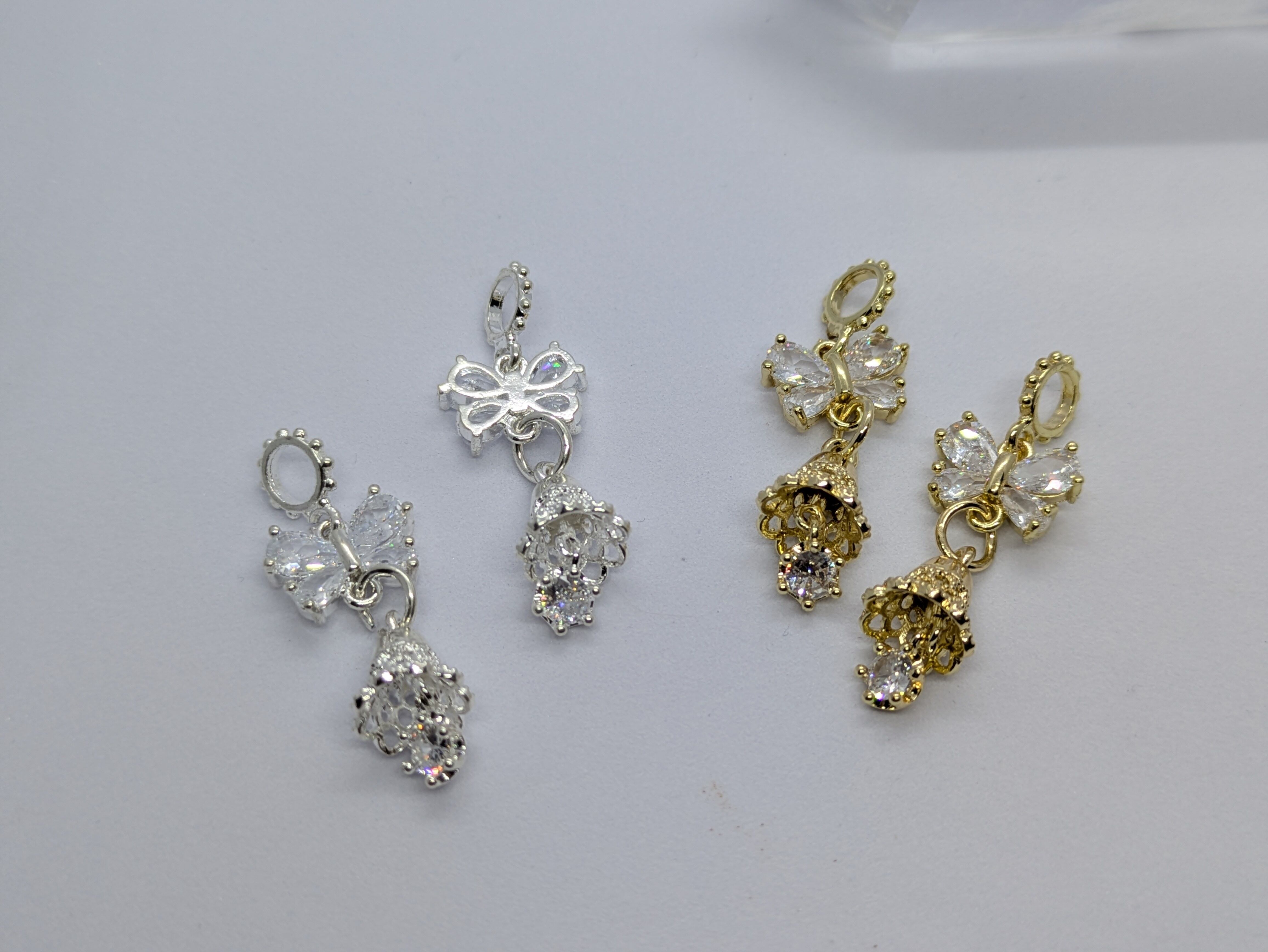 N71.リボン(蝶々)ベルチャーム(1個の値段)ジルコニア&ステンレス