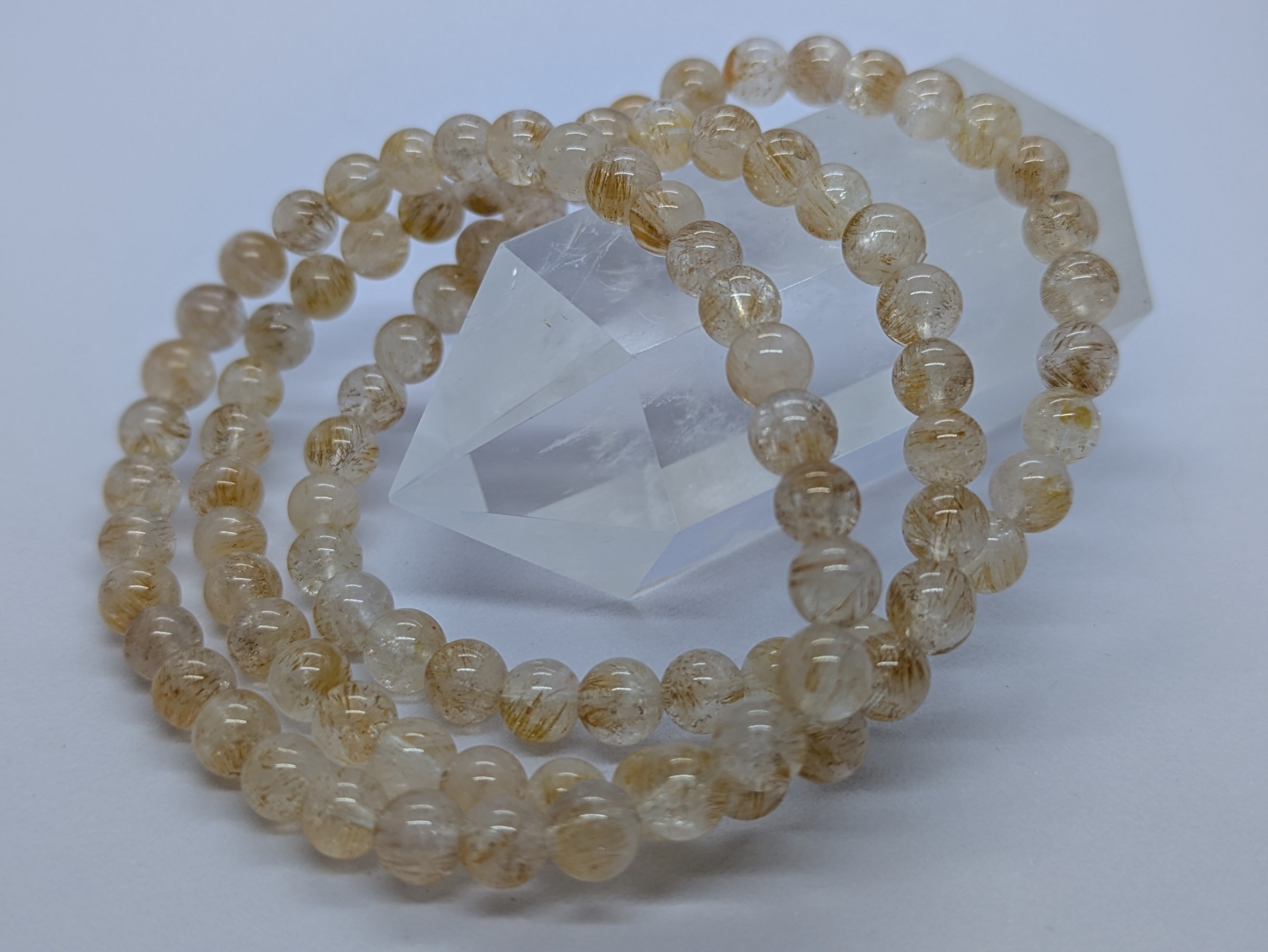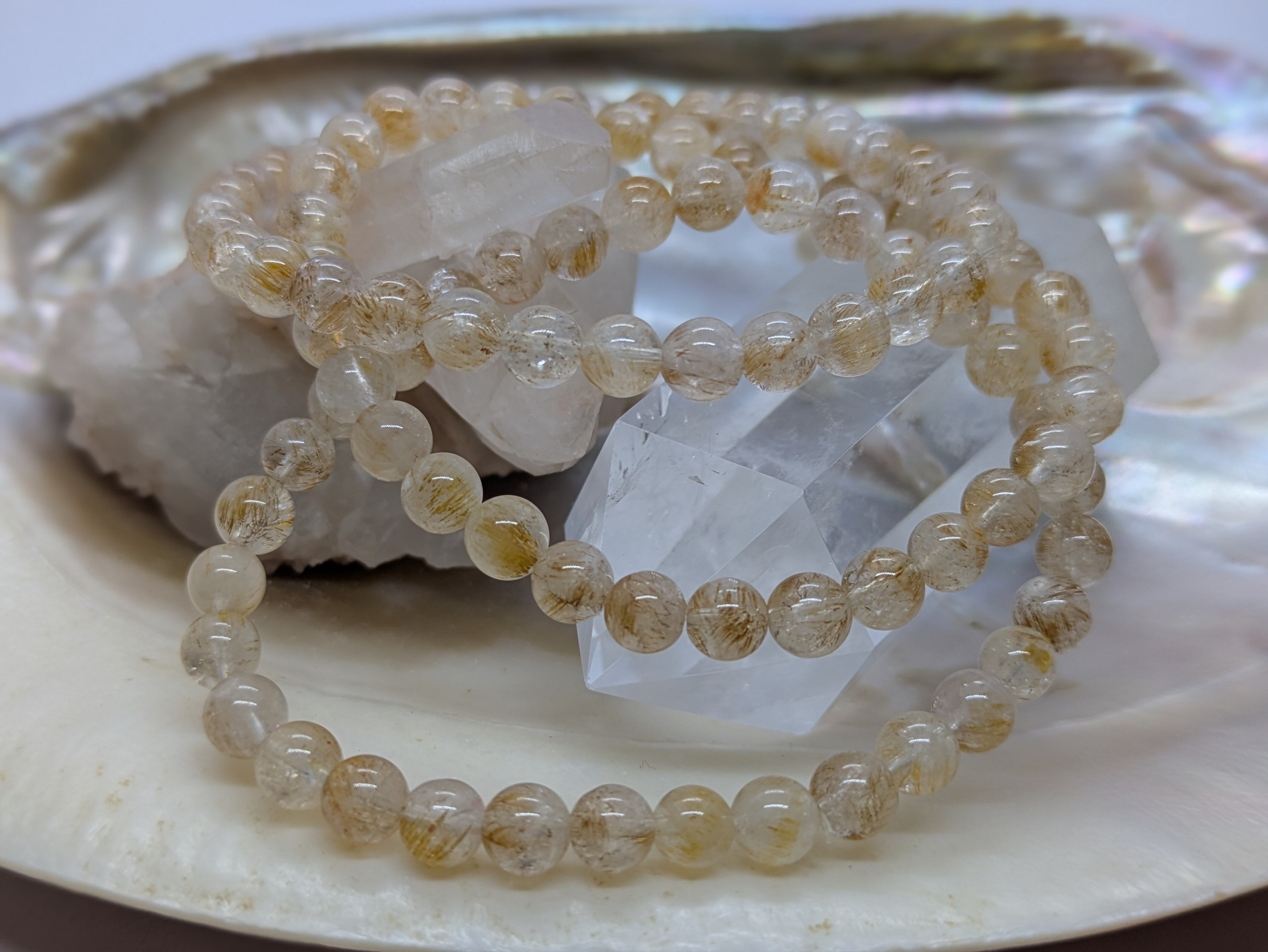 黄色い針状の鉱物などが混ざり合い、金運や仕事運、調和とエネルギーの活性化をもたらすとされます。