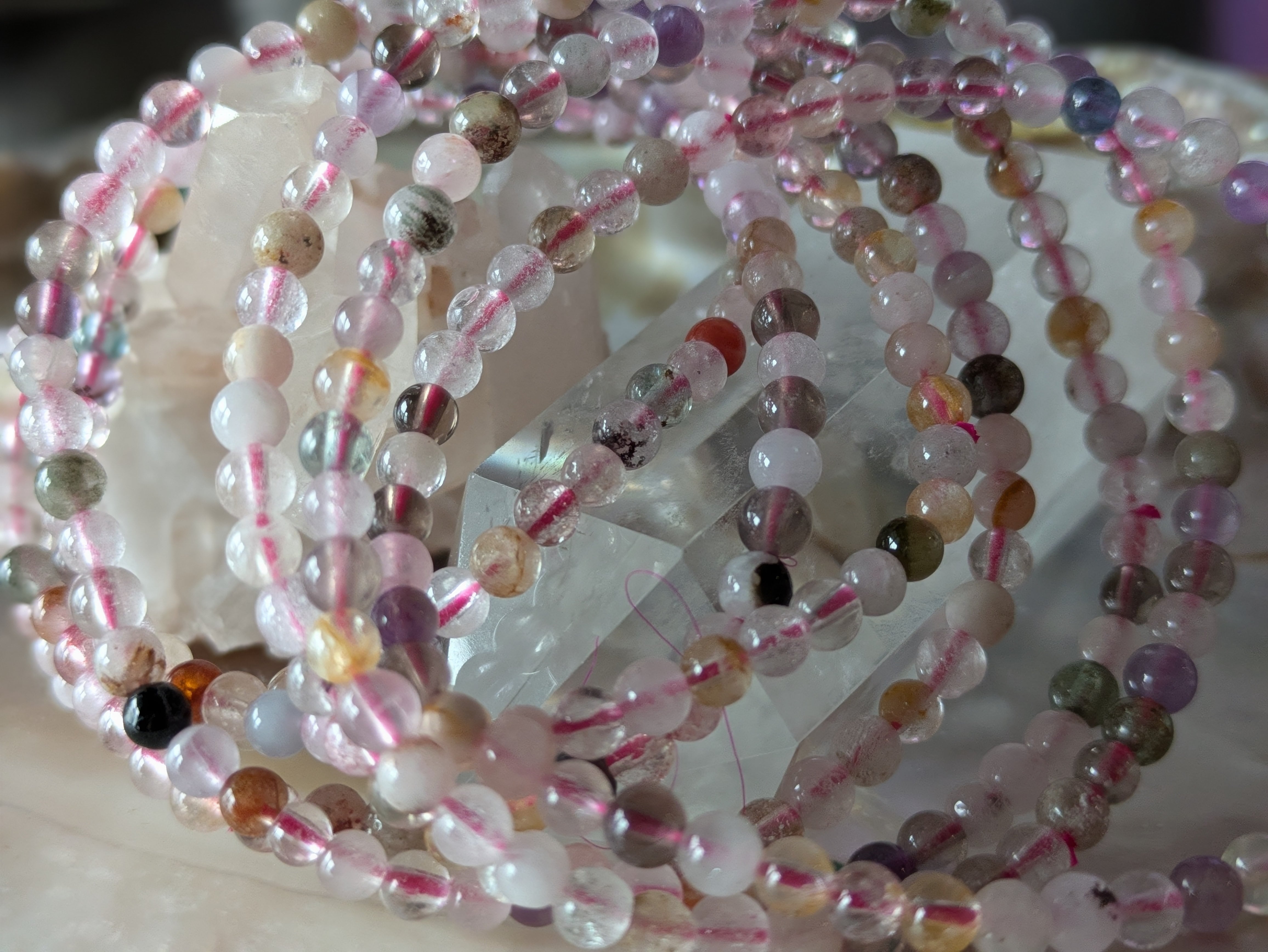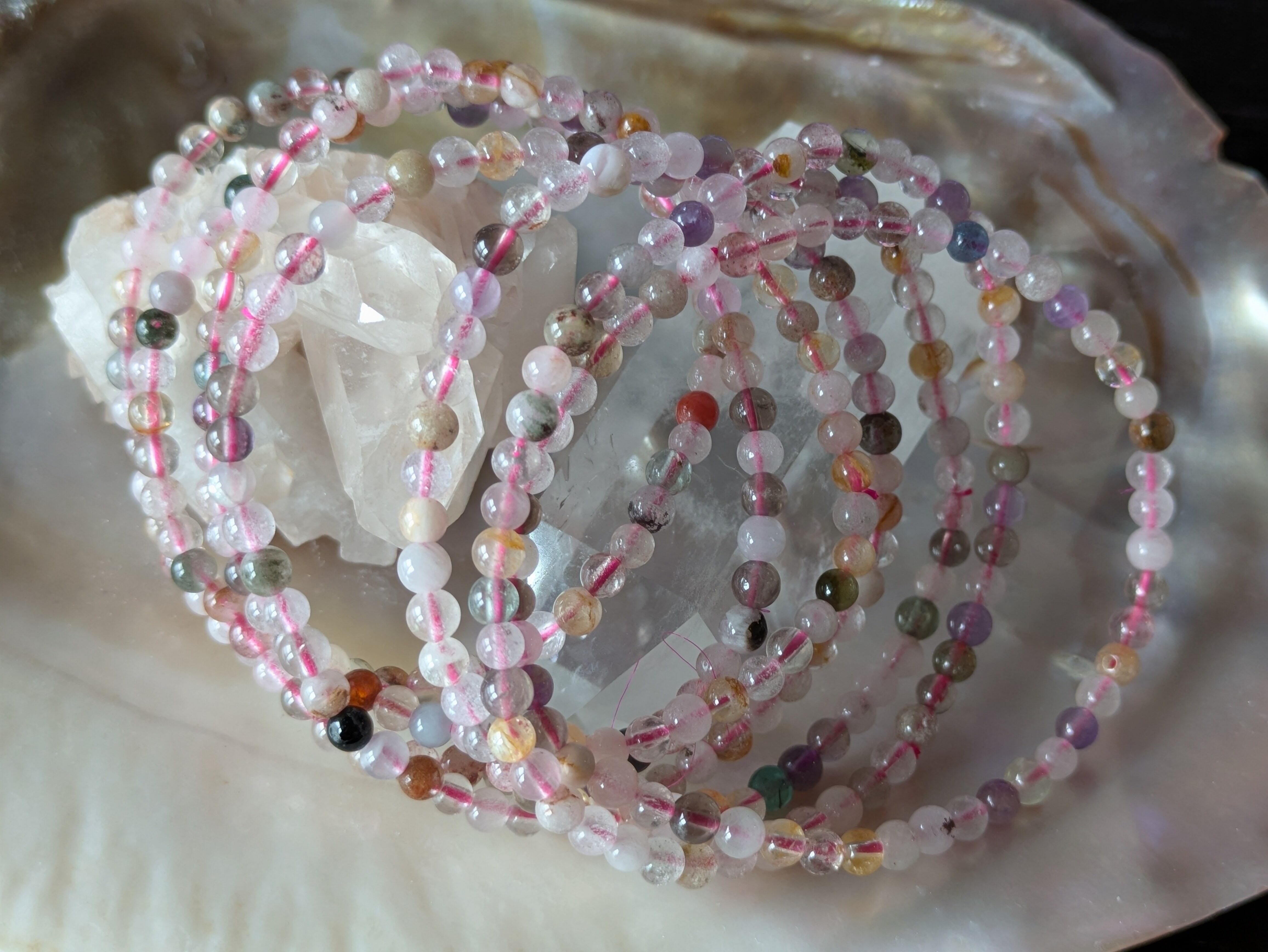 このブレスレットは、さまざまな石のエネルギーが一つになり、持つ人の魅力をさらに引き立てます。