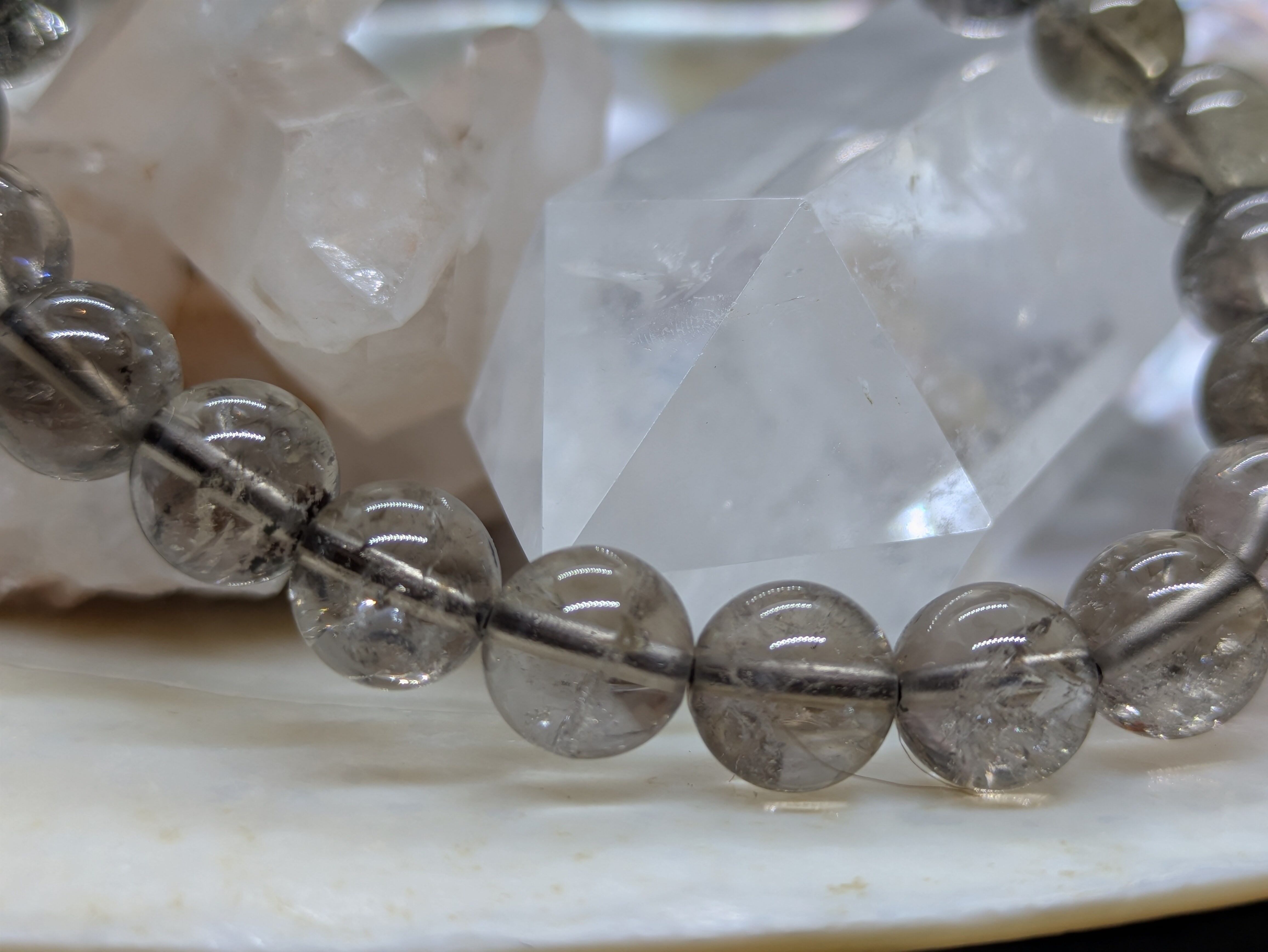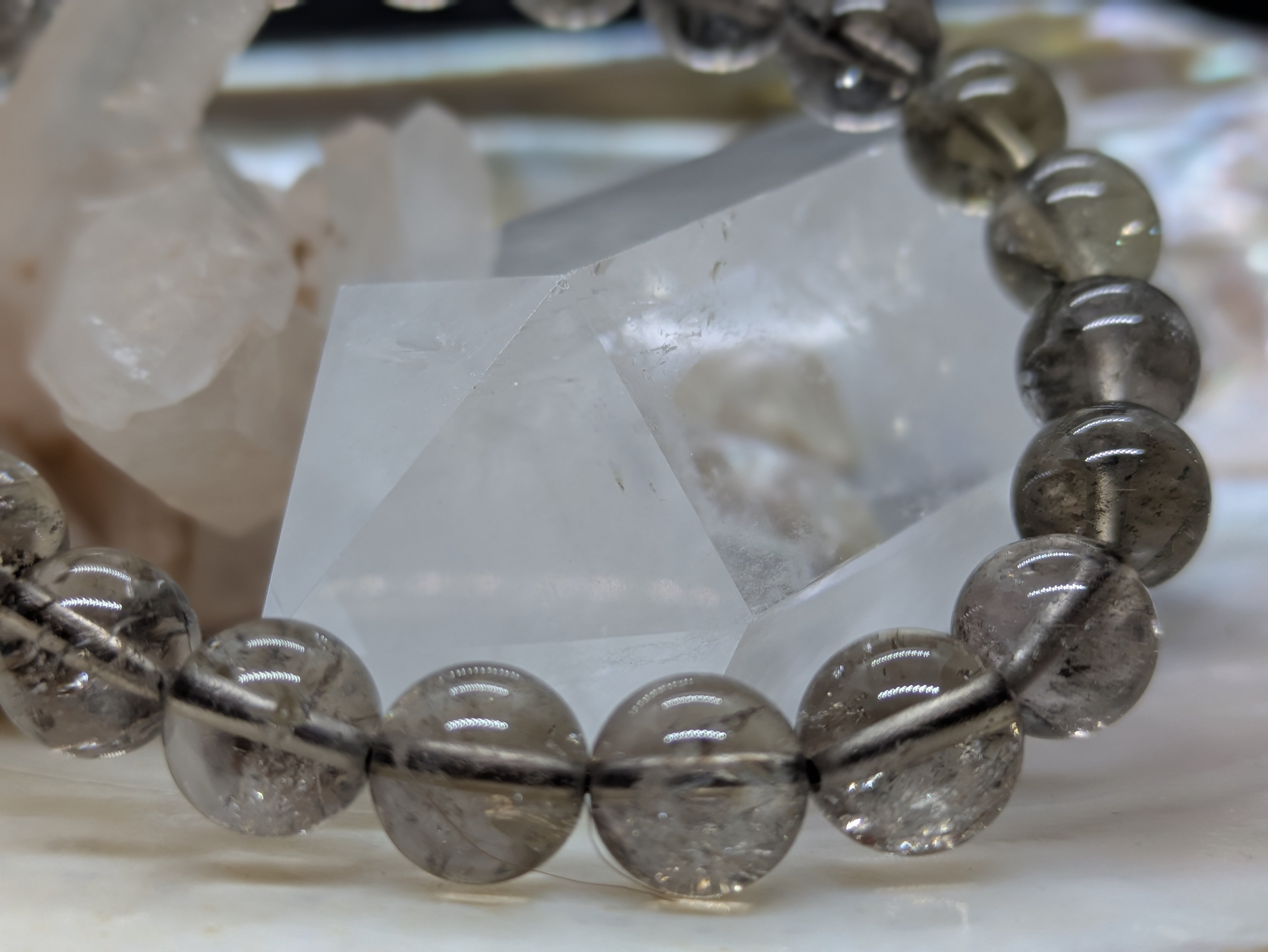 神秘的なスモーキーカラーが魅力のこのブレスレットは、持つ人に穏やかなエネルギーを与え、心の安定をサポートします。