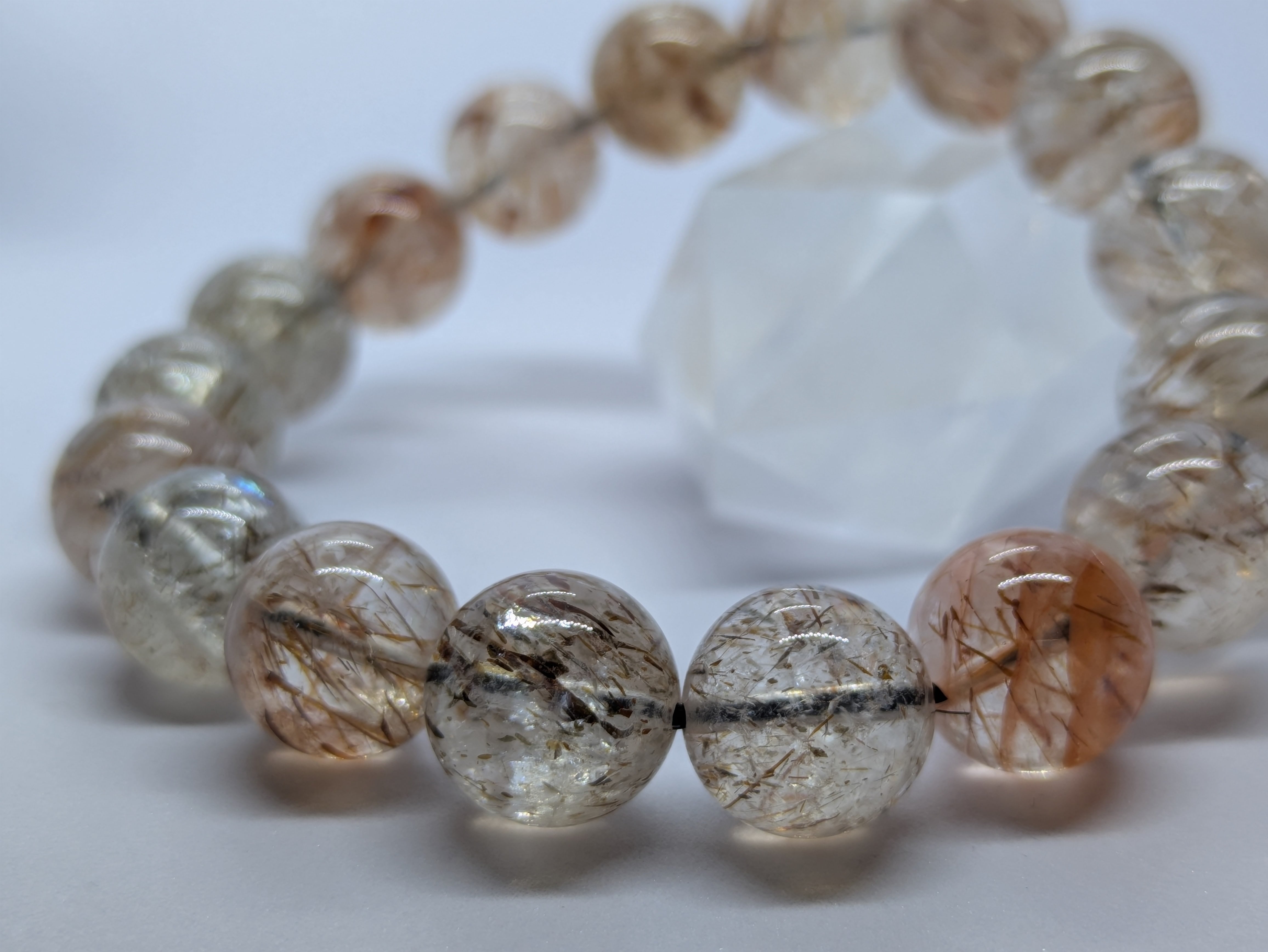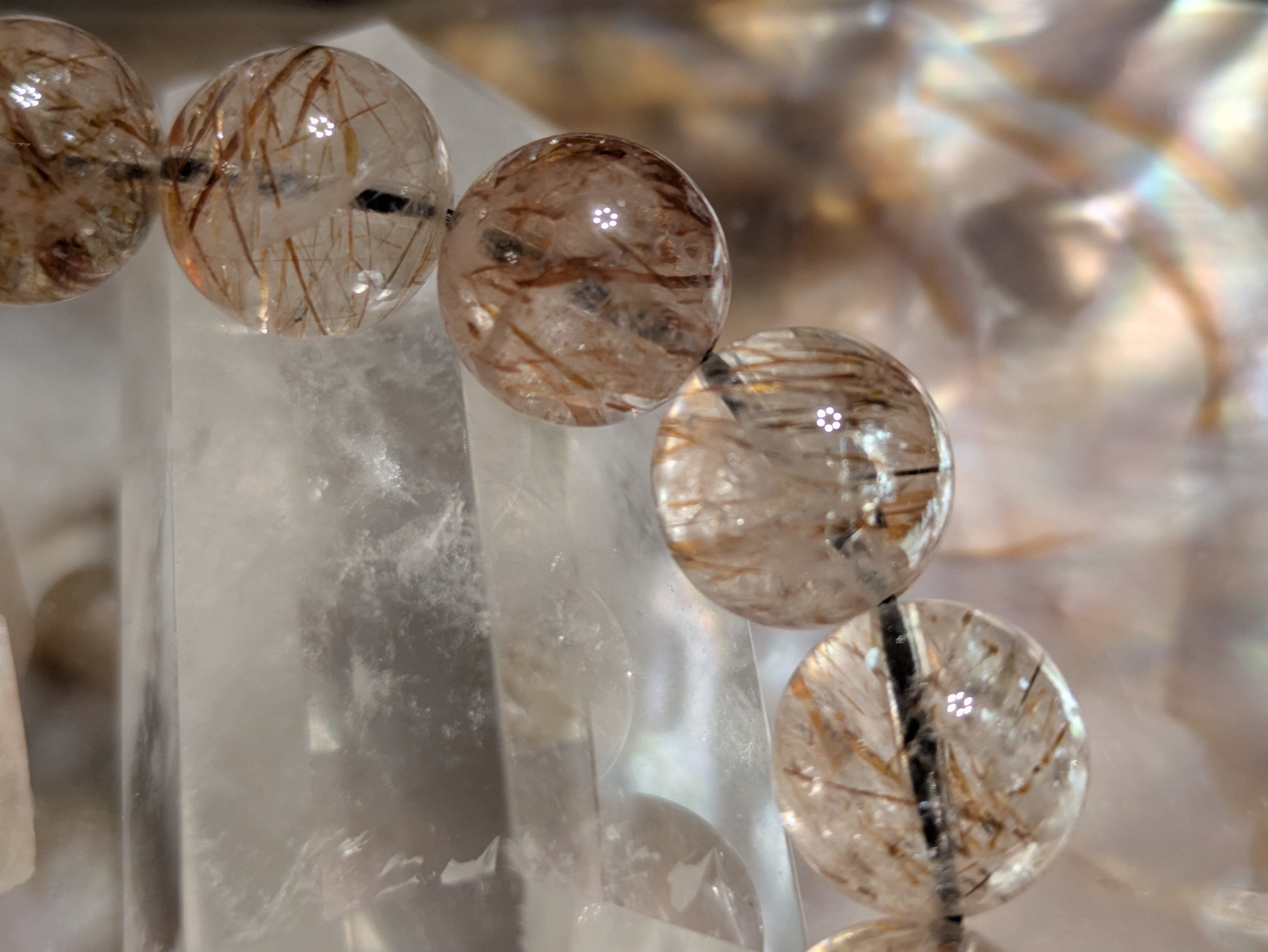 さまざまな色のルチルが調和し、バランスよくエネルギーを高める石。