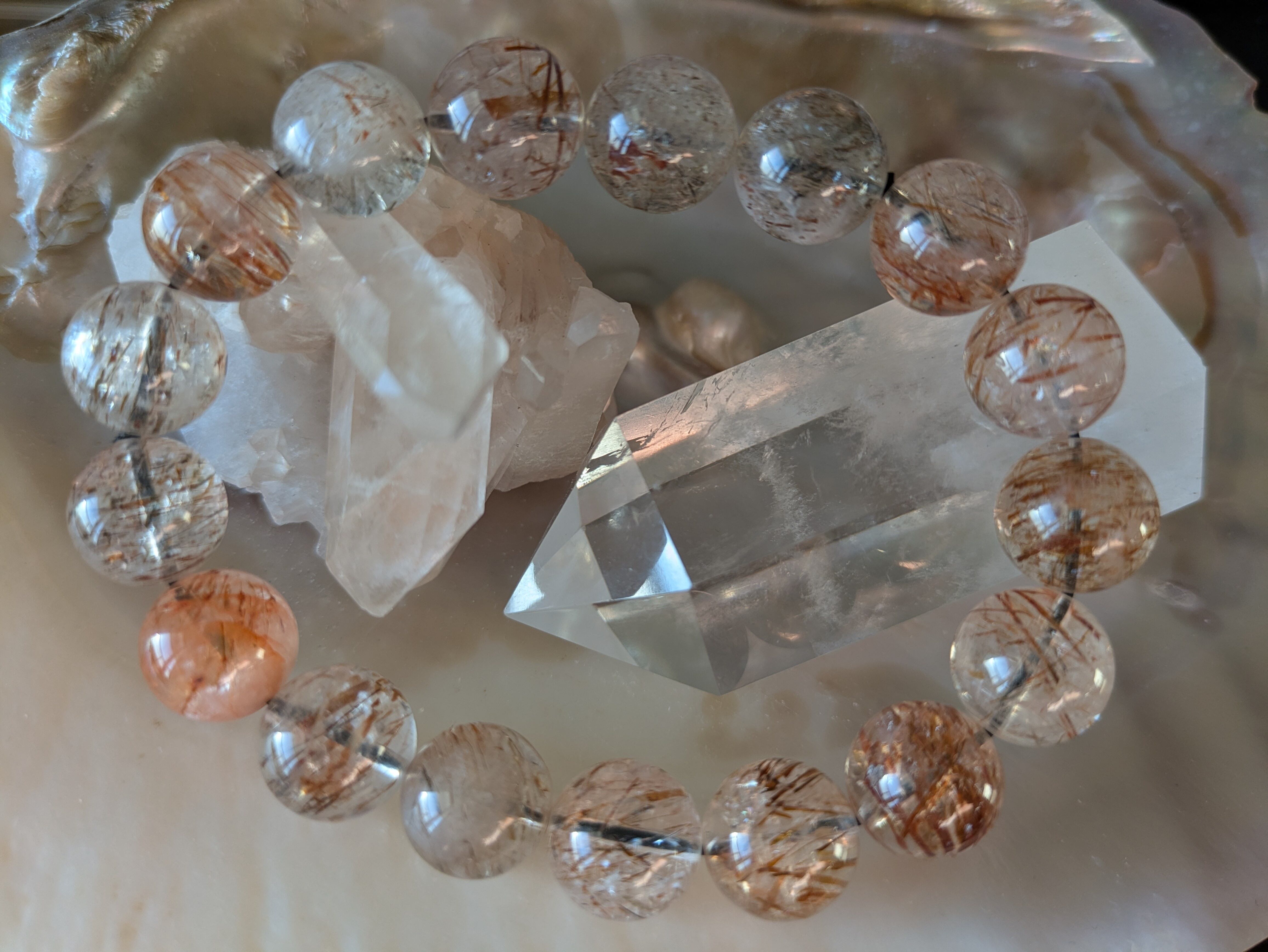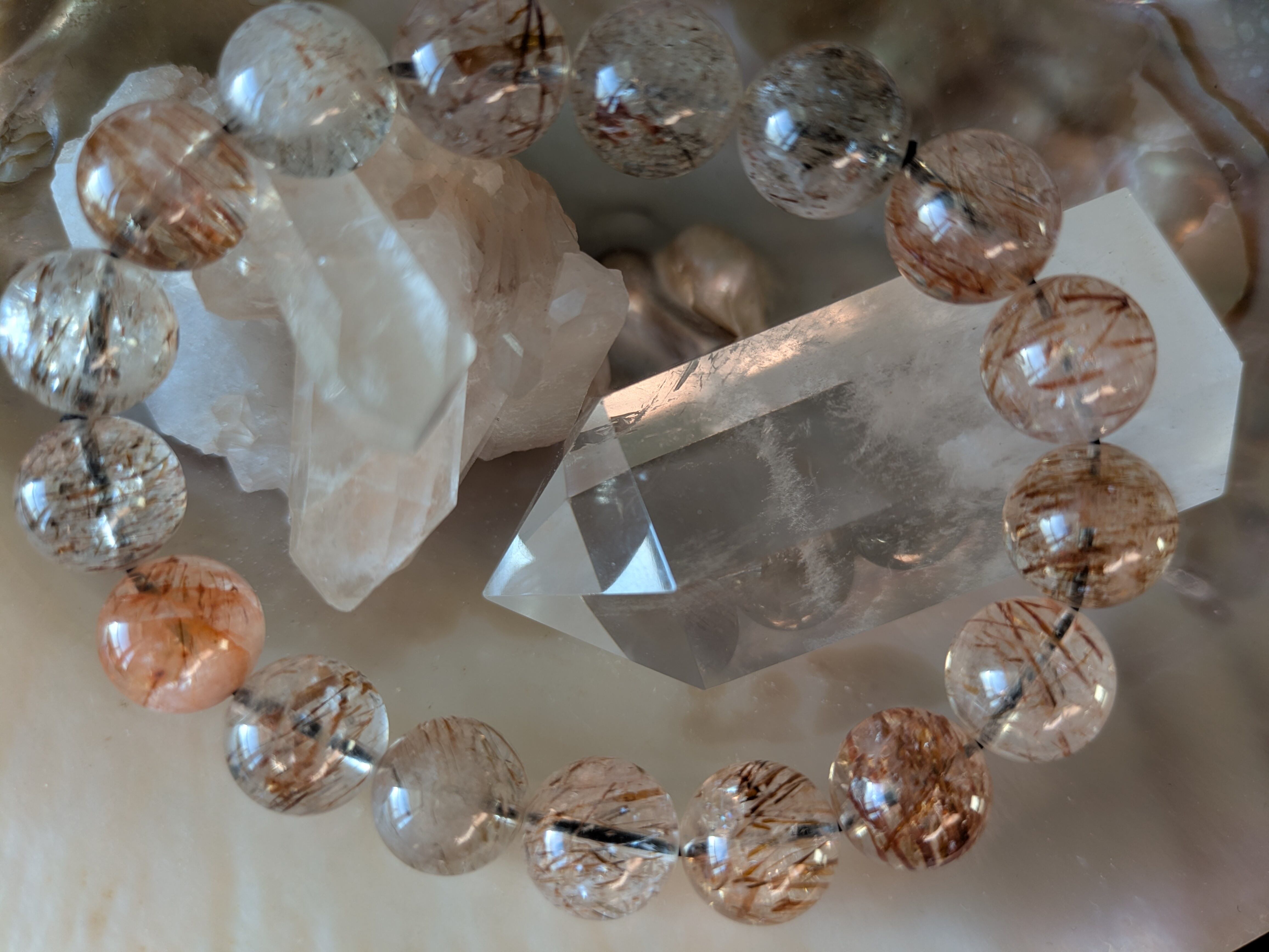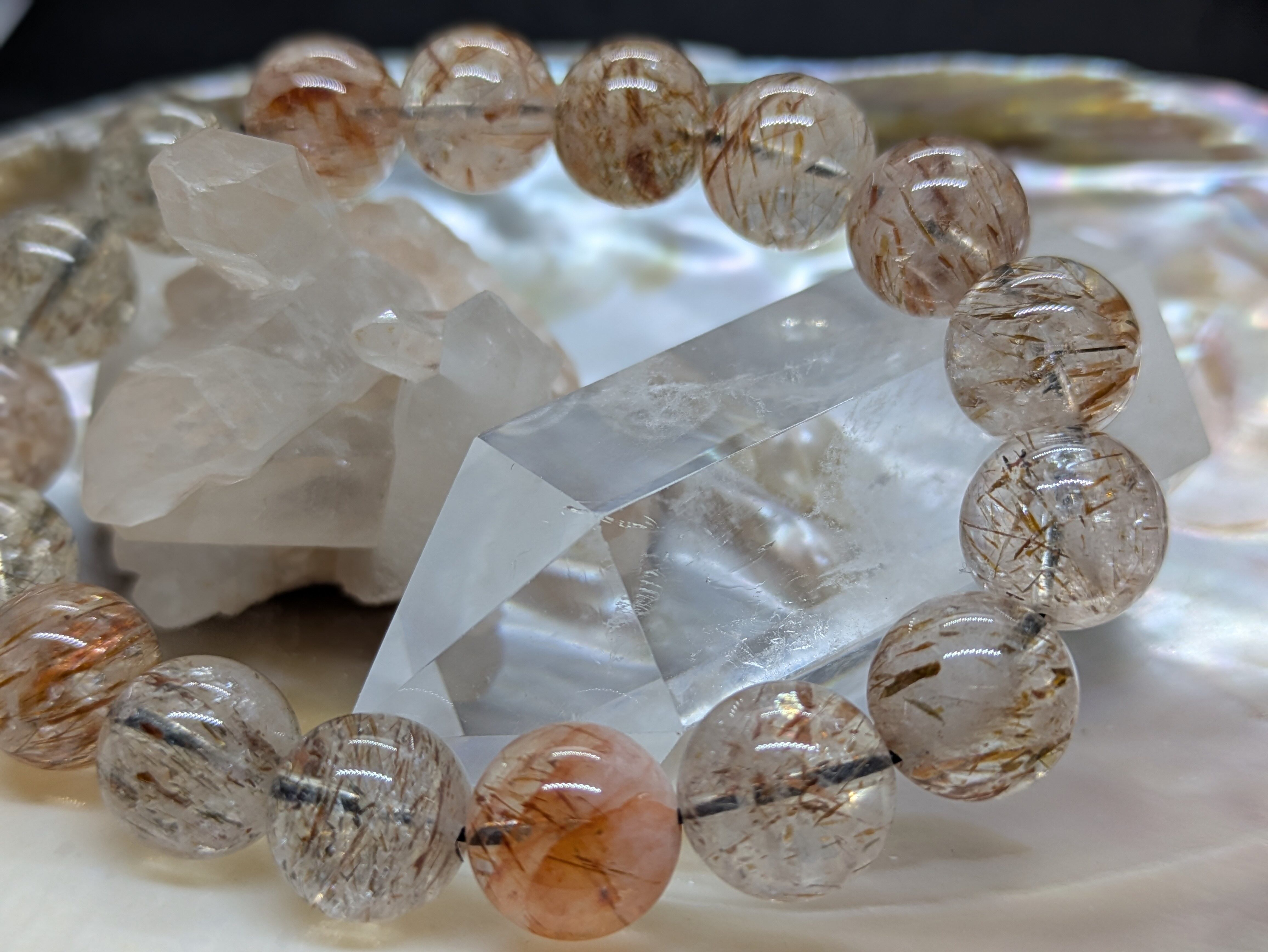 美しいルチルが煌めくチルクォーツ。