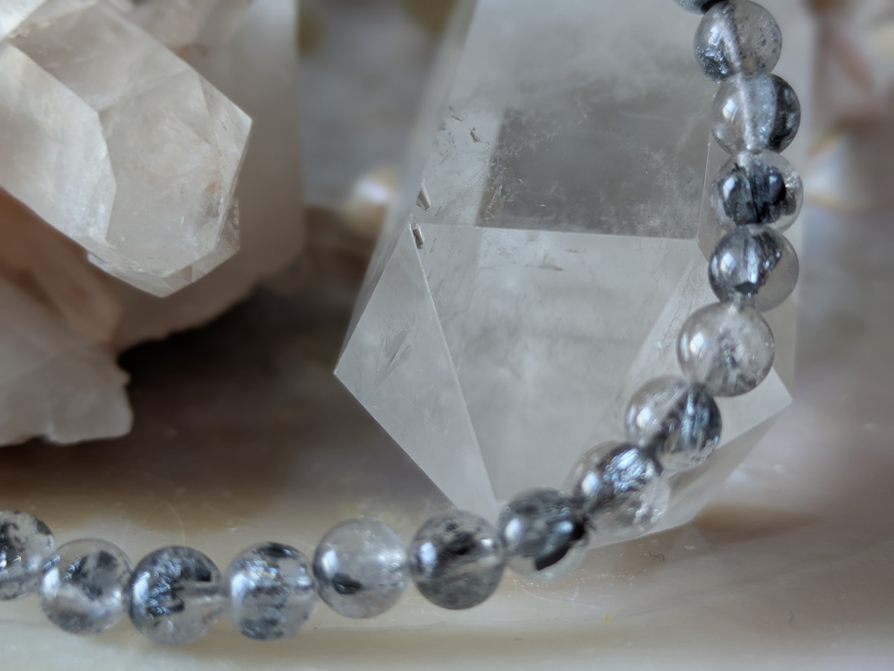 画像の水晶は浄化用のためブレスレットのみの販売となります。