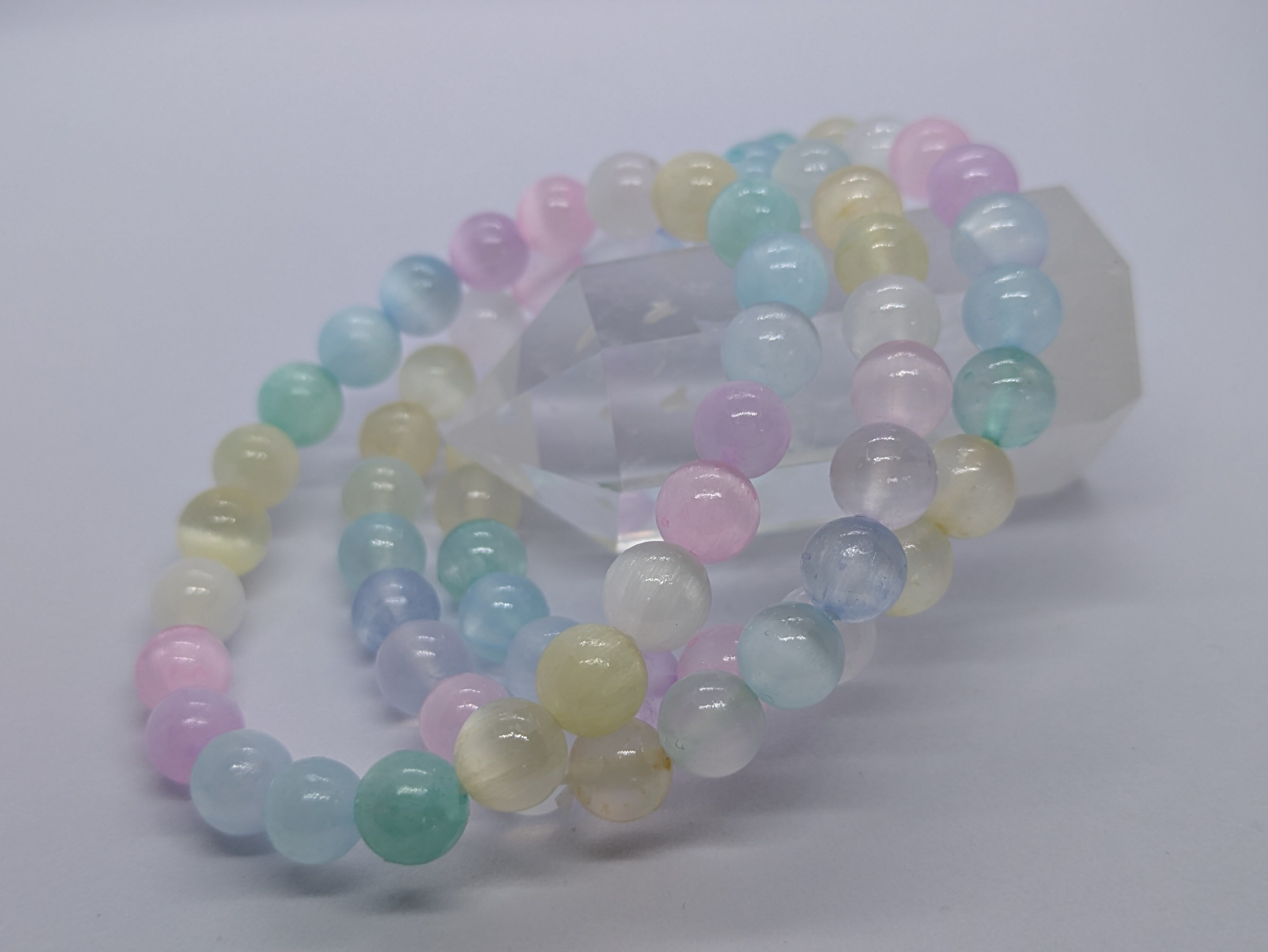 色とりどりのセレナイトは、持つ人の気持ちを豊かにし、日常に彩りを加えるアイテムとして人気があります。シンプルでありながら、どんなスタイルにも合わせやすく、大切な人への贈り物にも最適です。