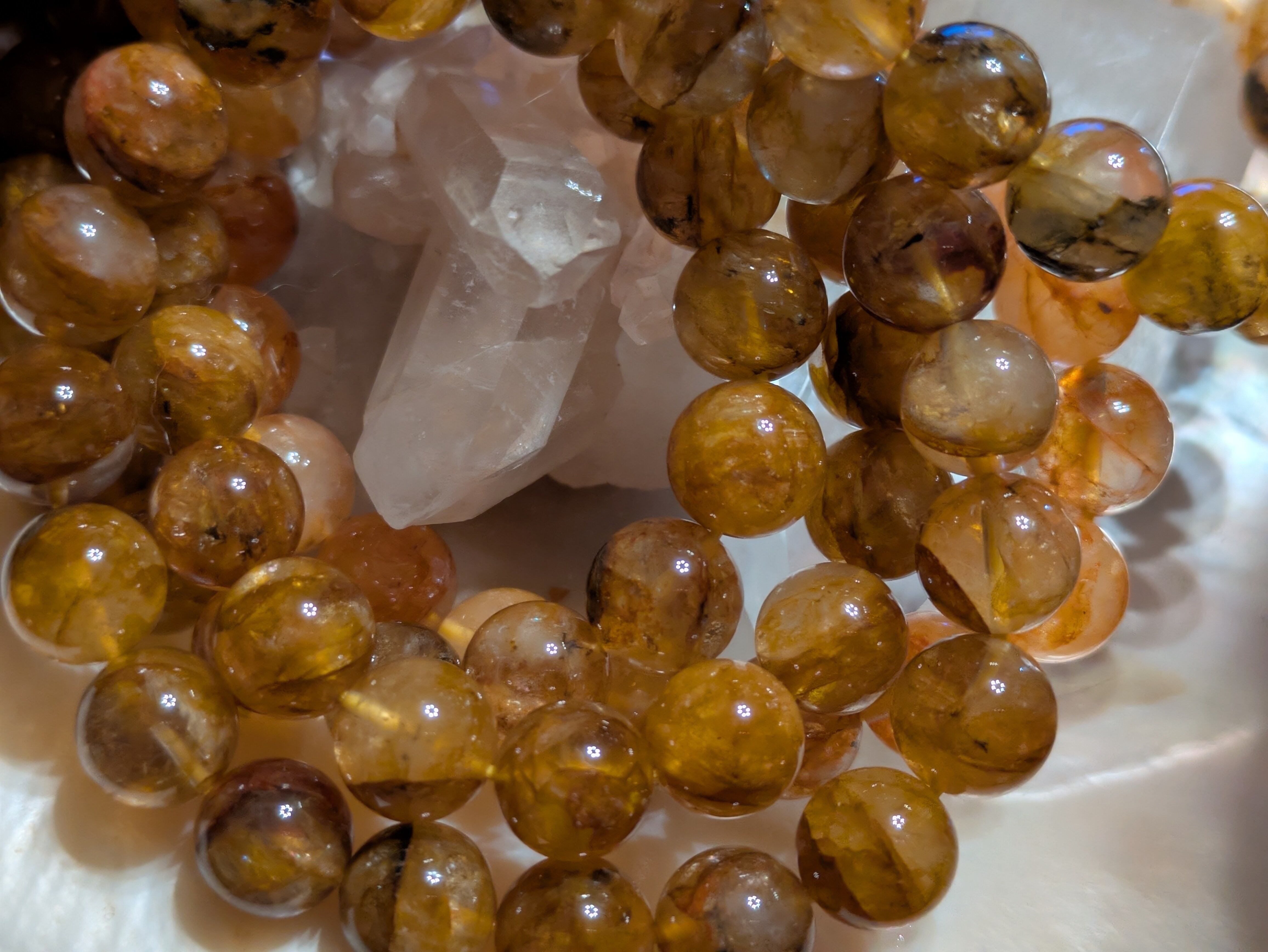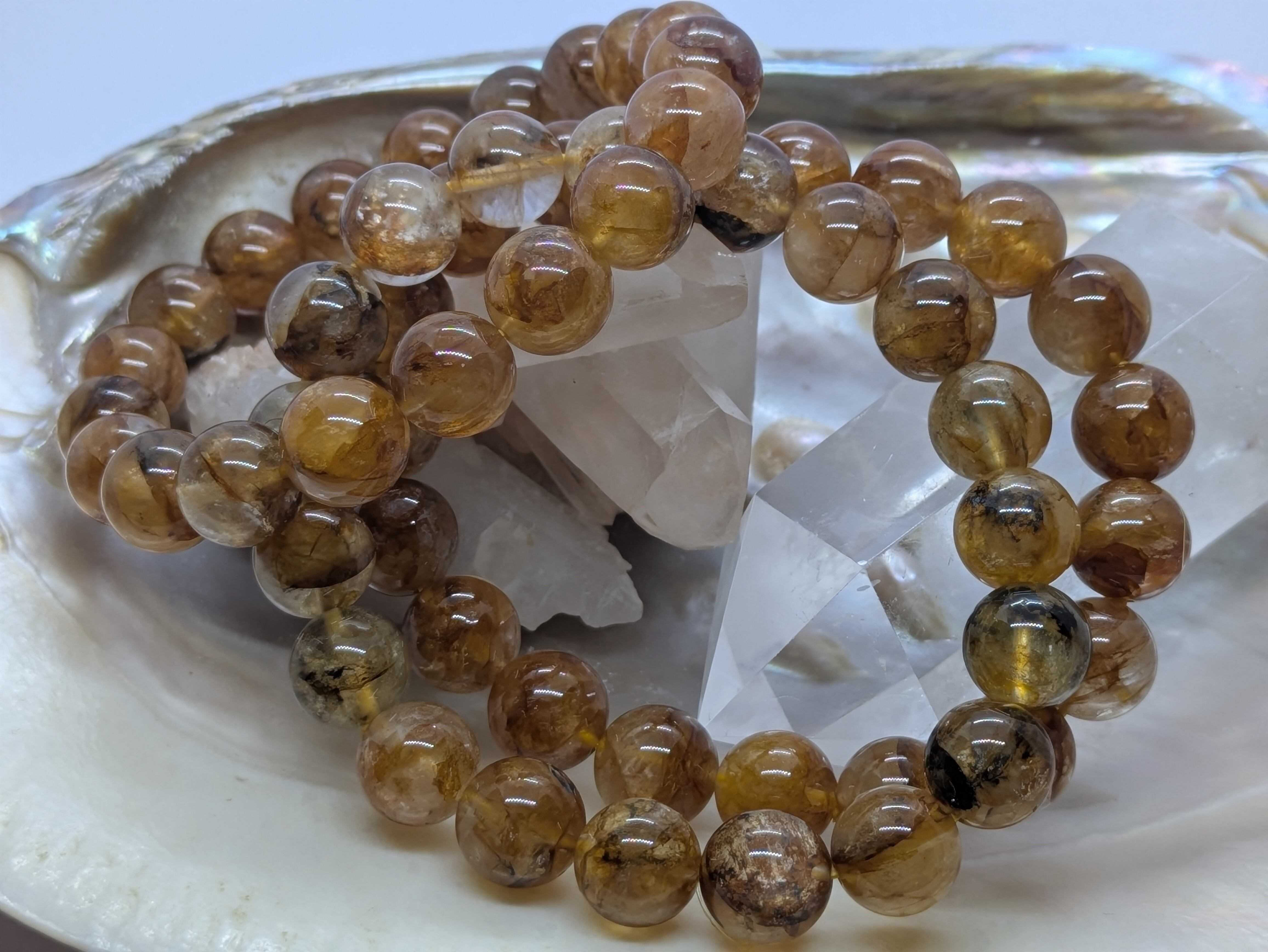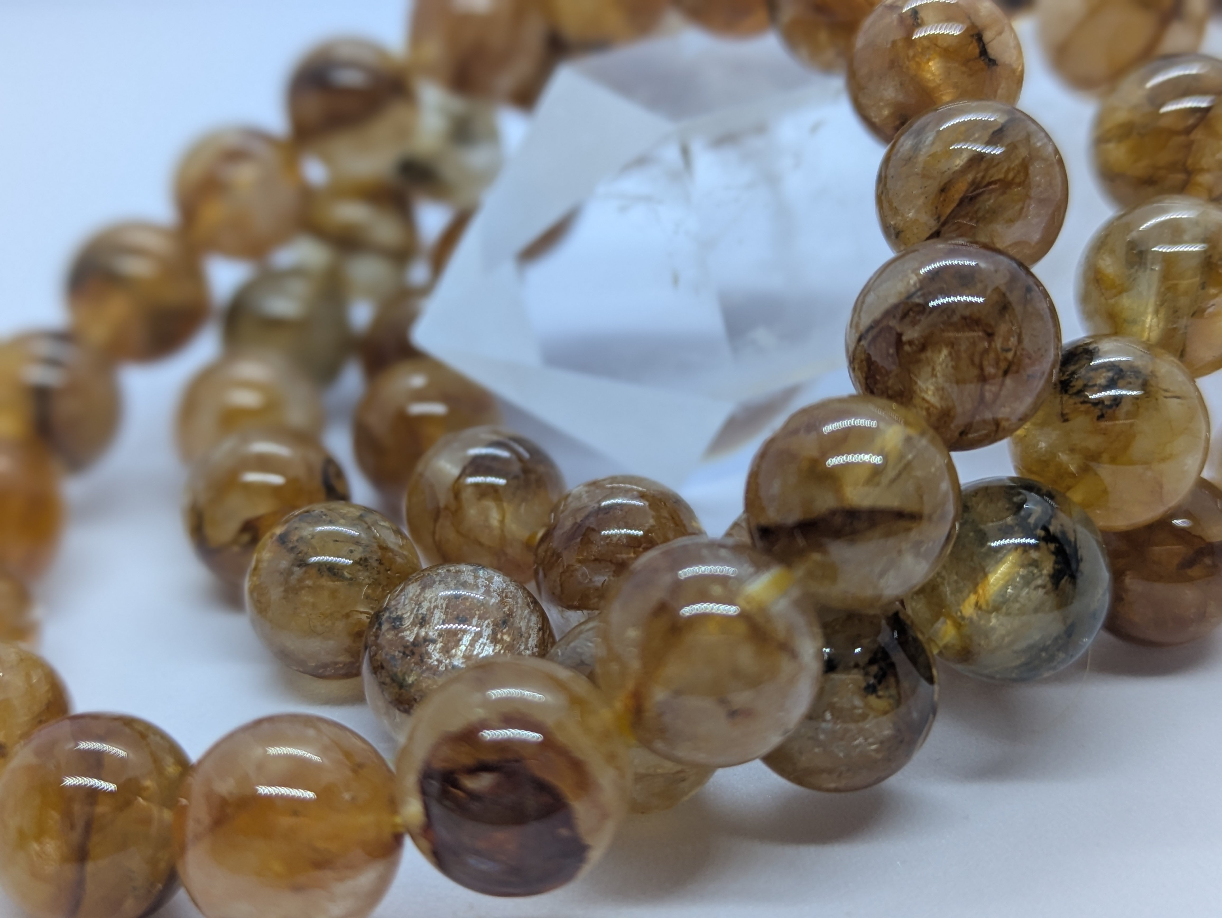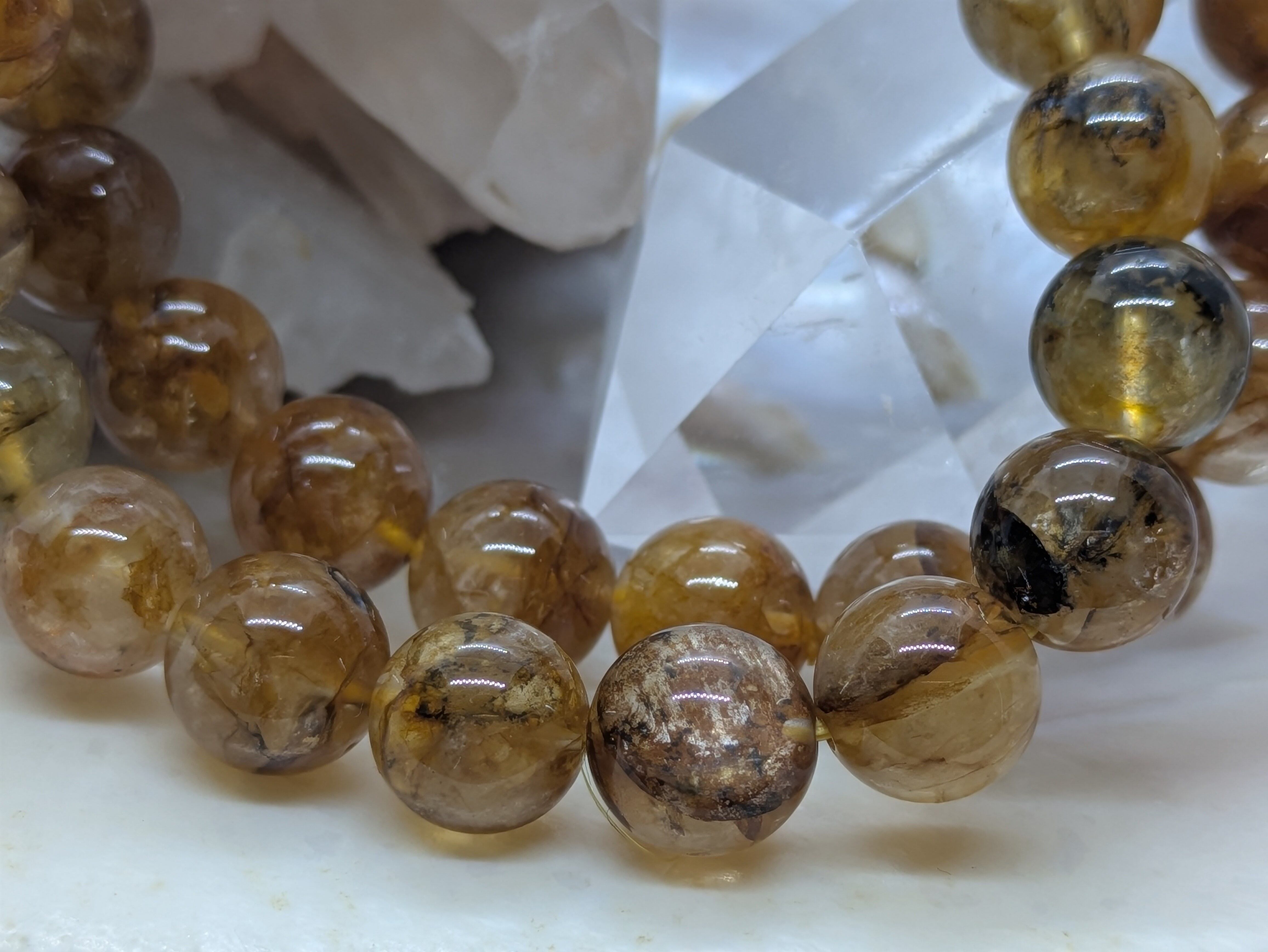 ゴールデンライモナイトインクォーツは、水晶とライモナイトが融合した美しい天然石です。