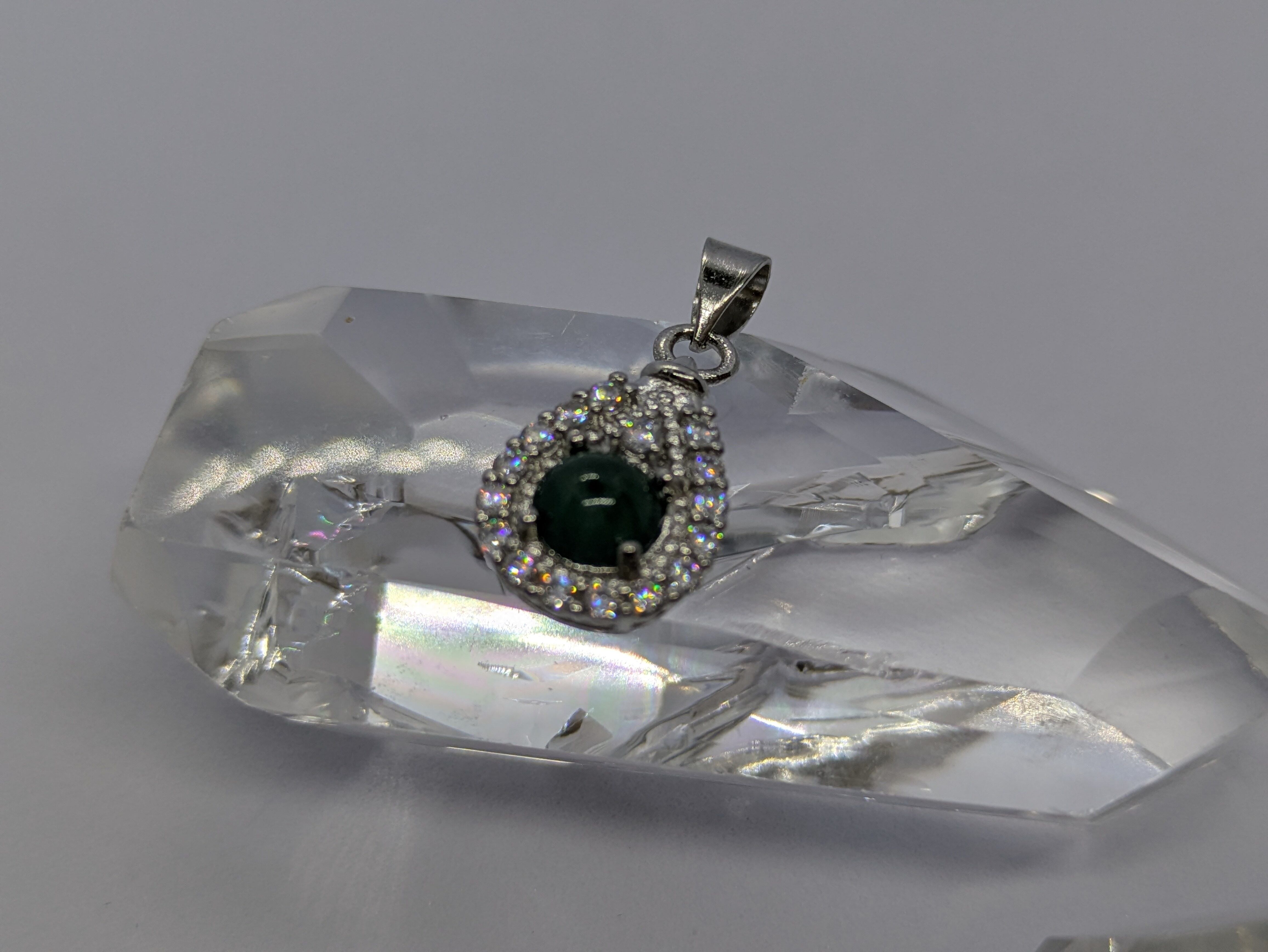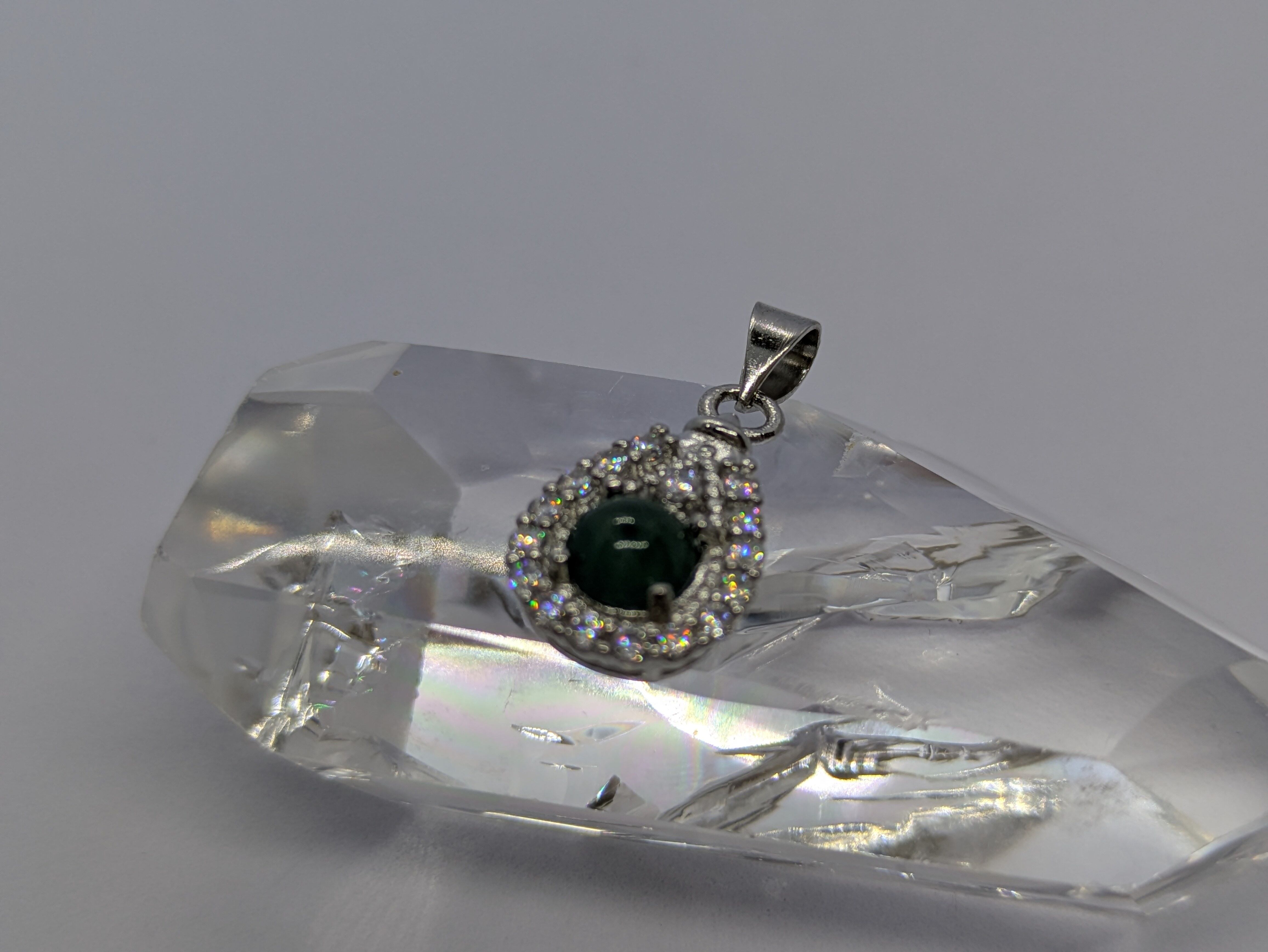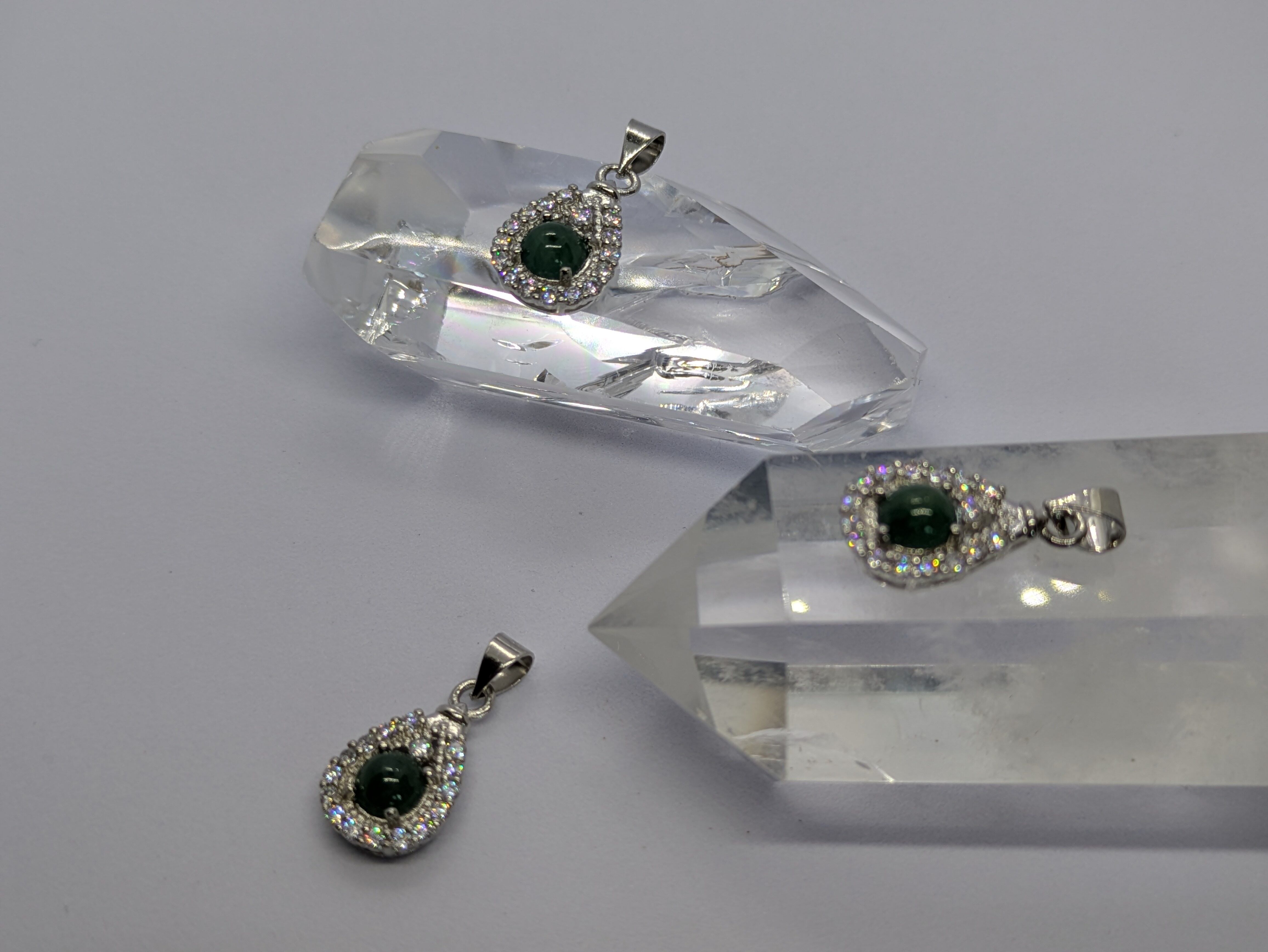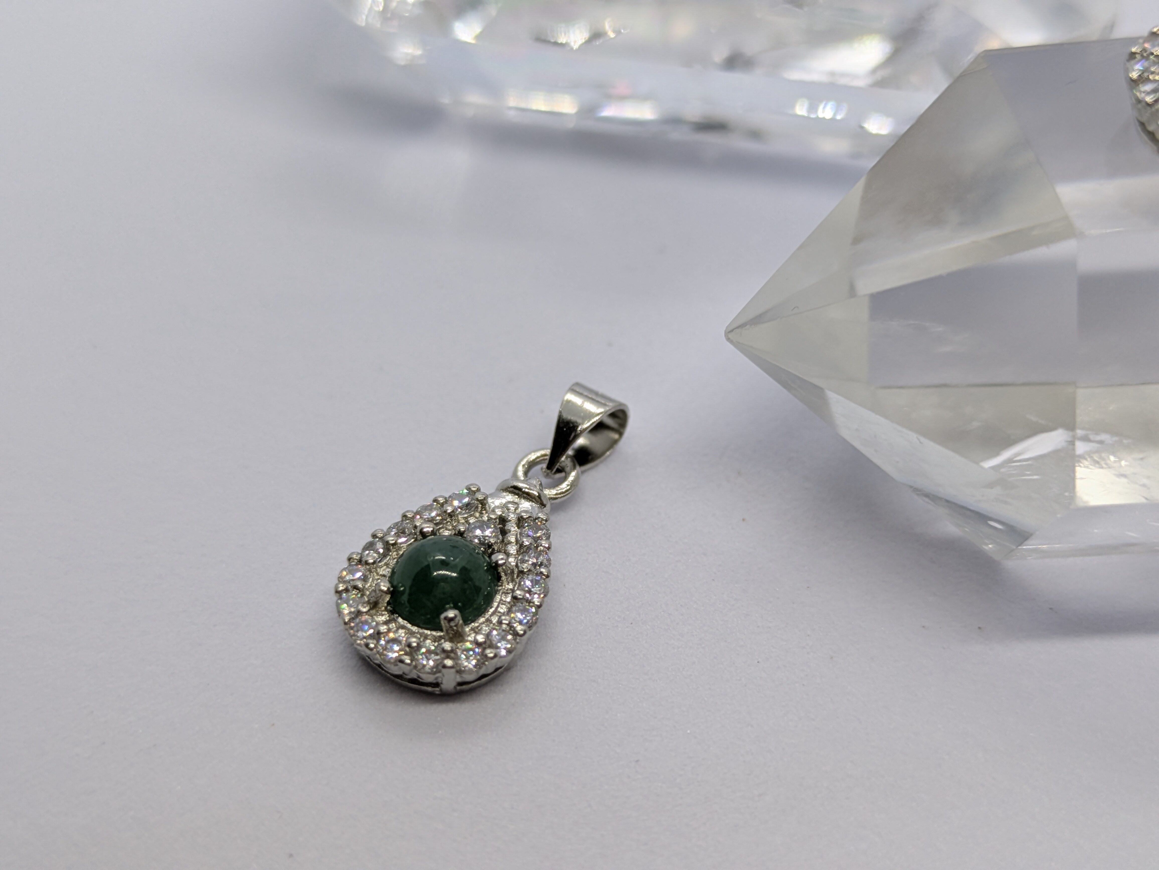 画像の水晶は浄化用で、翡翠のみの販売となります。チェーンは付いてきません。
