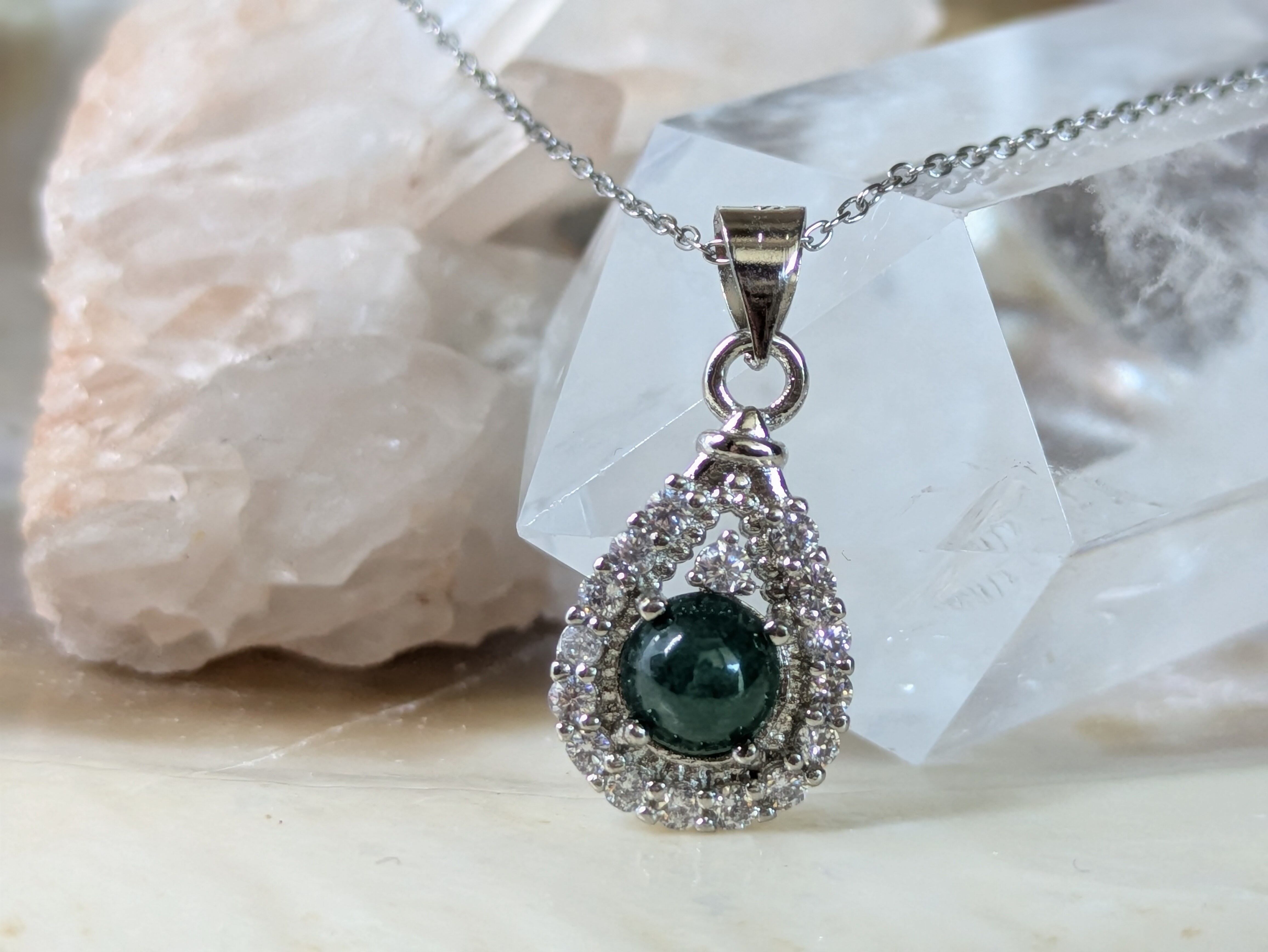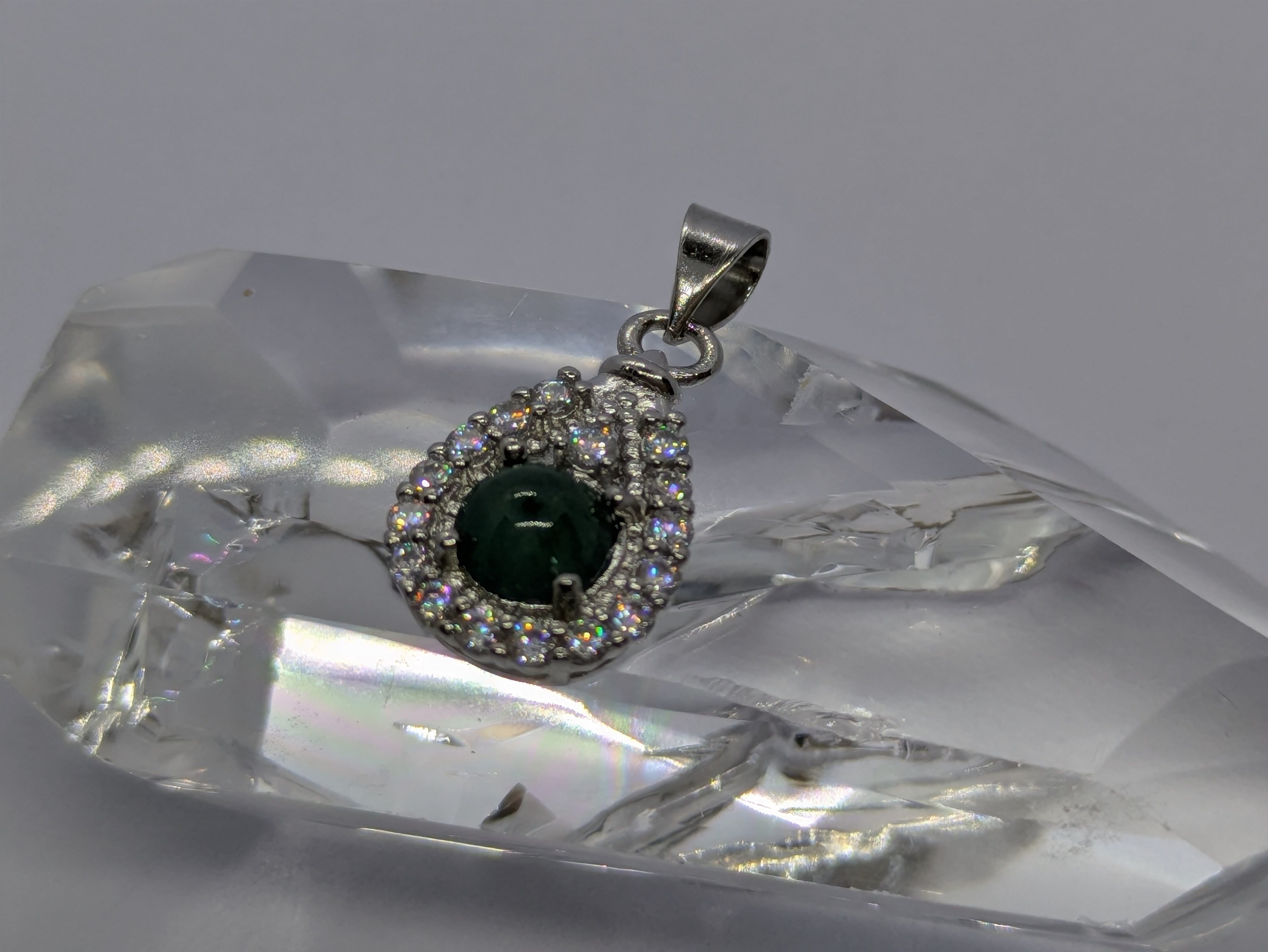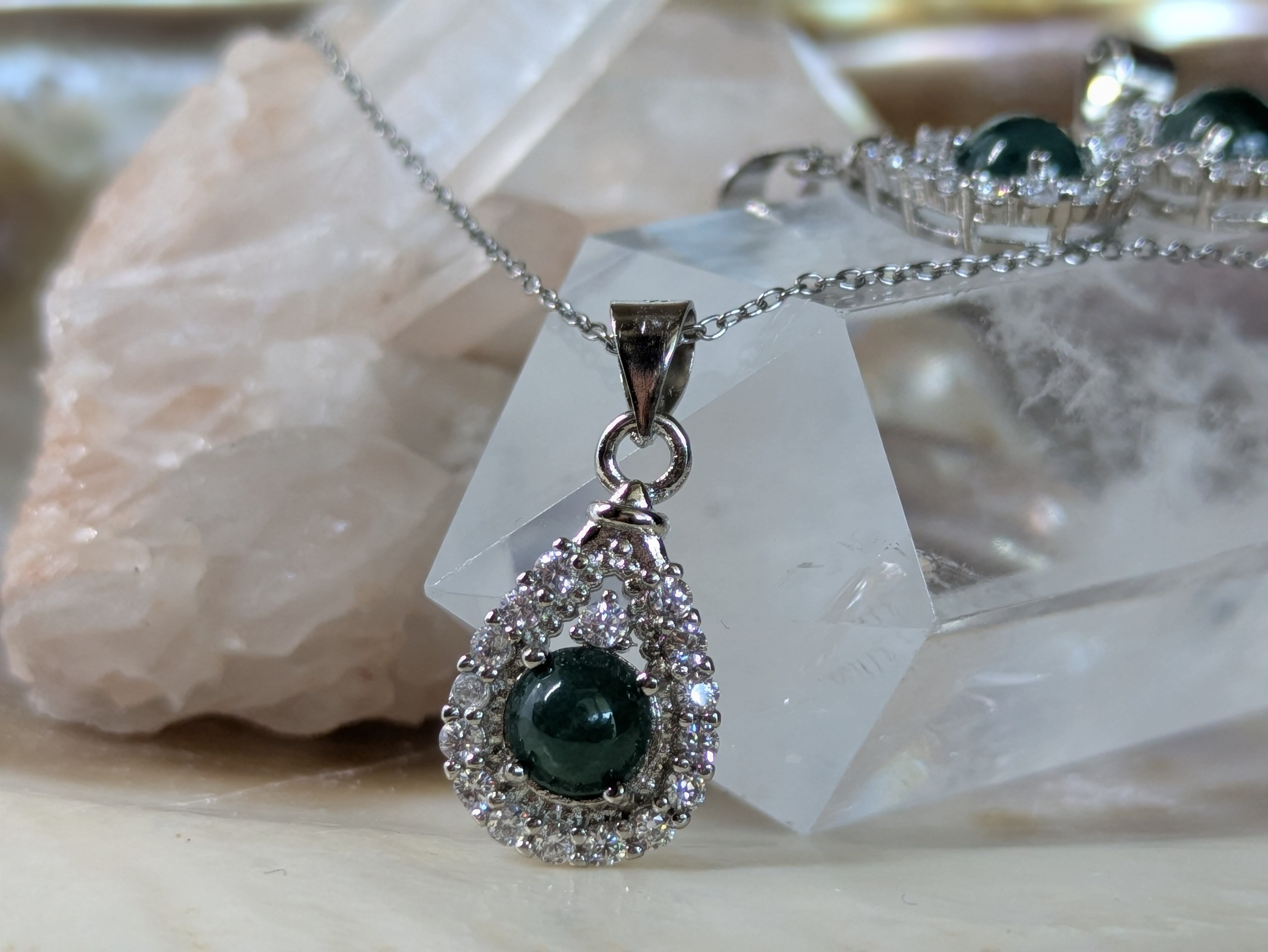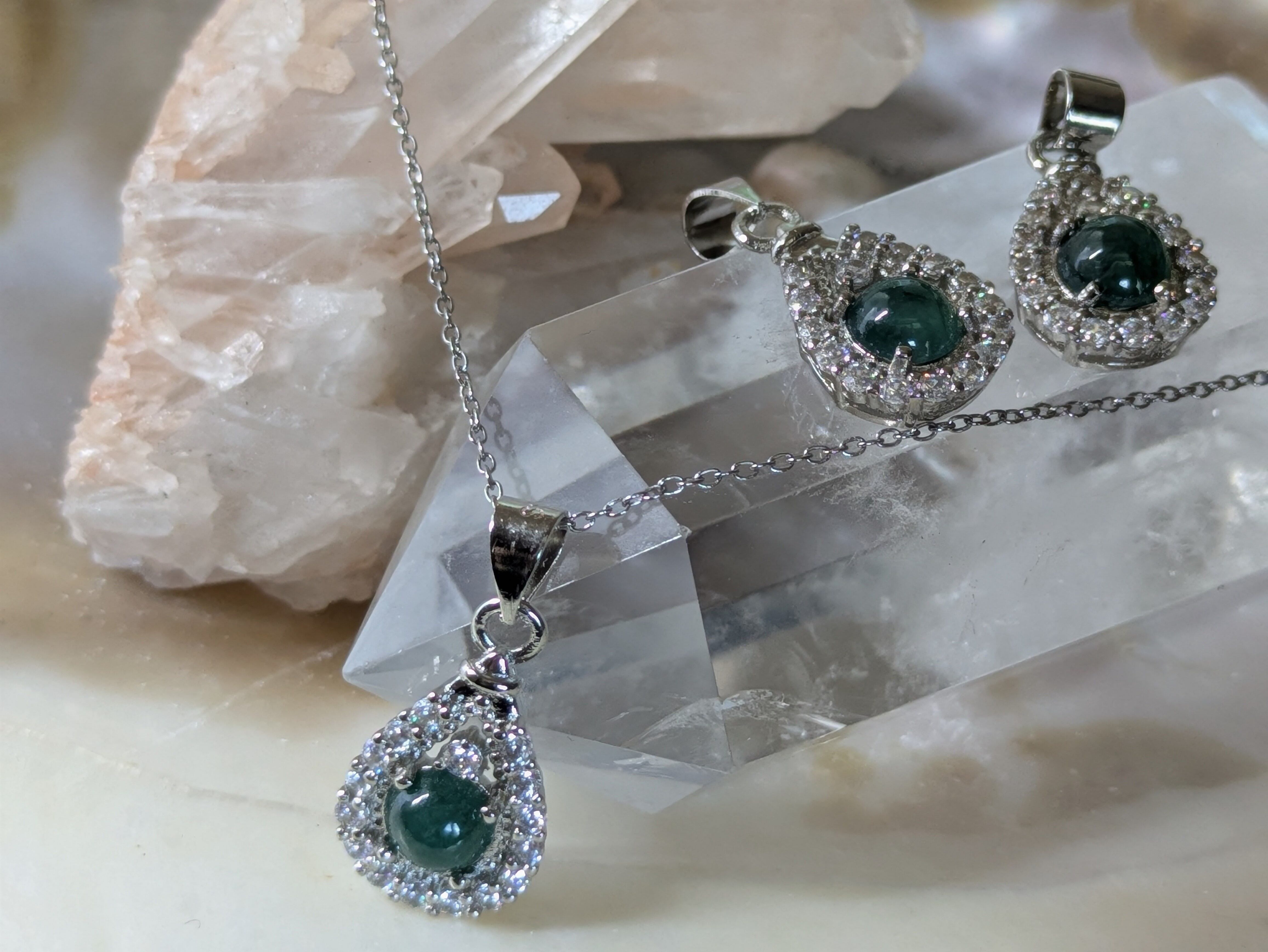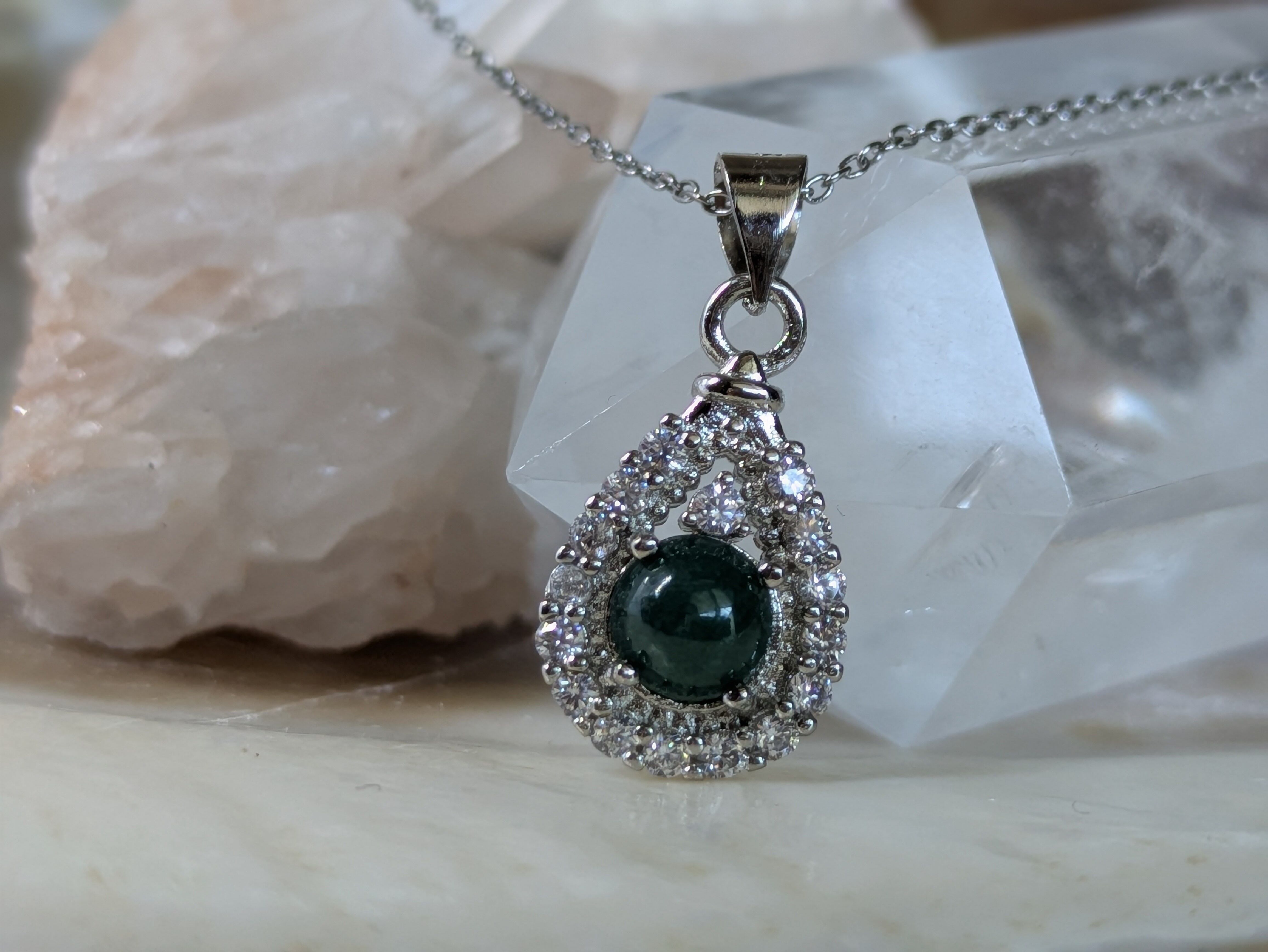 画像の水晶は浄化用で、翡翠のみの販売となります。チェーンは付いてきません。