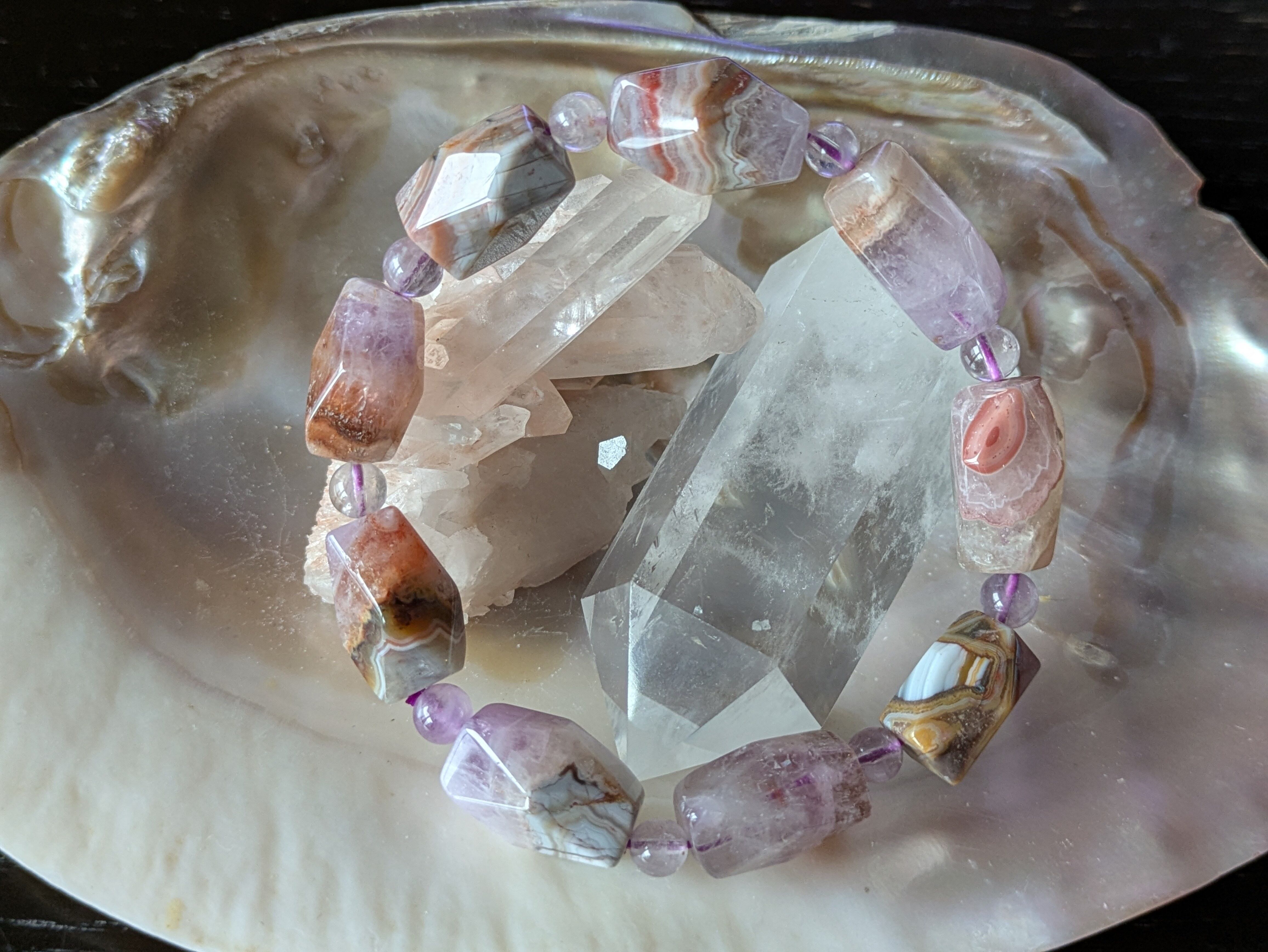 クレイジーレースアゲート(アメジストめのう)は、心を落ち着け、内なる力を引き出す効果が期待される癒しの石です。